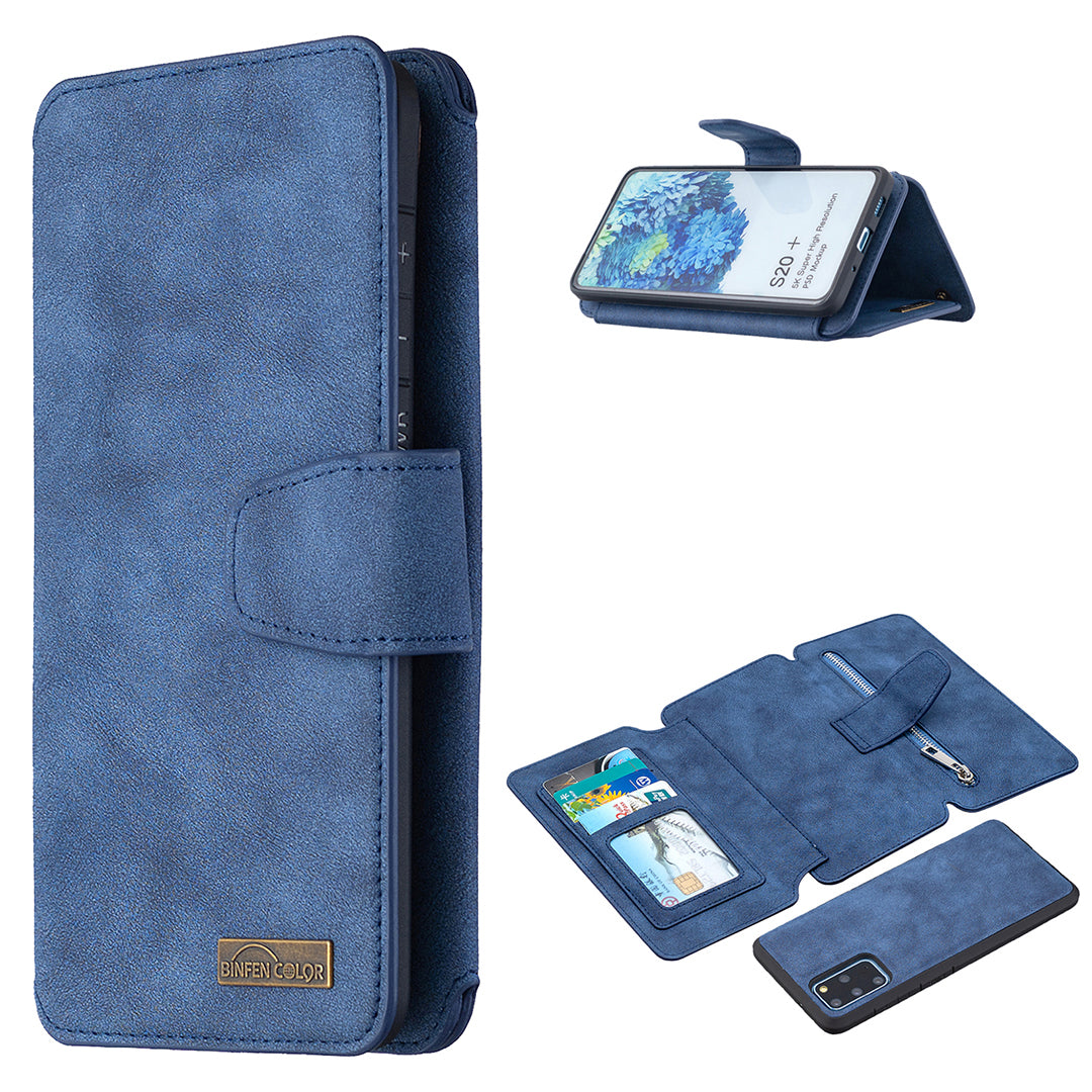 BF07 Detachable Matte Finish Leather Wallet Phone Cover with Zippered Pocket for Samsung Galaxy S20 Plus / S20 Plus 5G - Blue