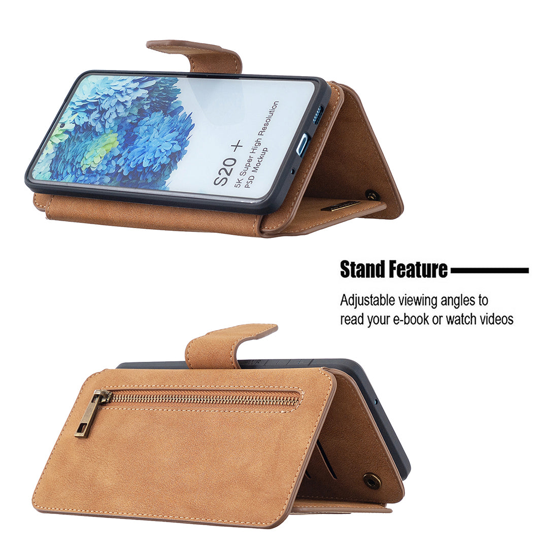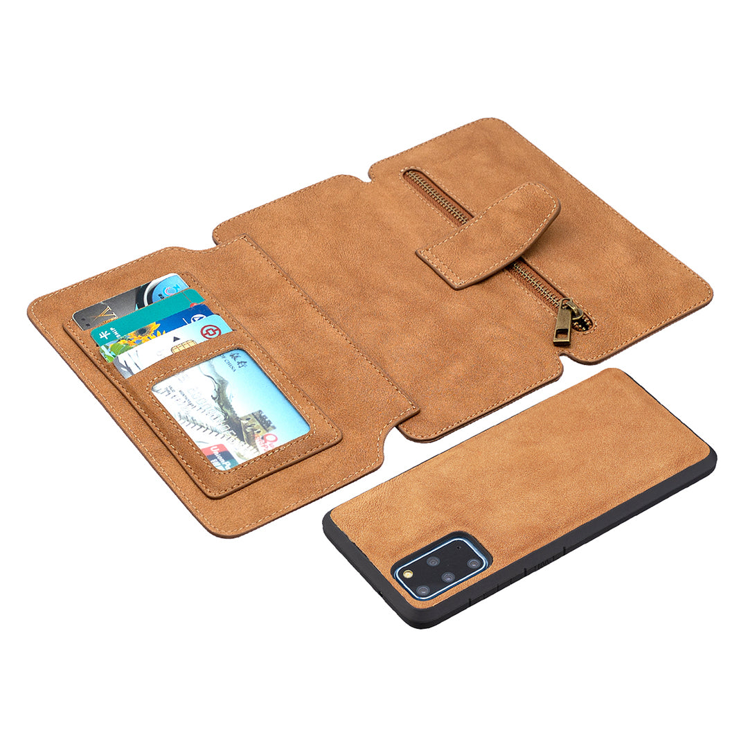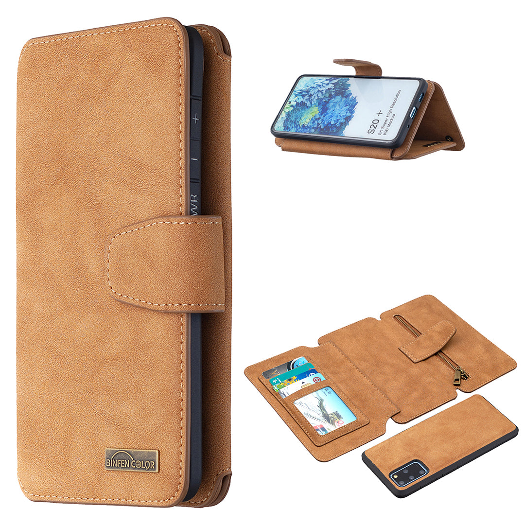 BF07 Detachable Matte Finish Leather Wallet Phone Cover with Zippered Pocket for Samsung Galaxy S20 Plus / S20 Plus 5G - Brown