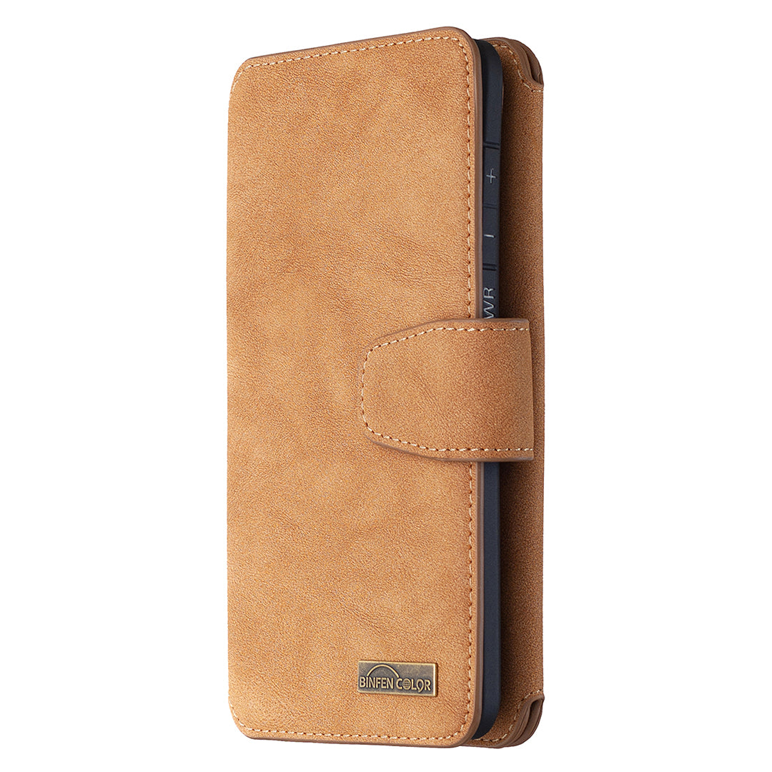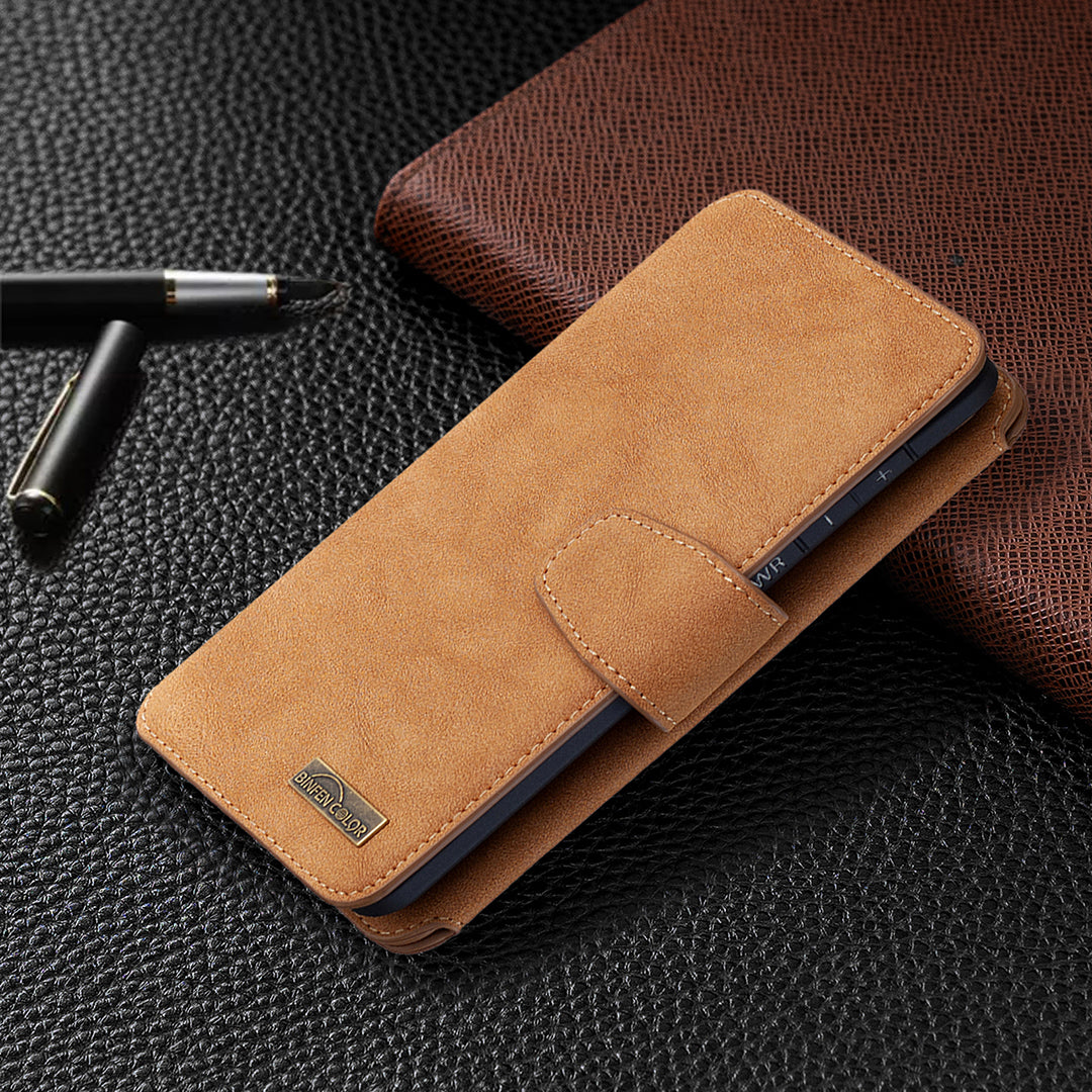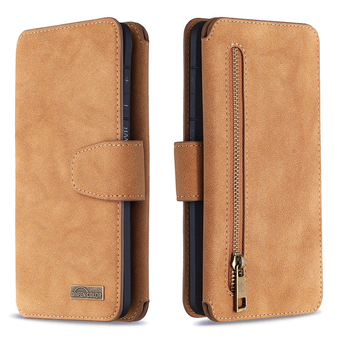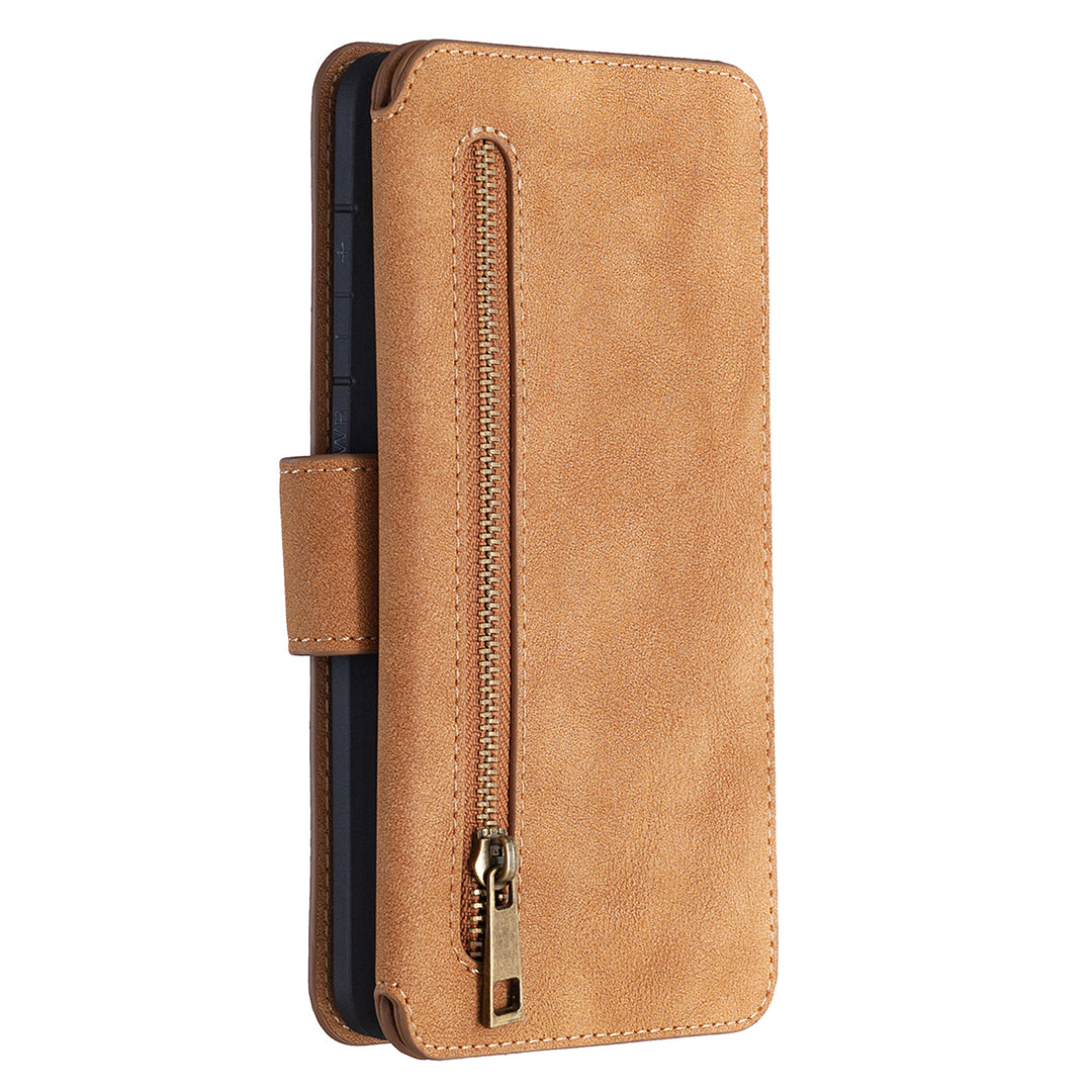 BF07 Detachable Matte Finish Leather Wallet Phone Cover with Zippered Pocket for Samsung Galaxy S20 Plus / S20 Plus 5G - Brown