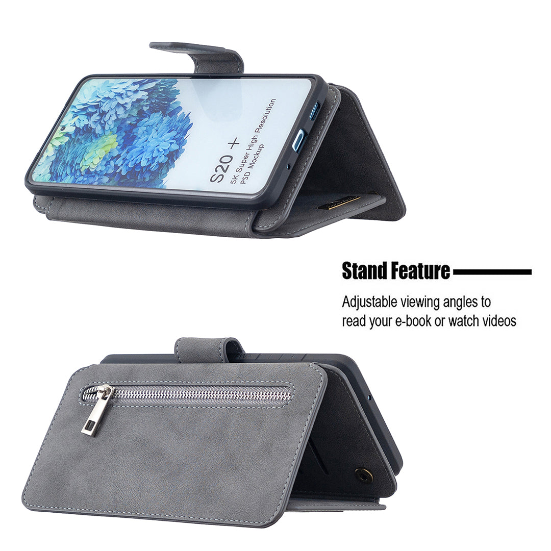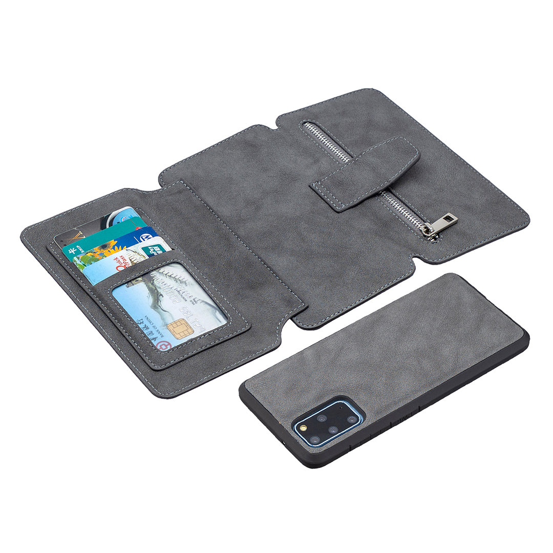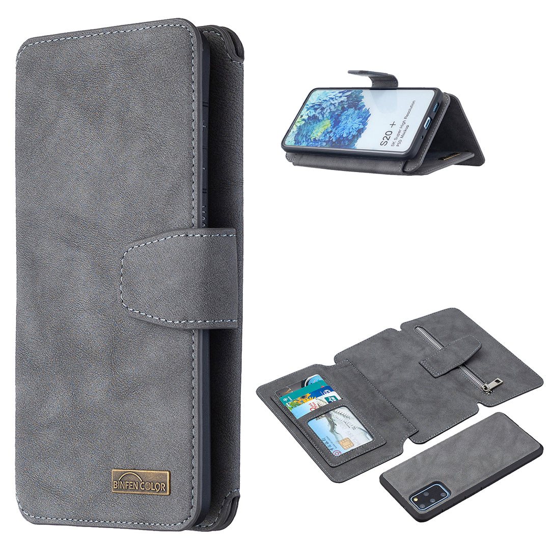 BF07 Detachable Matte Finish Leather Wallet Phone Cover with Zippered Pocket for Samsung Galaxy S20 Plus / S20 Plus 5G - Grey