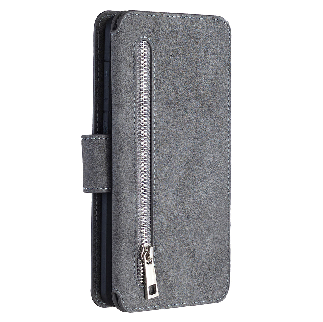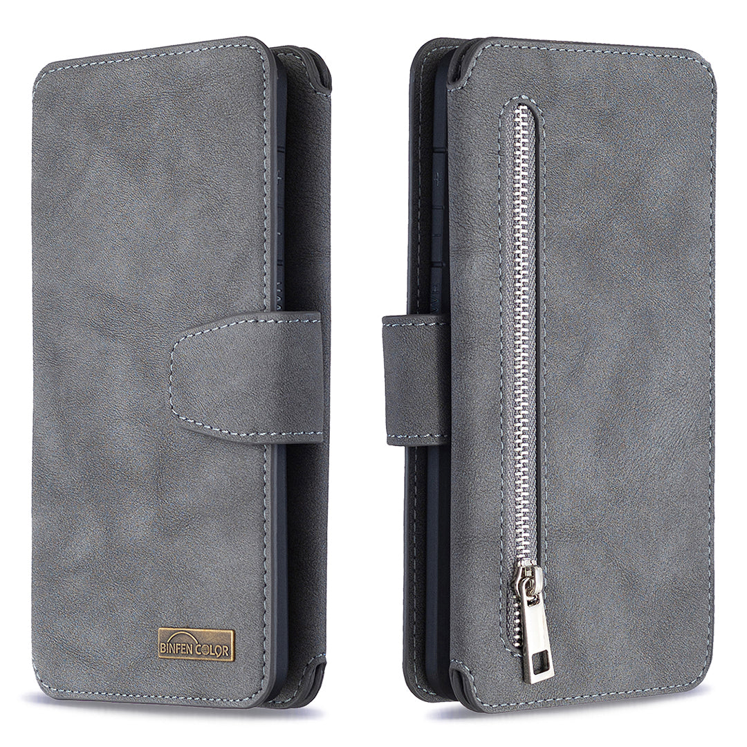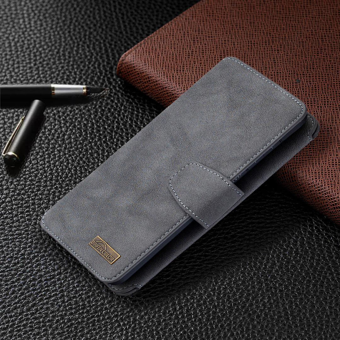 BF07 Detachable Matte Finish Leather Wallet Phone Cover with Zippered Pocket for Samsung Galaxy S20 Plus / S20 Plus 5G - Grey