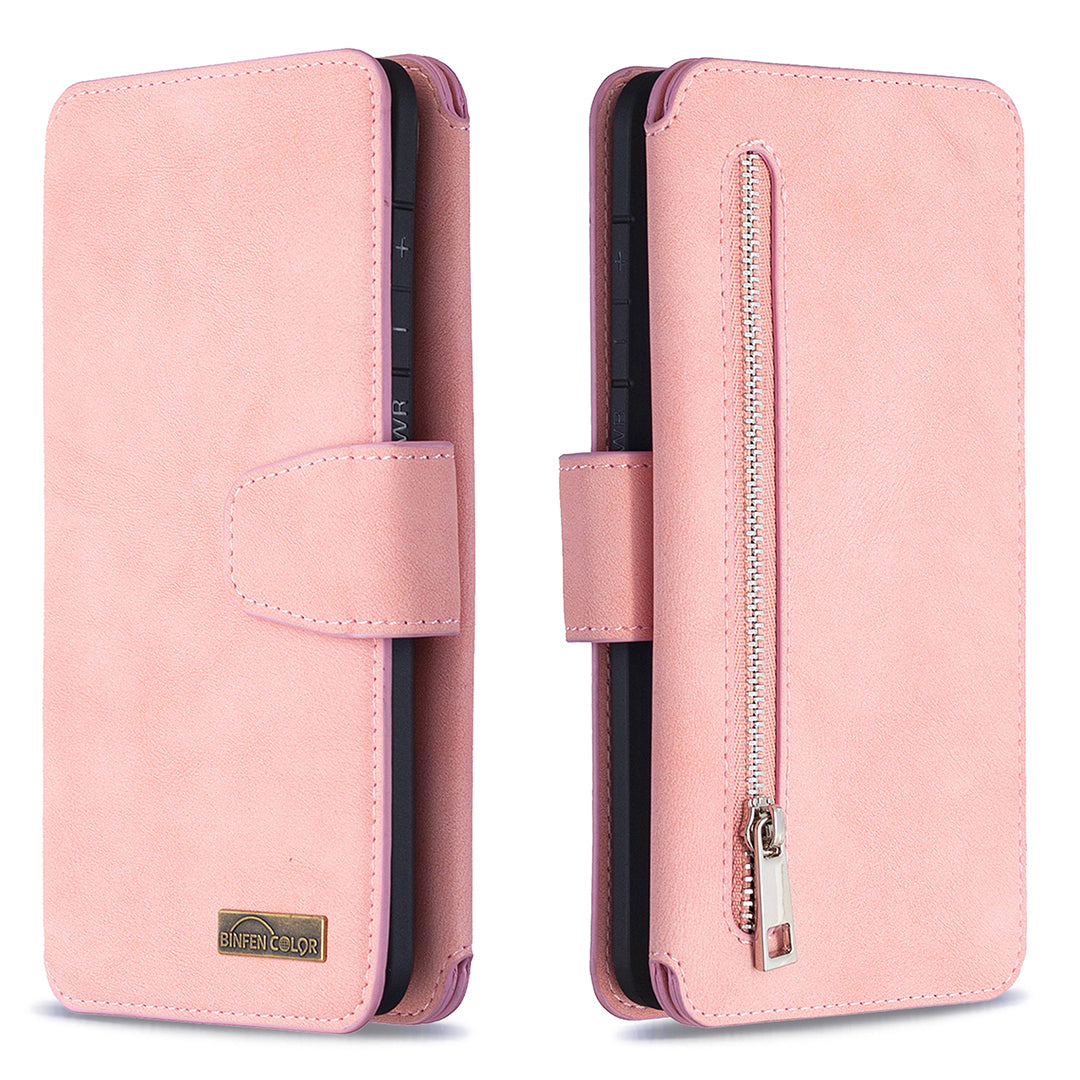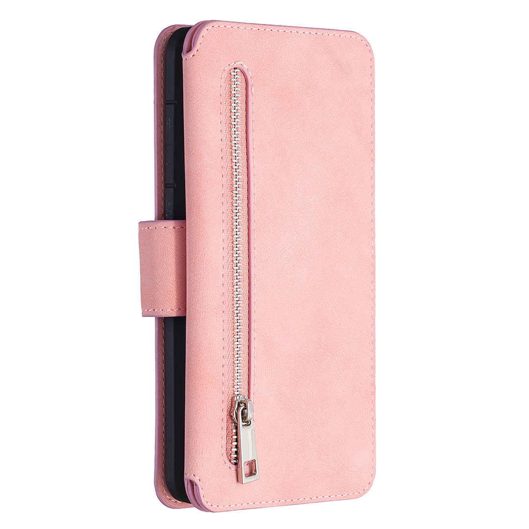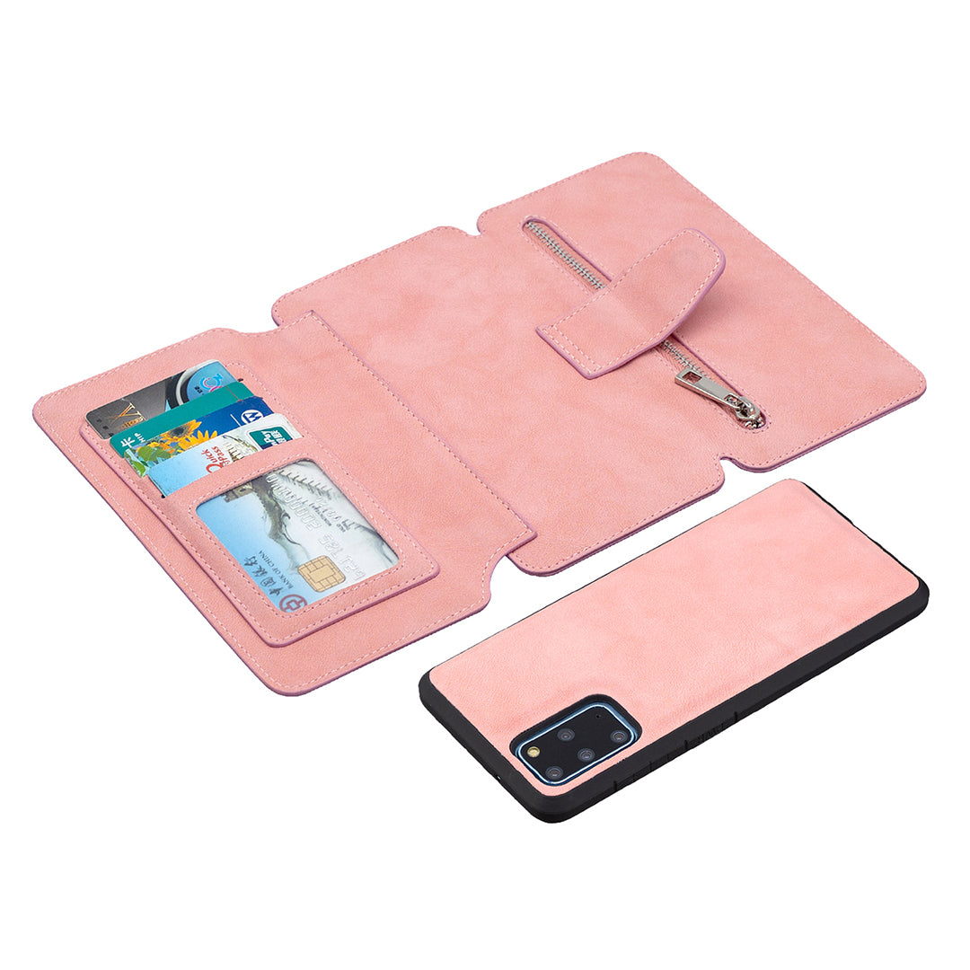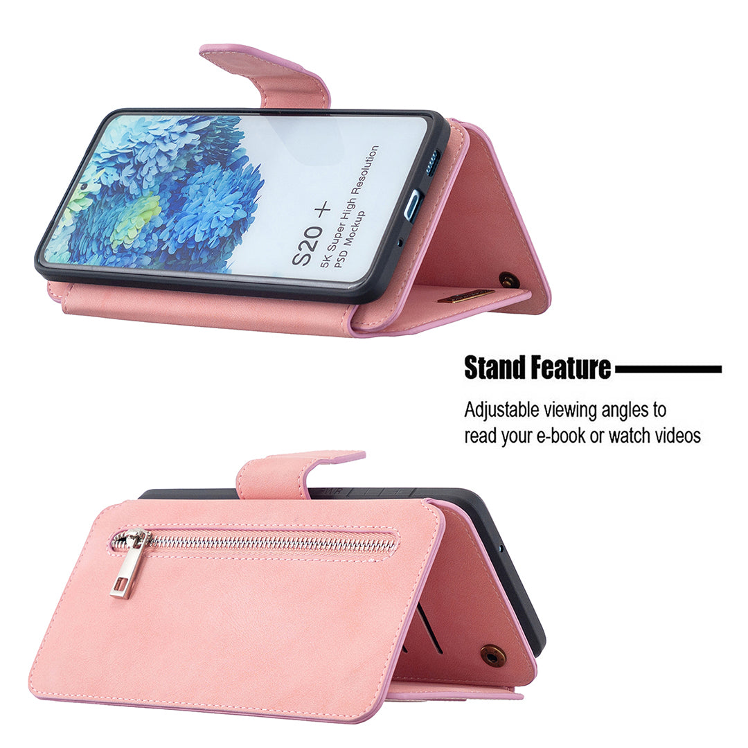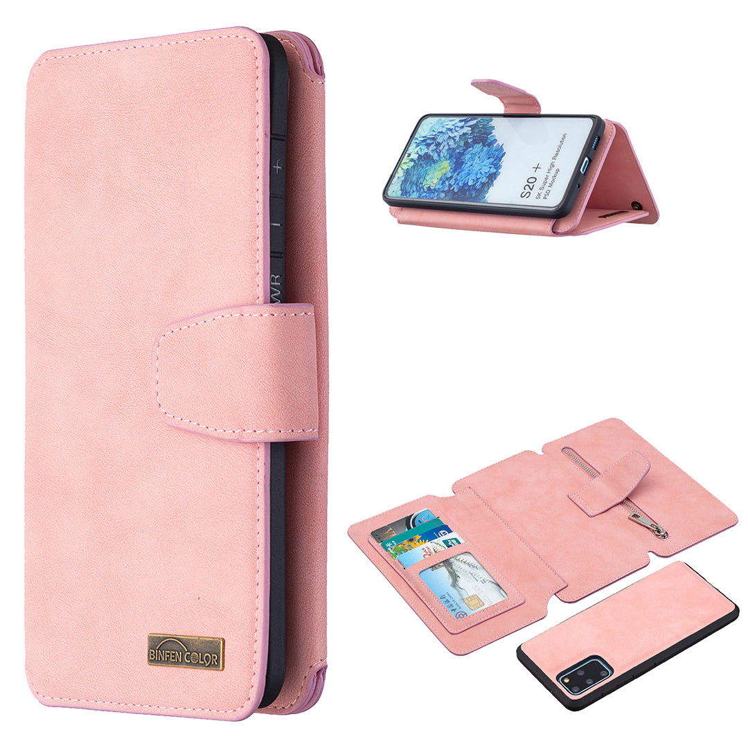 BF07 Detachable Matte Finish Leather Wallet Phone Cover with Zippered Pocket for Samsung Galaxy S20 Plus / S20 Plus 5G - Pink