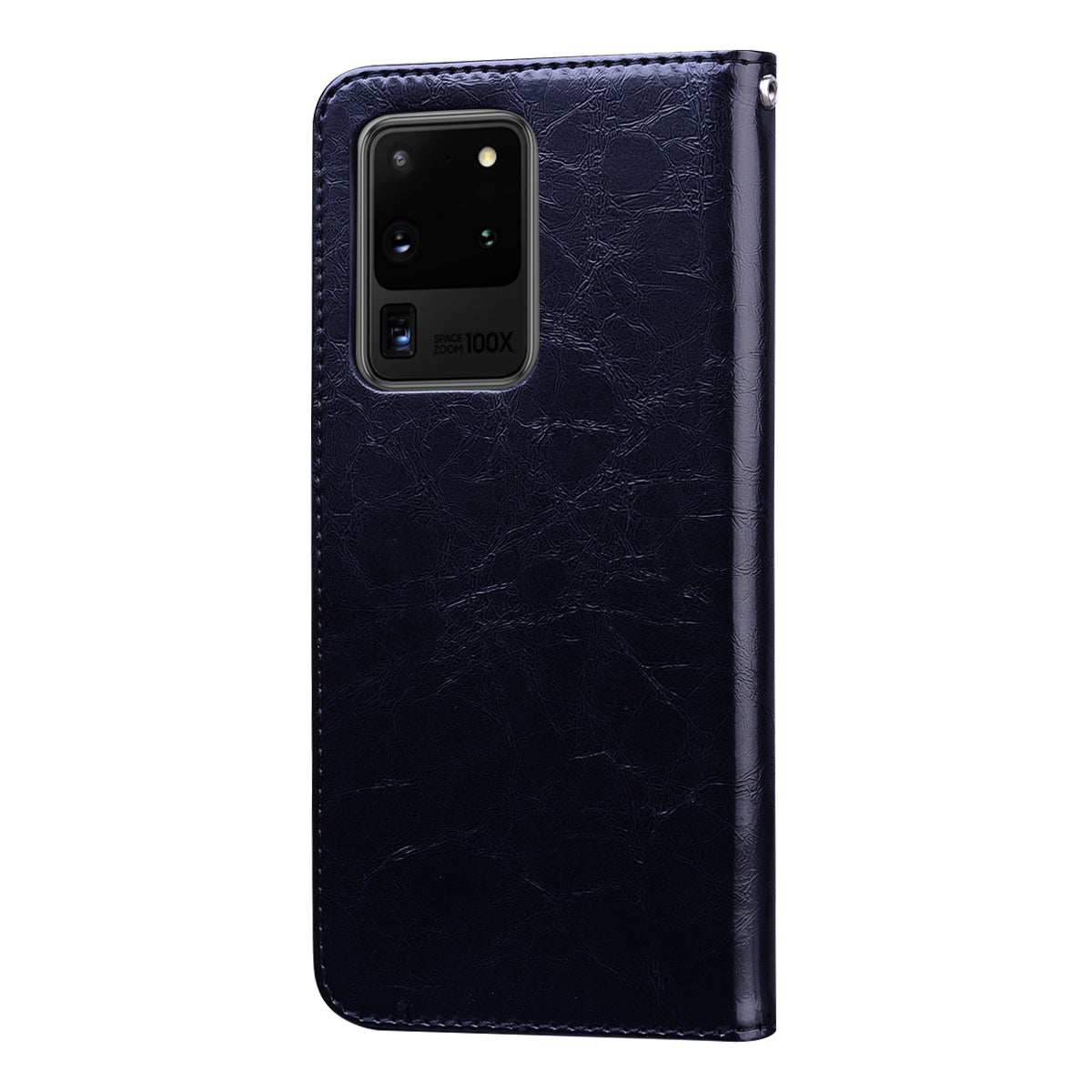 Business Style Oil Wax PU Leather Wallet Cover for Samsung Galaxy S20 Ultra - Black