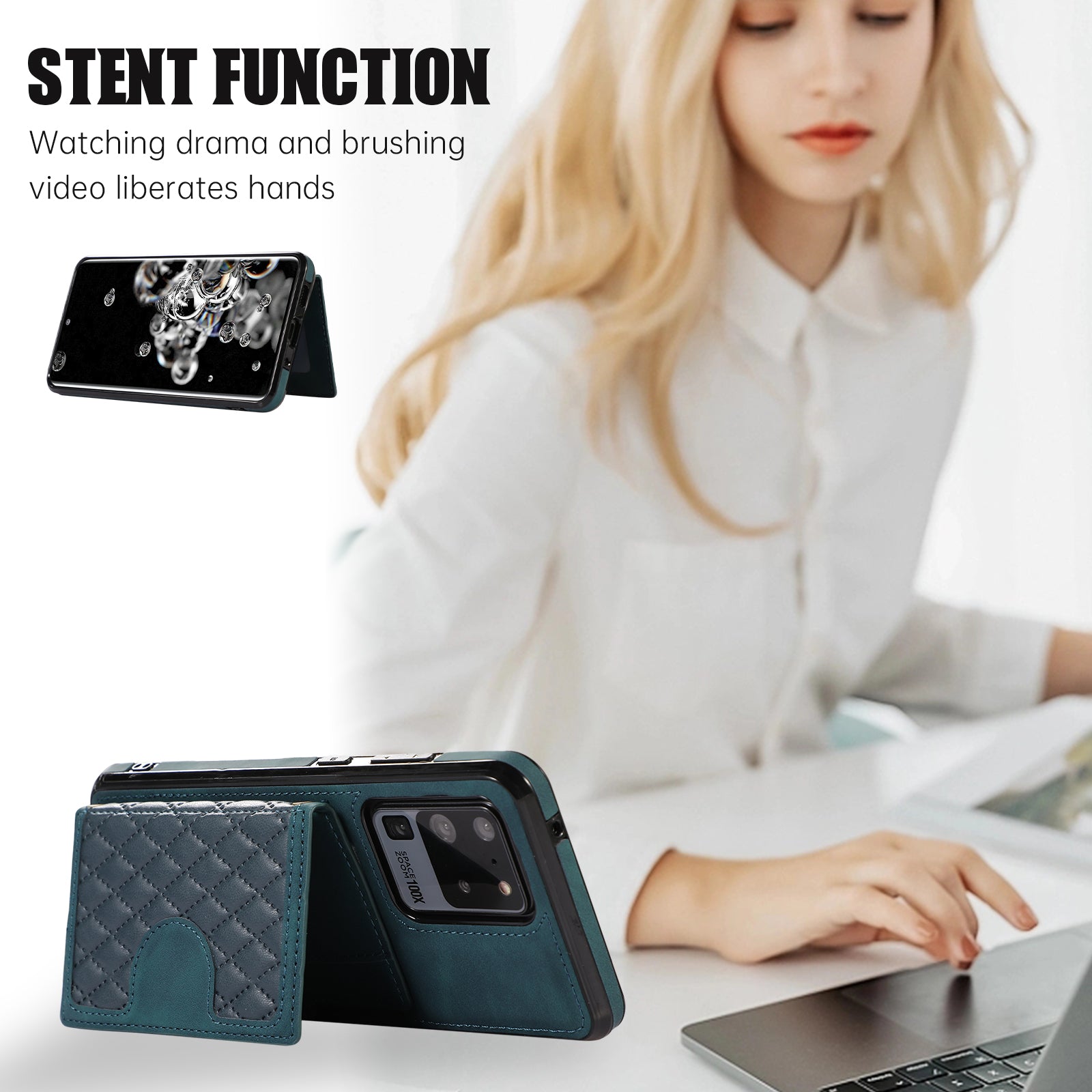 Phone Case for Samsung Galaxy S20 Ultra Card Holder TPU+PU Leather Kickstand Phone Cover - Green