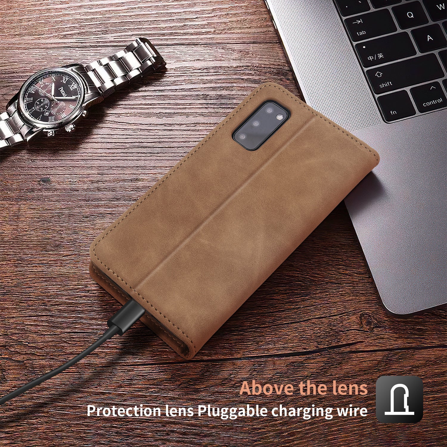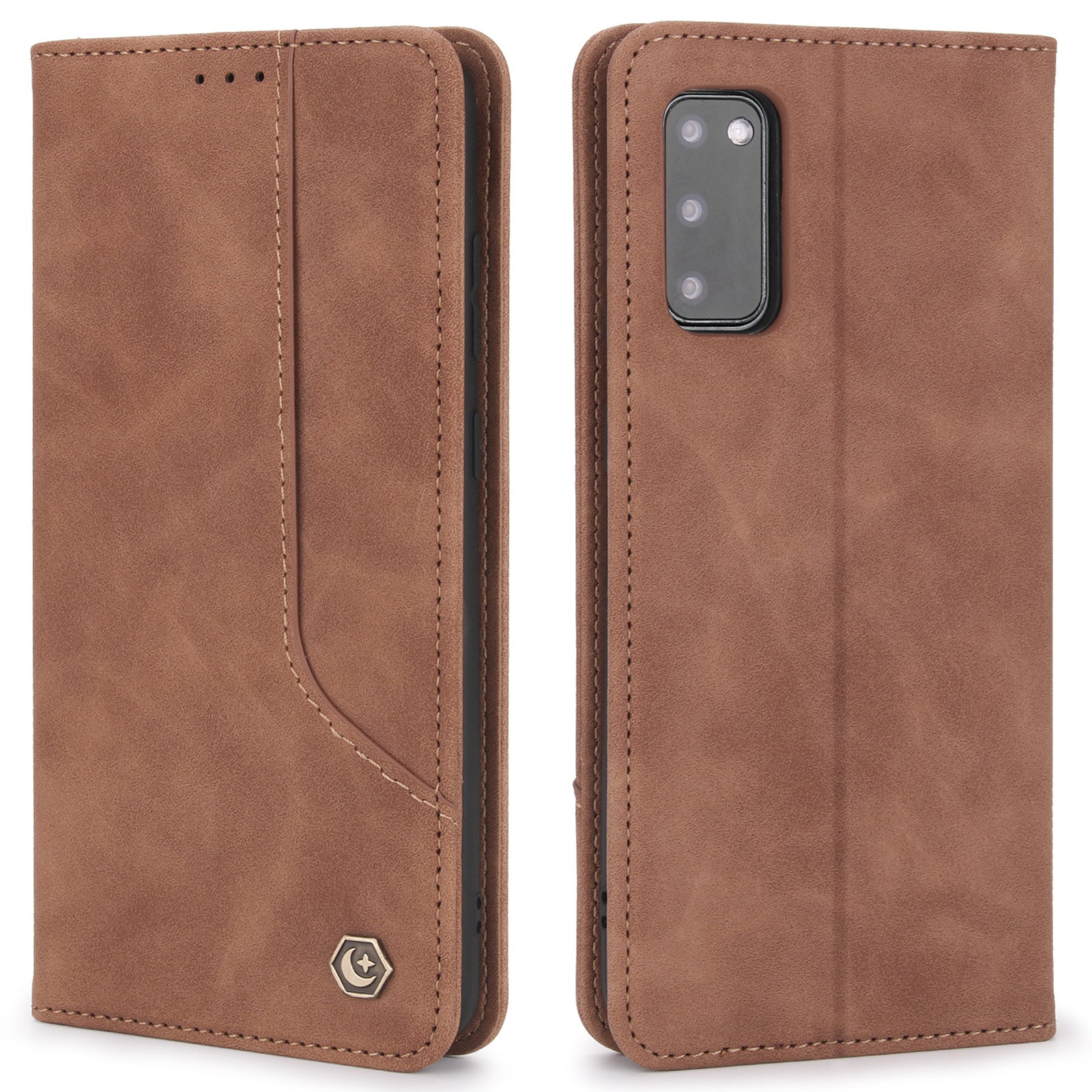 POLA 008 Series Magnetic Auto-aborbed Well-protected PU Leather Wallet Stand Phone Case Cover for Samsung Galaxy S20 FE 2022/S20 FE/S20 FE 5G/S20 Lite - Brown