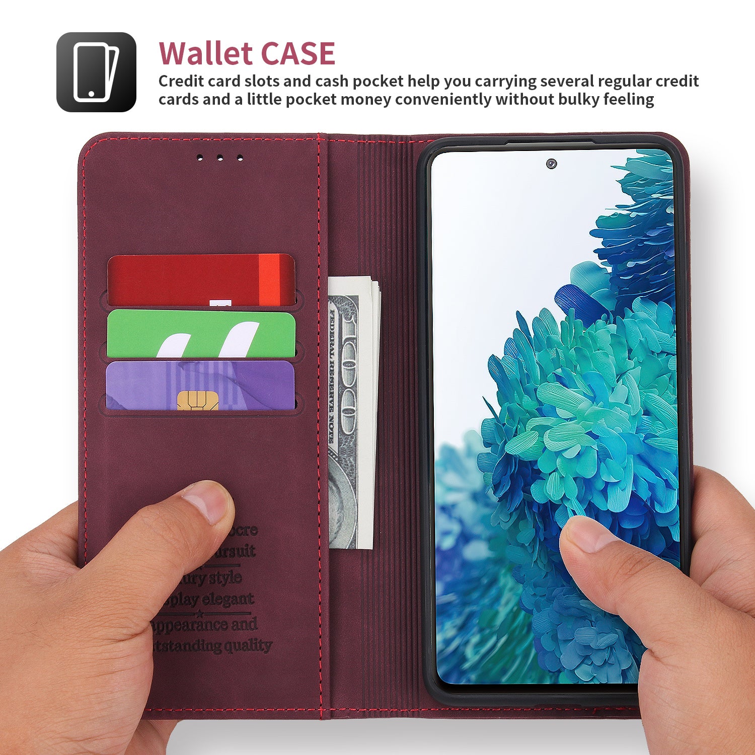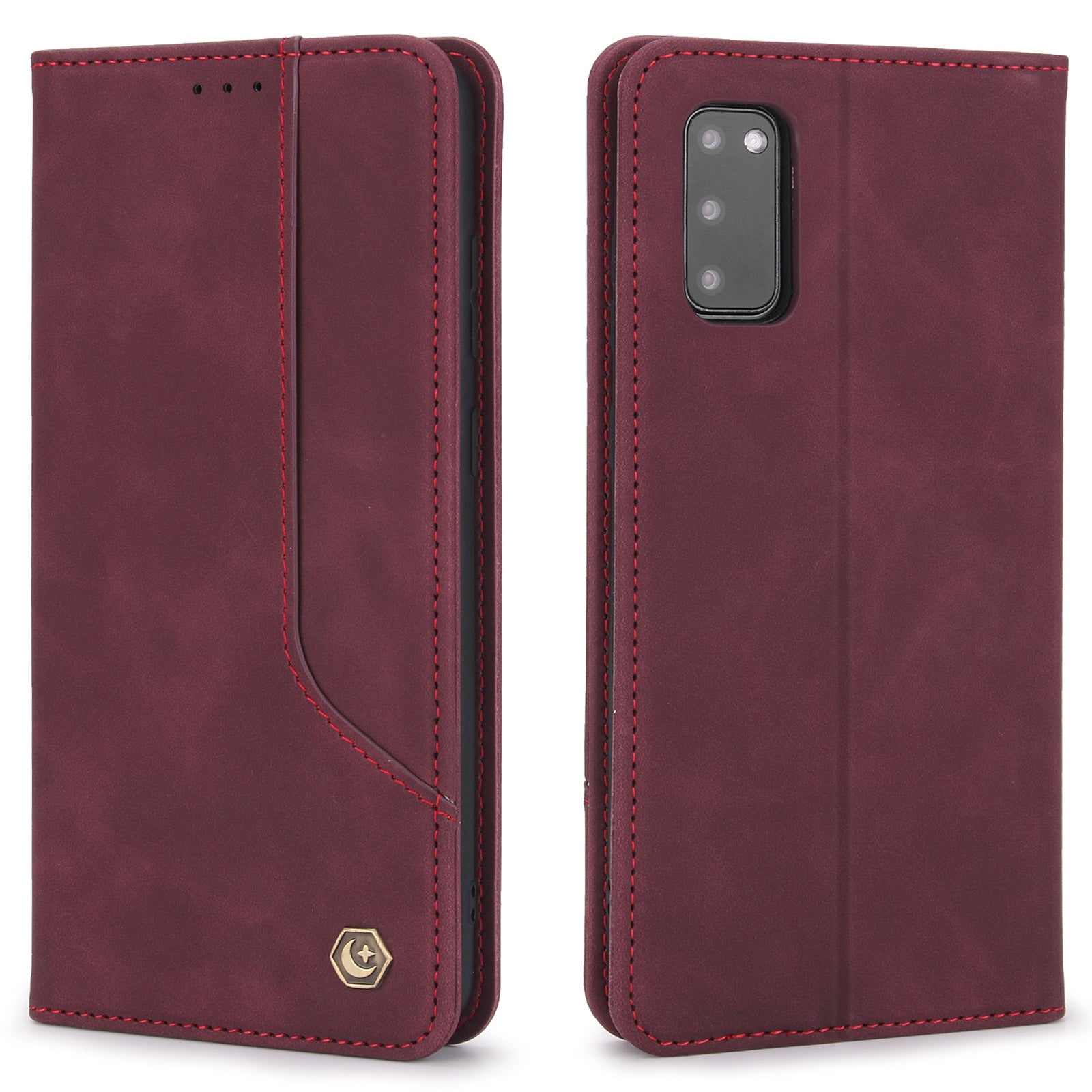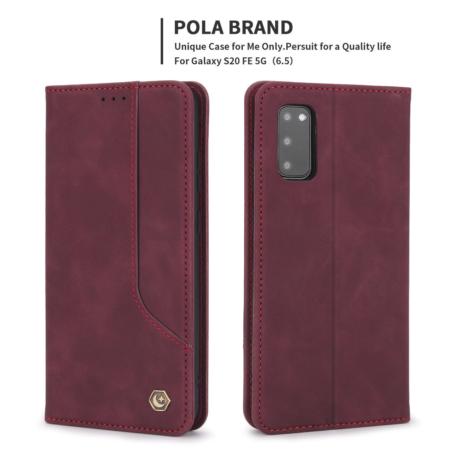 POLA 008 Series Magnetic Auto-aborbed Well-protected PU Leather Wallet Stand Phone Case Cover for Samsung Galaxy S20 FE 2022/S20 FE/S20 FE 5G/S20 Lite - Wine Red
