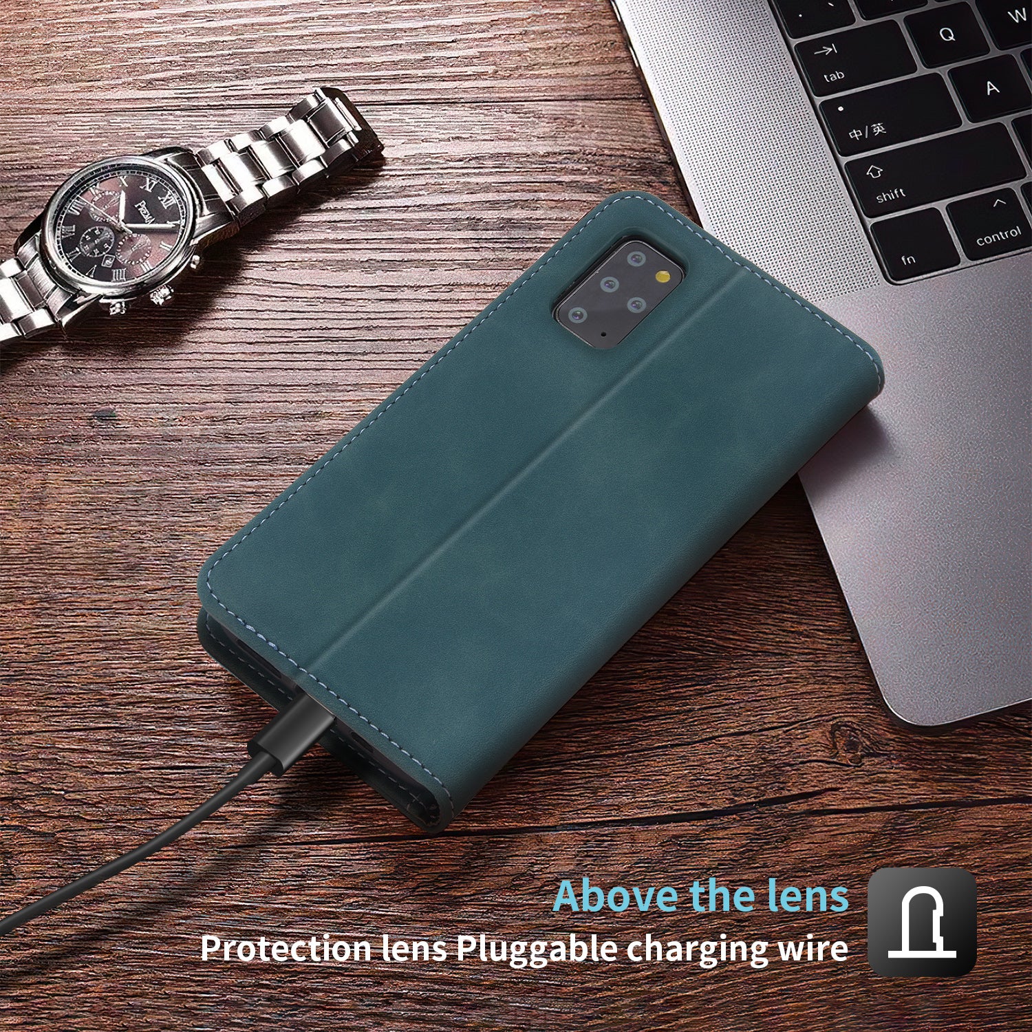 POLA 008 Series Retro Style Full Protection PU Leather + TPU Magnetic Auto Closing Phone Cover with Stand Wallet for Samsung Galaxy S20 Plus 4G/5G - Blue