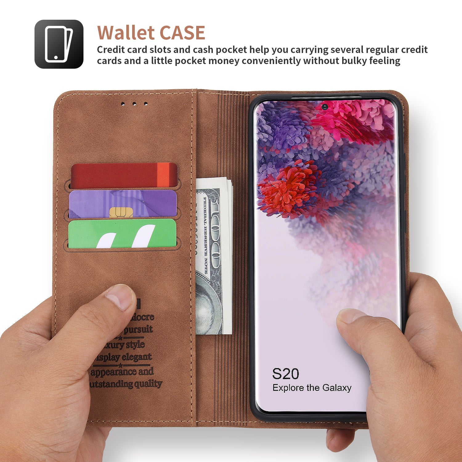 POLA 008 Series Retro Style PU Leather Foldable Wallet Cover Auto Closing Phone Case with Stand for Samsung Galaxy S20 4G/S20 5G - Brown
