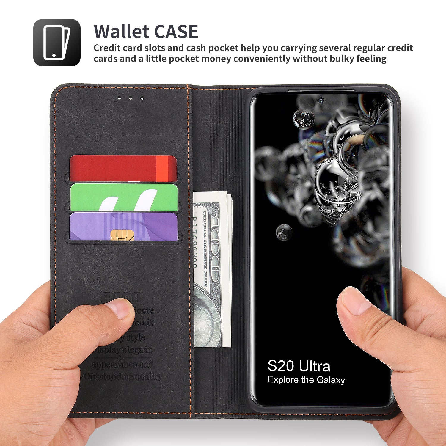 The outer cover is made of quality PU leather+TPU, which can protect your phone from scratches, drops and impacts. The flexible TPU inner case is soft enough for easily twisted and perfect fit installation. Strong magnet for automatic closing, it is safe and convenient to manage your valuable items inside.