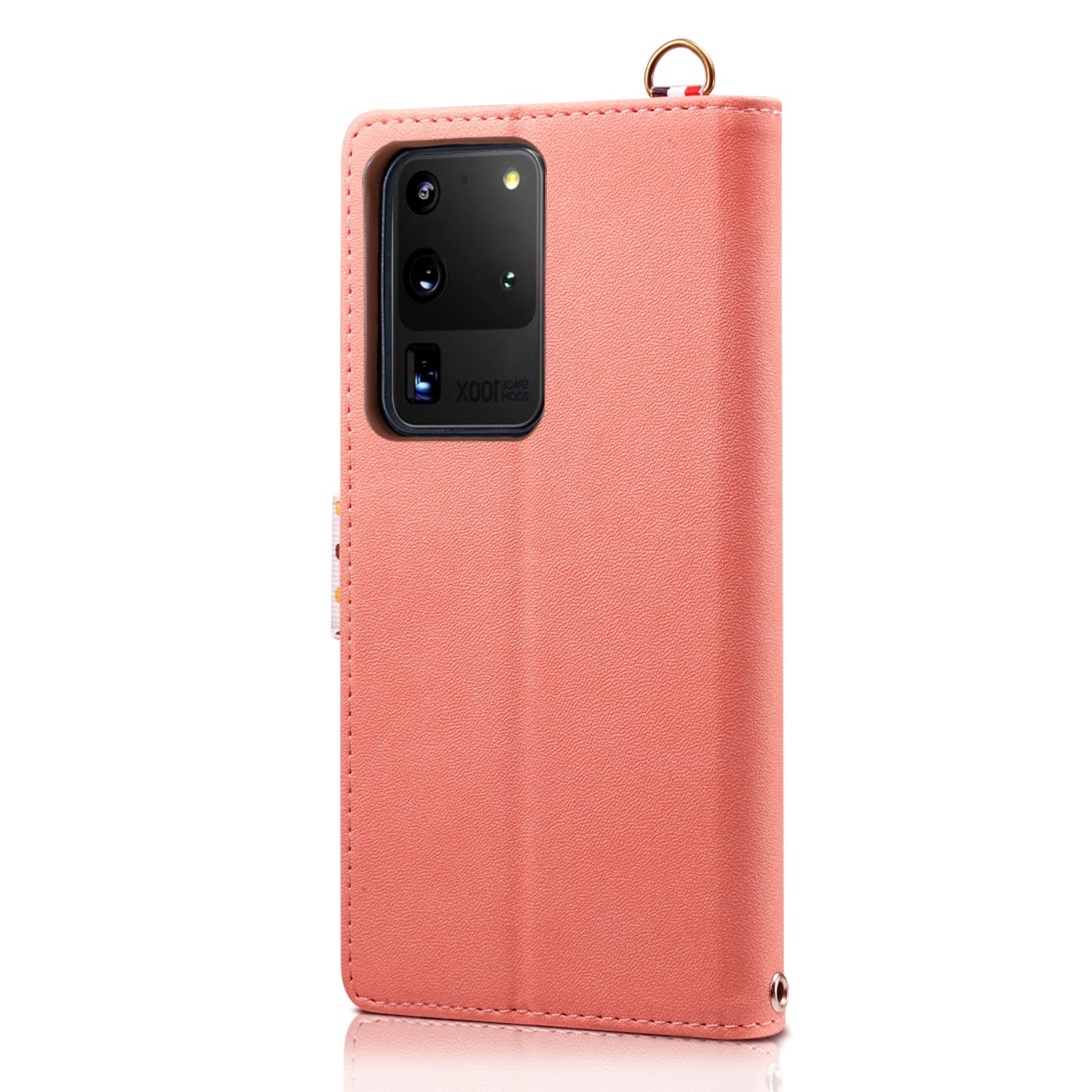 Polk Dots Style Wallet Stand Flip Leather Phone Shell for Samsung Galaxy S20 Ultra - Orange