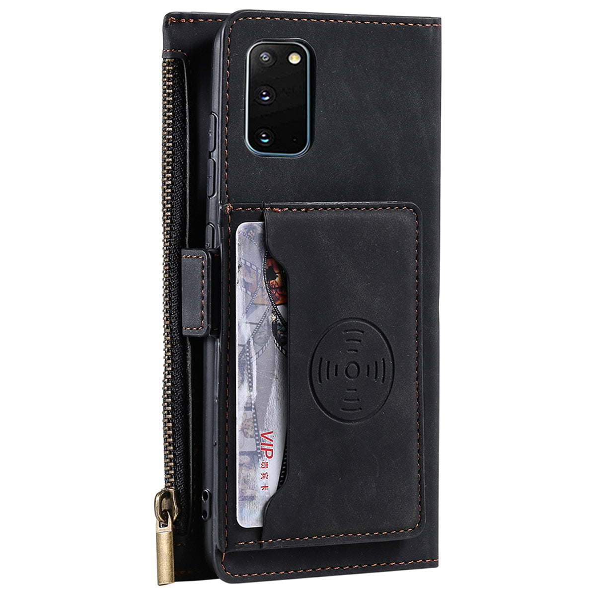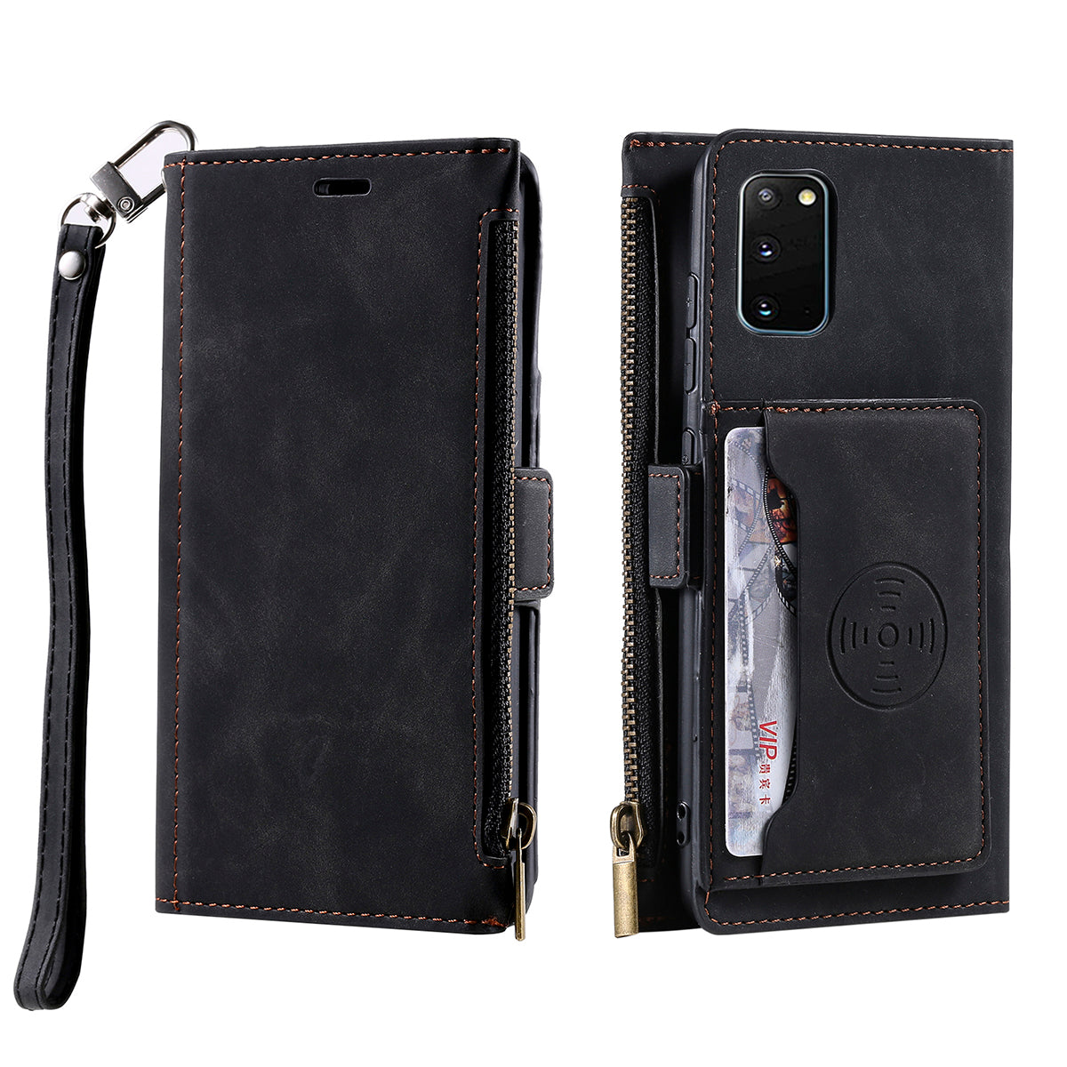 PU Leather Cellphone Protective Case Cover with Multifunctional Zipper Wallet and Kickstand for Samsung Galaxy S20 4G/S20 5G - Black
