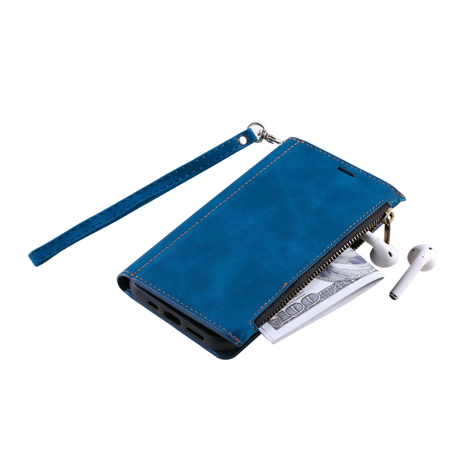 PU Leather Cellphone Protective Case Cover with Multifunctional Zipper Wallet and Kickstand for Samsung Galaxy S20 4G/S20 5G - Blue