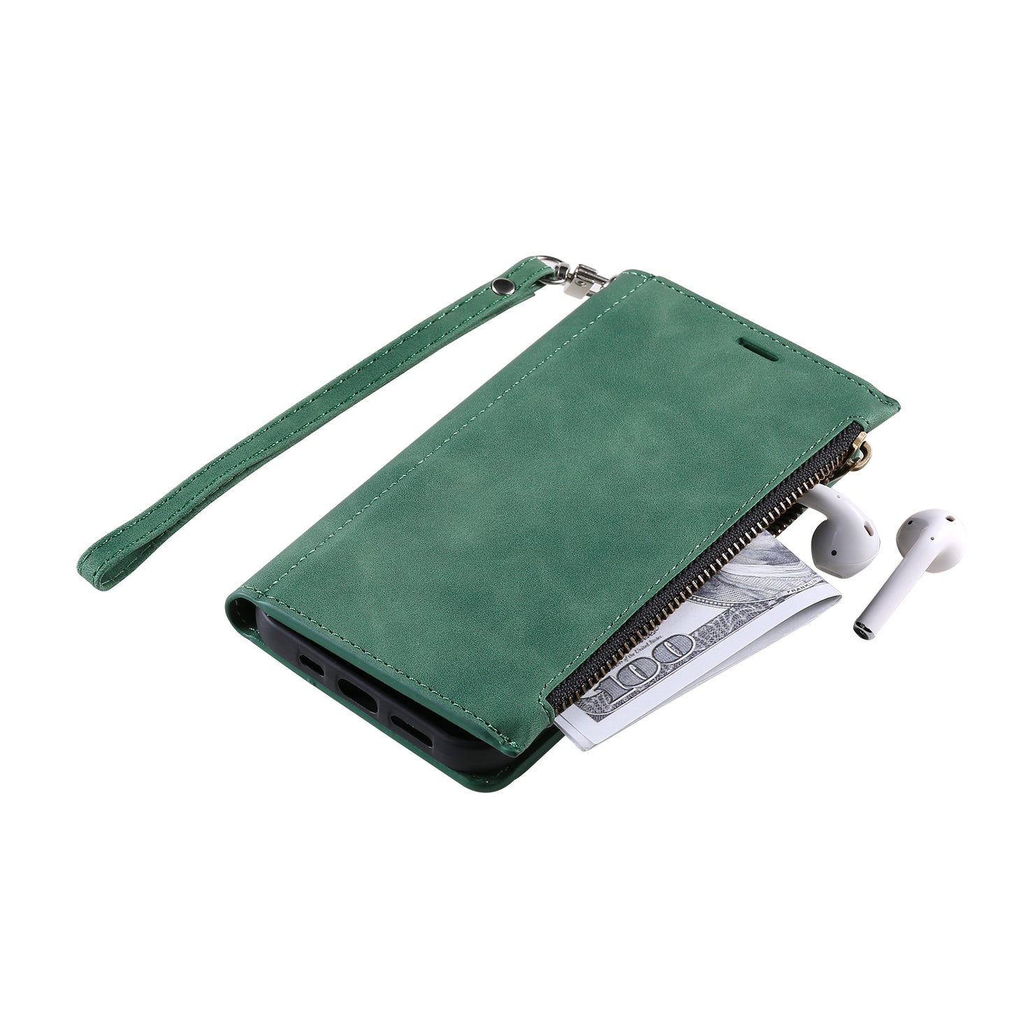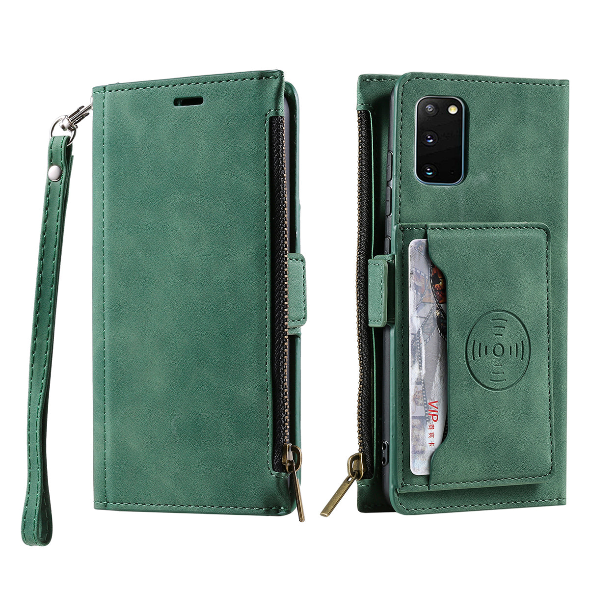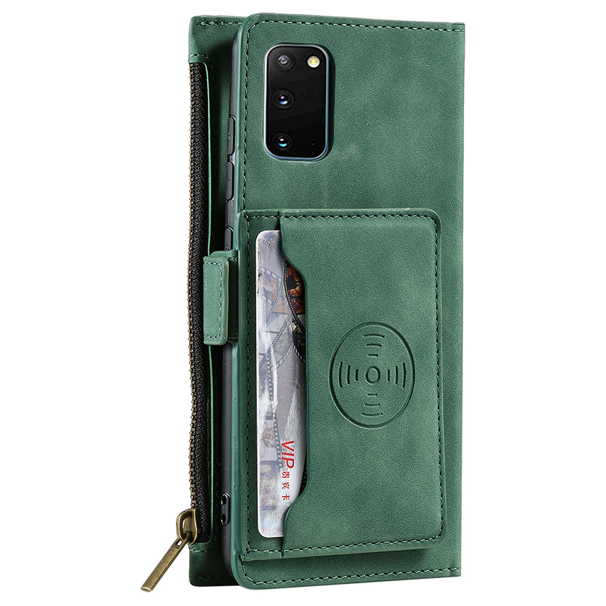PU Leather Cellphone Protective Case Cover with Multifunctional Zipper Wallet and Kickstand for Samsung Galaxy S20 4G/S20 5G - Green