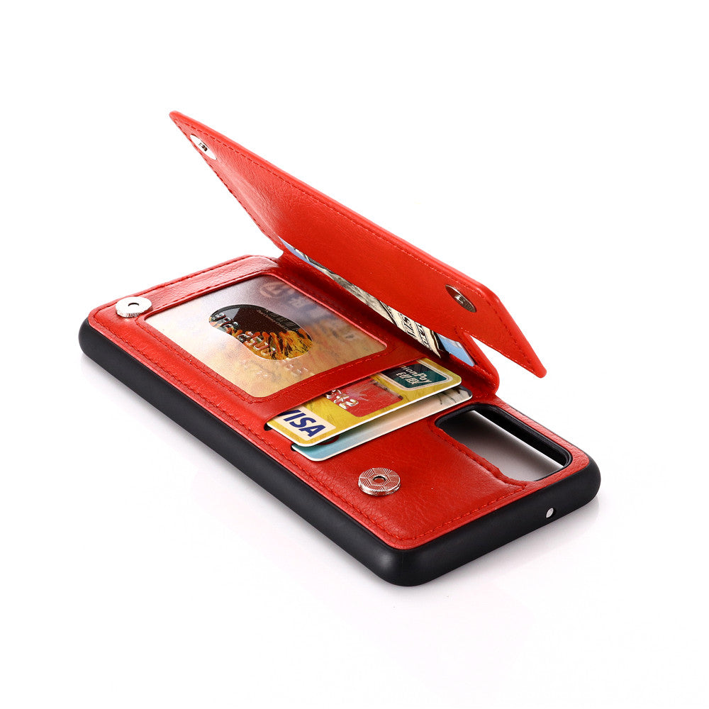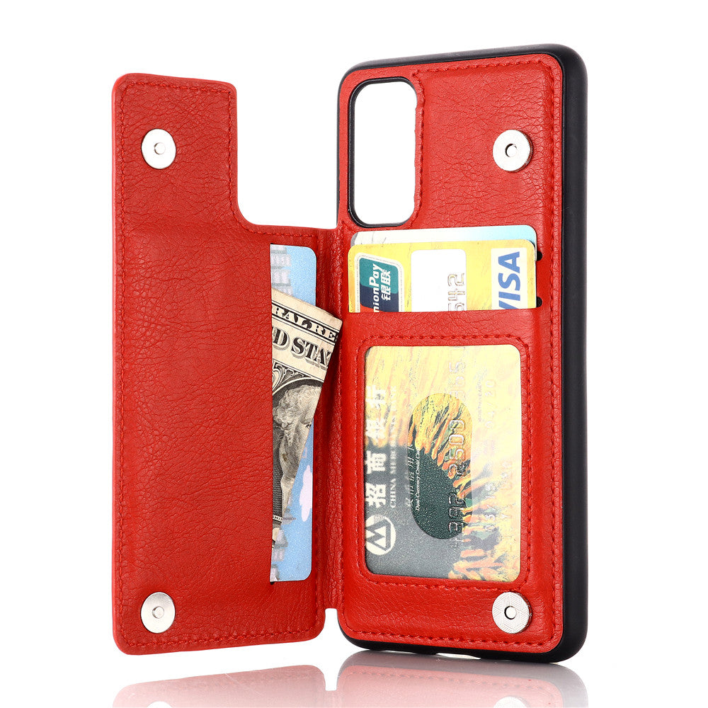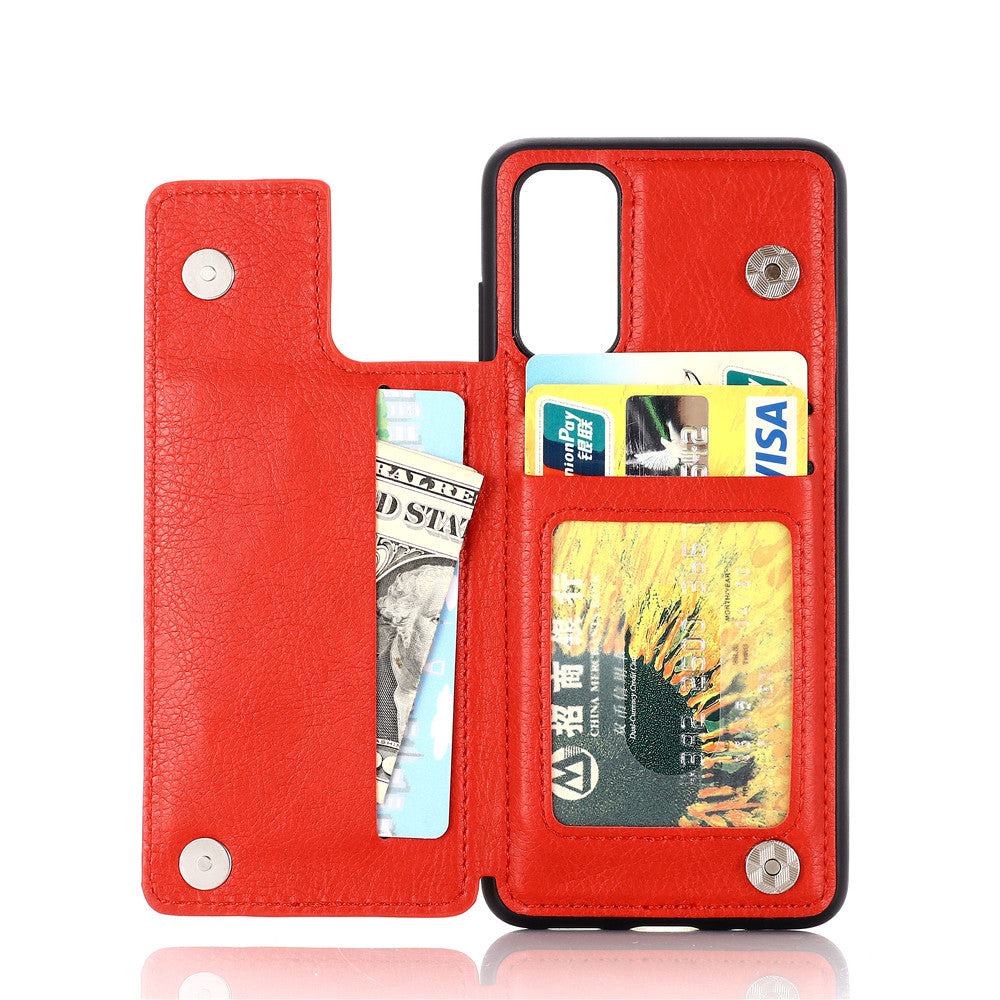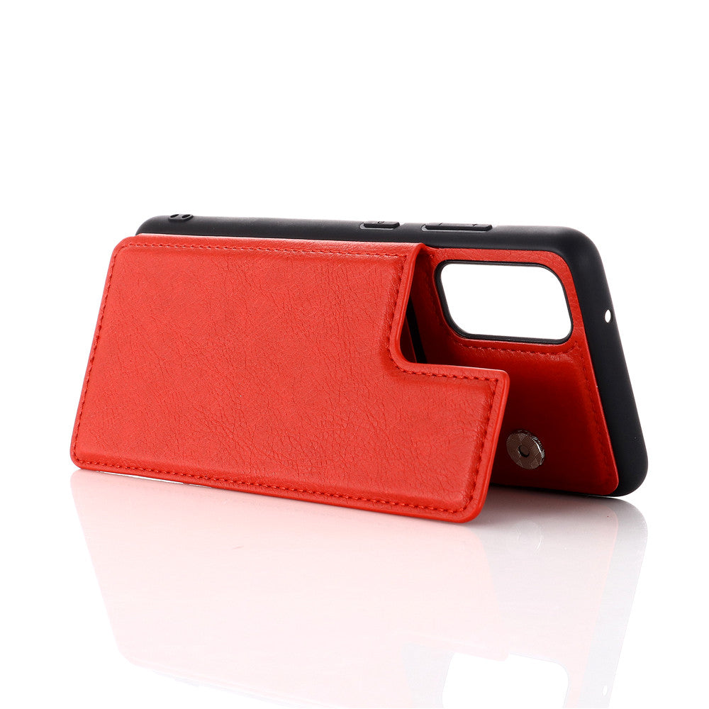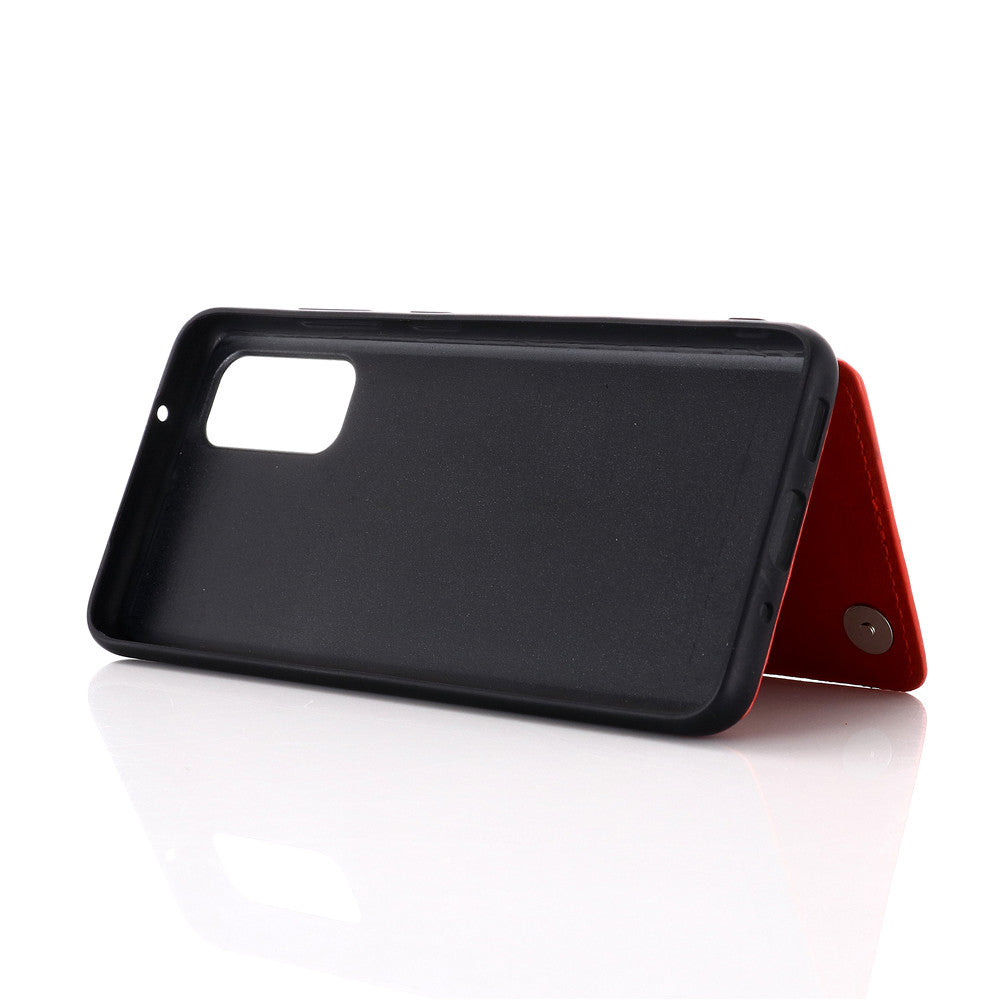 PU Leather Coated PC + TPU Hybrid Card Holder Shell with Kickstand for Samsung Galaxy S20 4G/S20 5G - Red