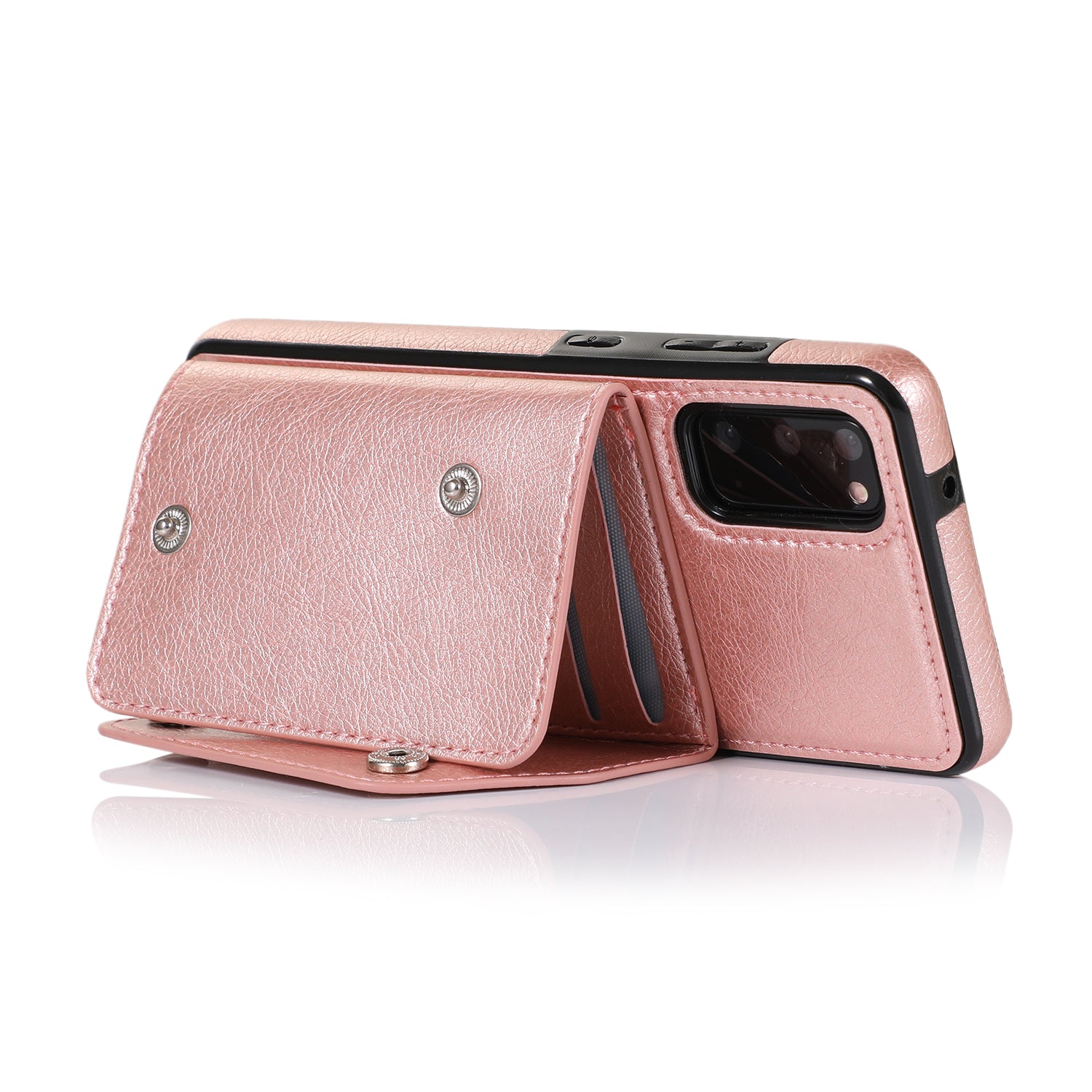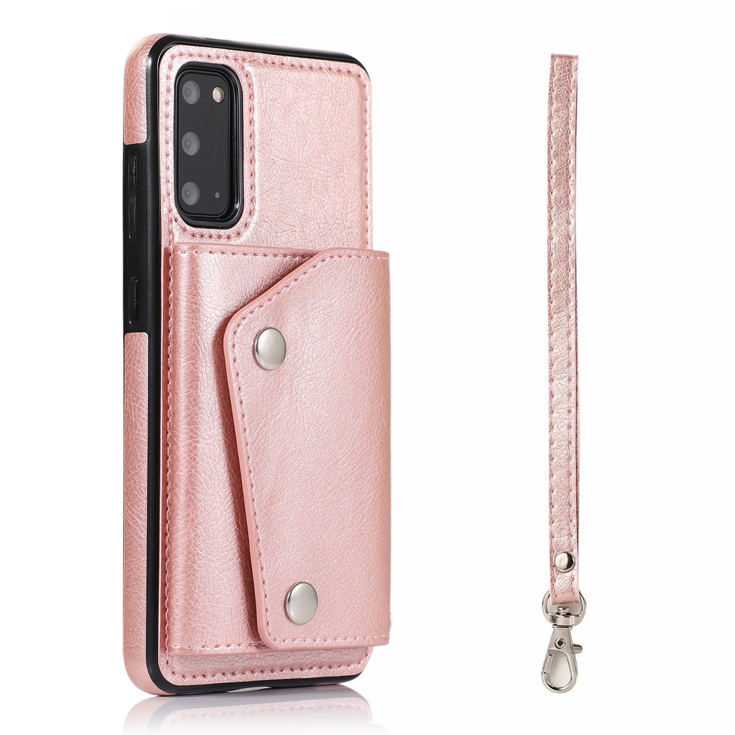 PU Leather Coated TPU Cover with Strap for Samsung Galaxy S20 4G/S20 5G - Rose Gold