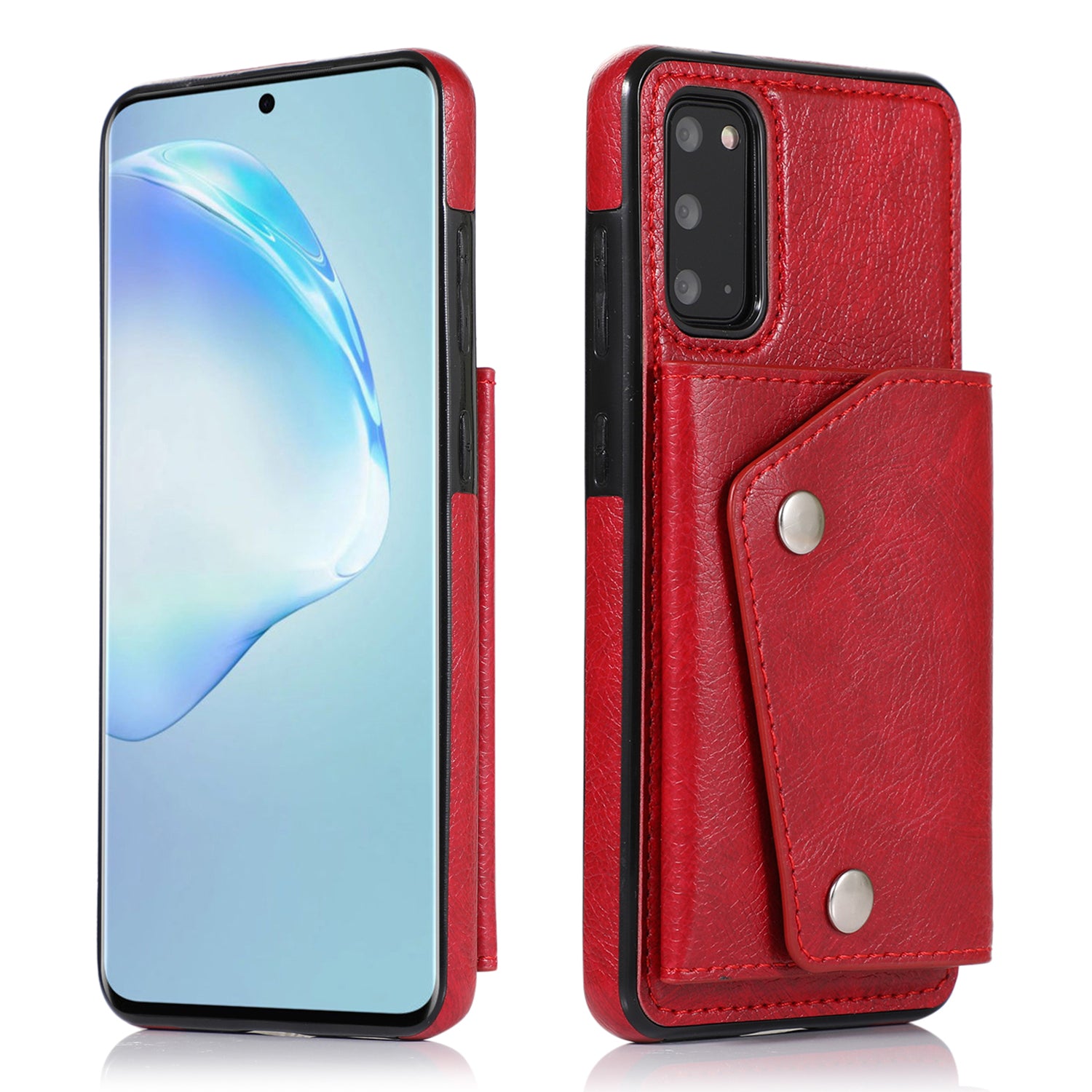 PU Leather Coated TPU Cover with Strap for Samsung Galaxy S20 Plus - Red