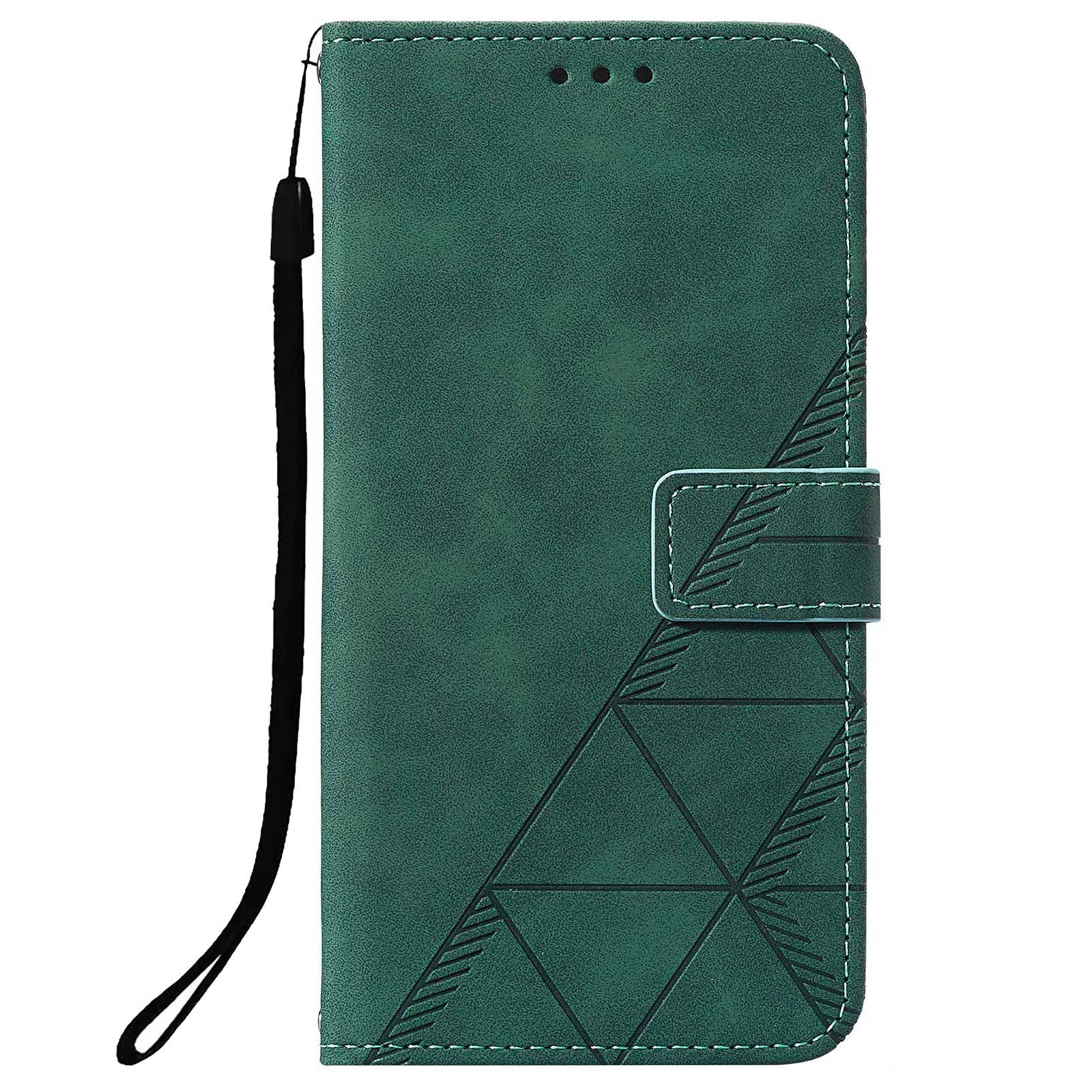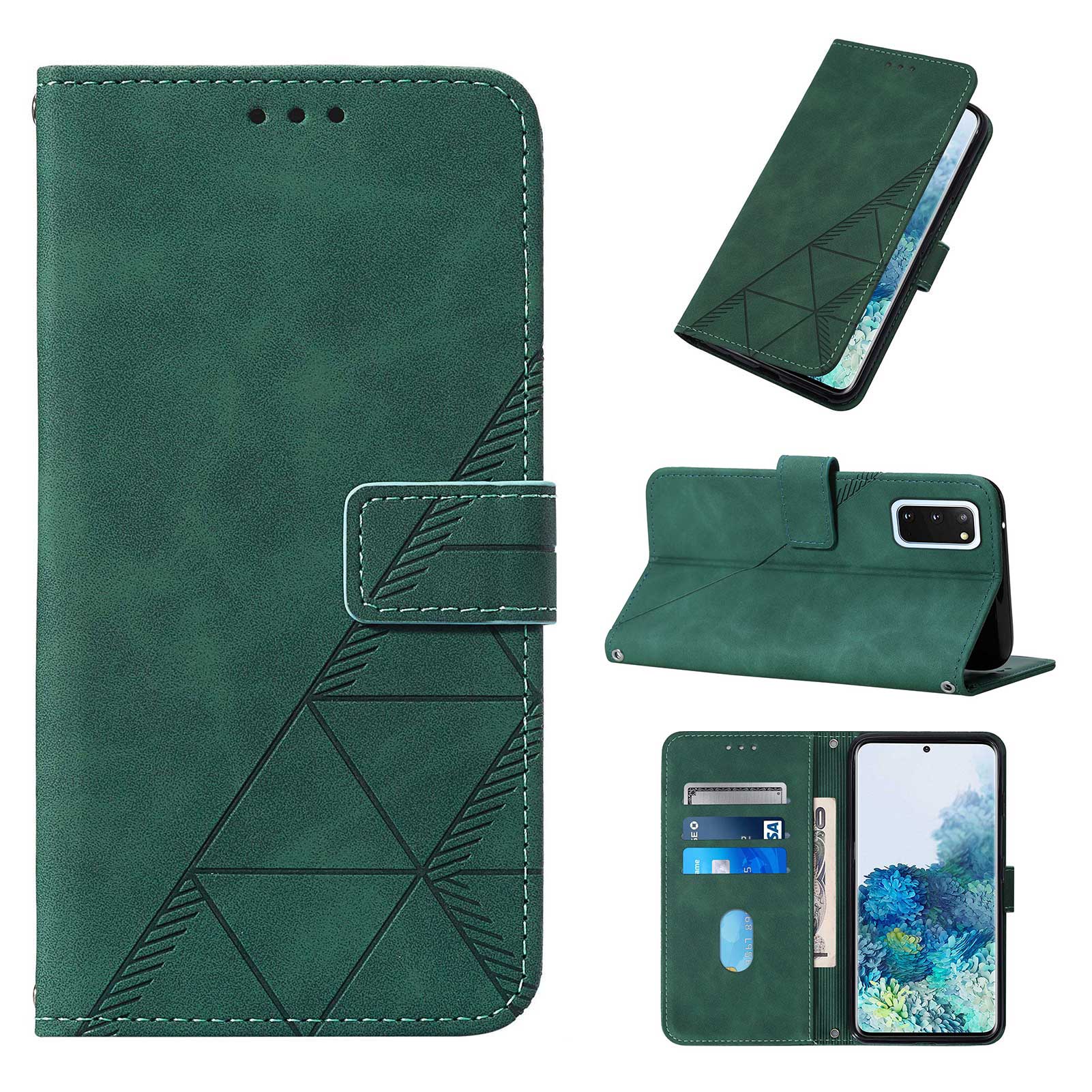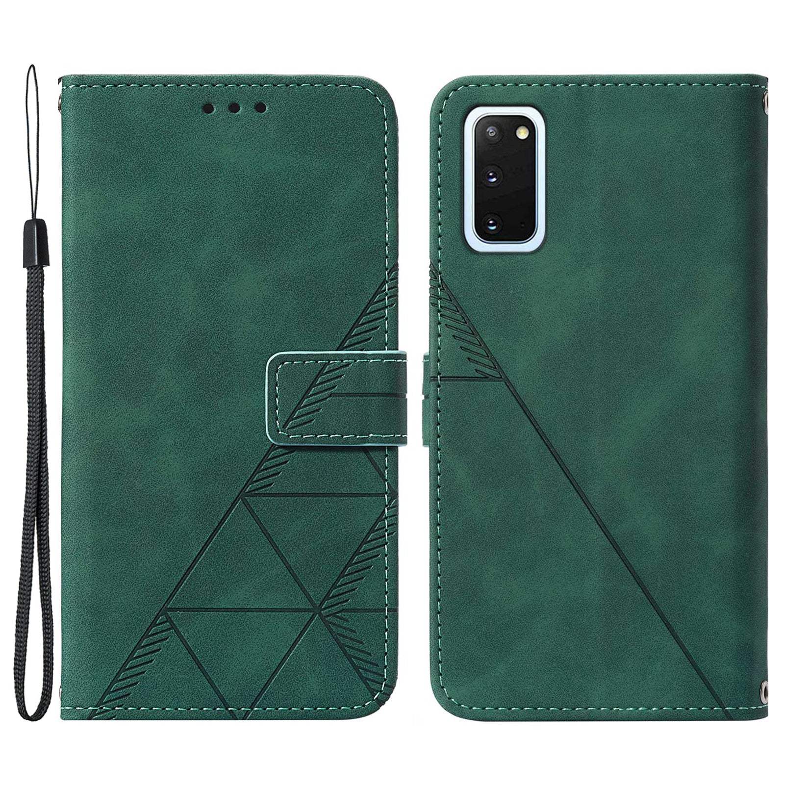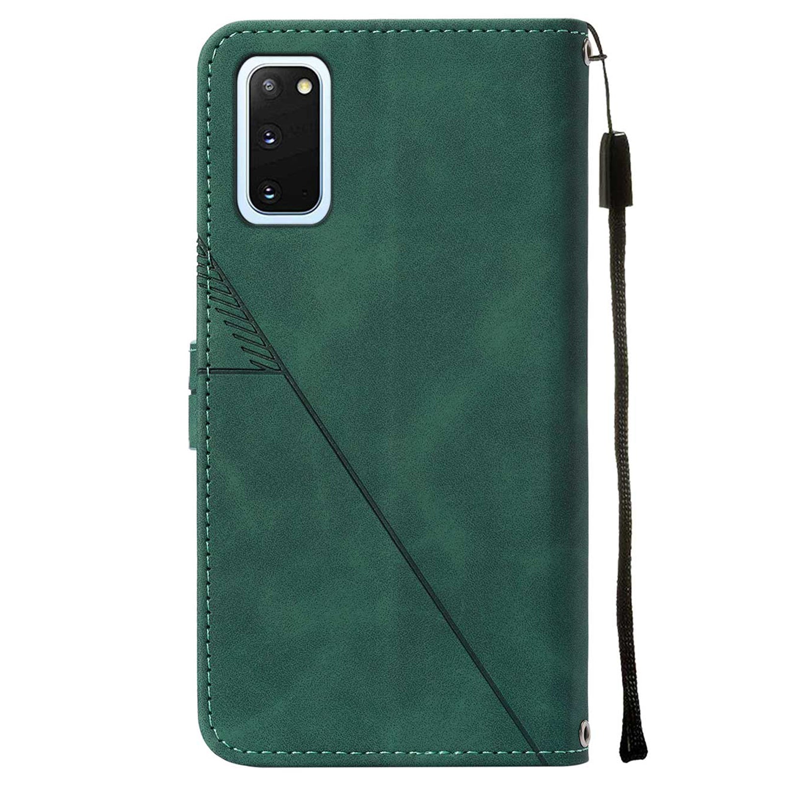 PU Leather Imprinting Lines Wallet Case Stand Feature Shockproof TPU Shell with Strap for Samsung Galaxy S20 4G/S20 5G - Blackish Green