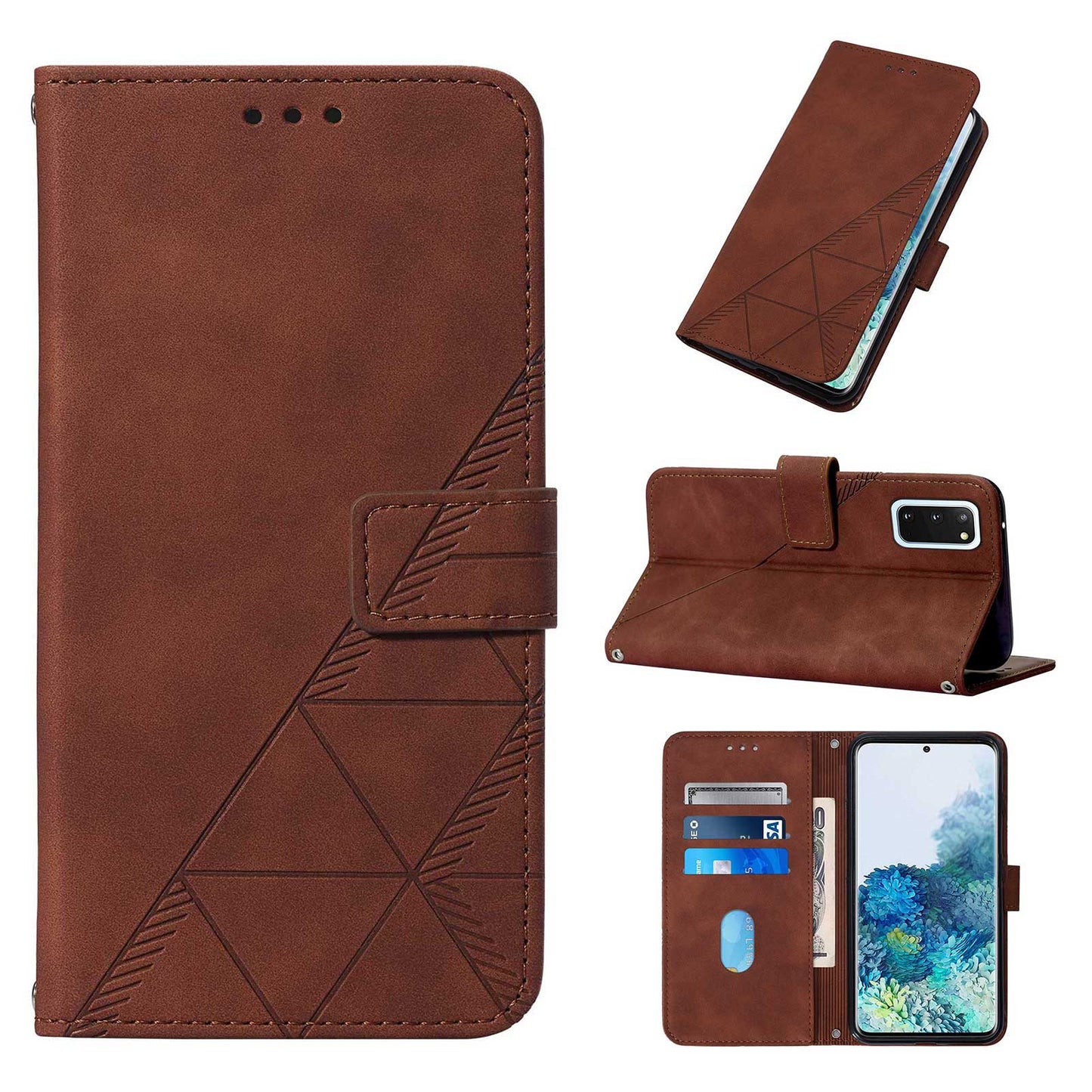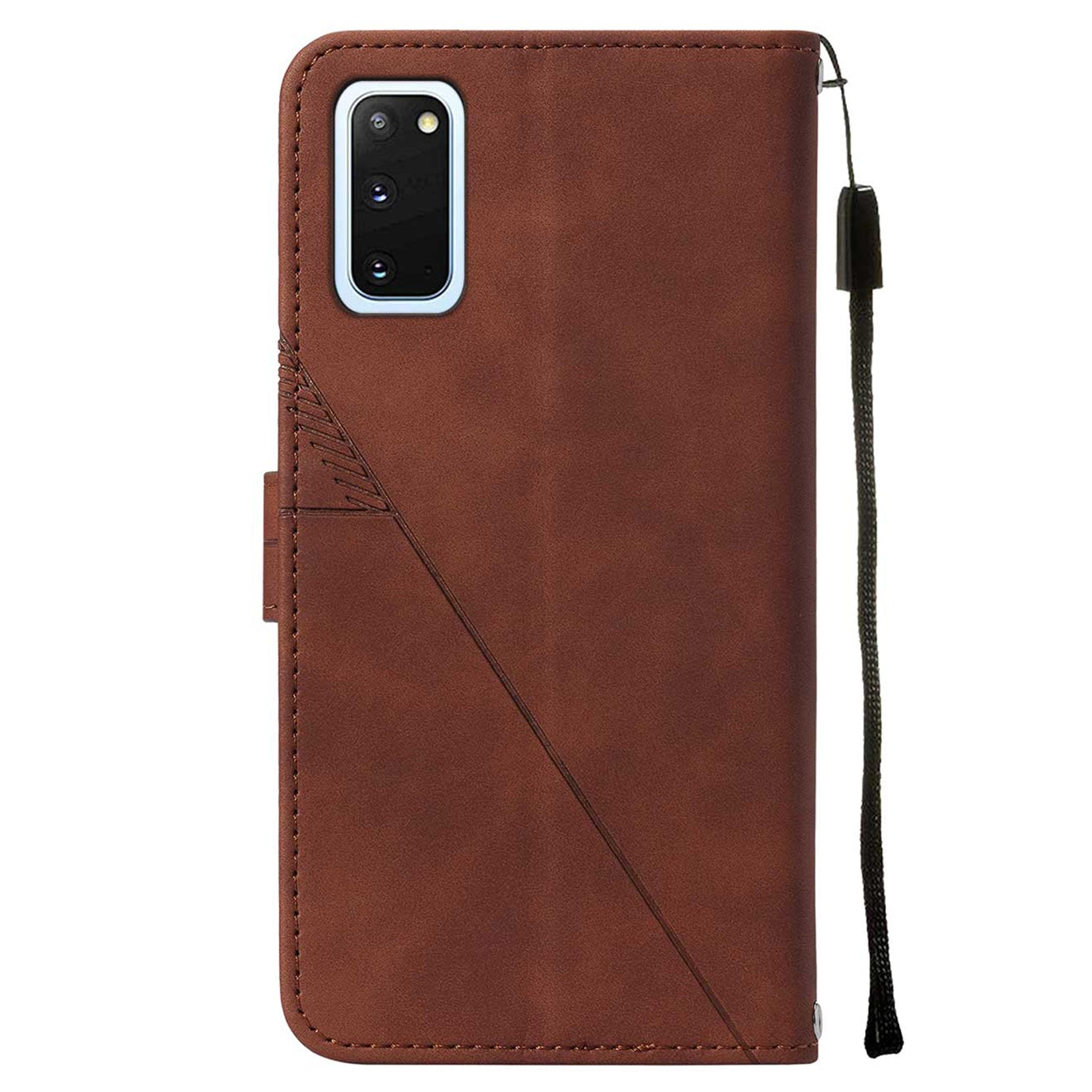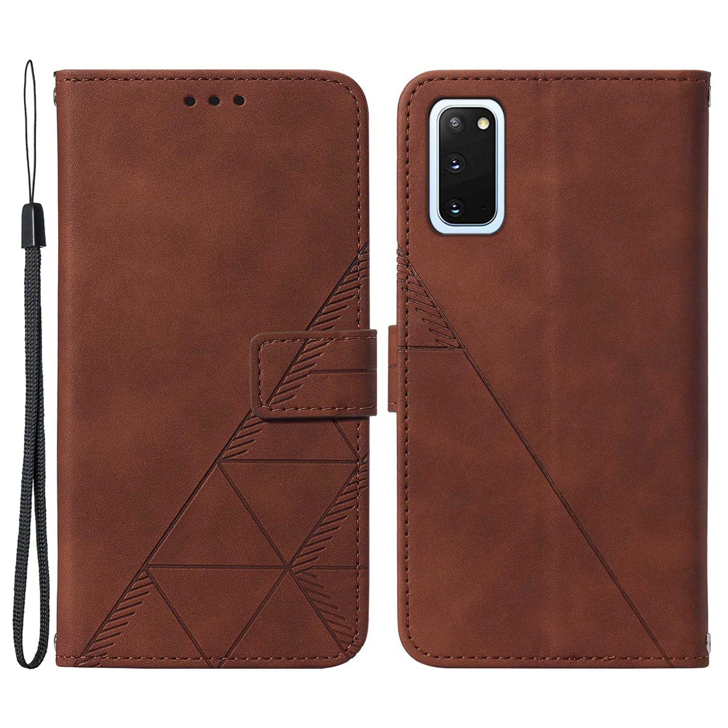 PU Leather Imprinting Lines Wallet Case Stand Feature Shockproof TPU Shell with Strap for Samsung Galaxy S20 4G/S20 5G - Brown