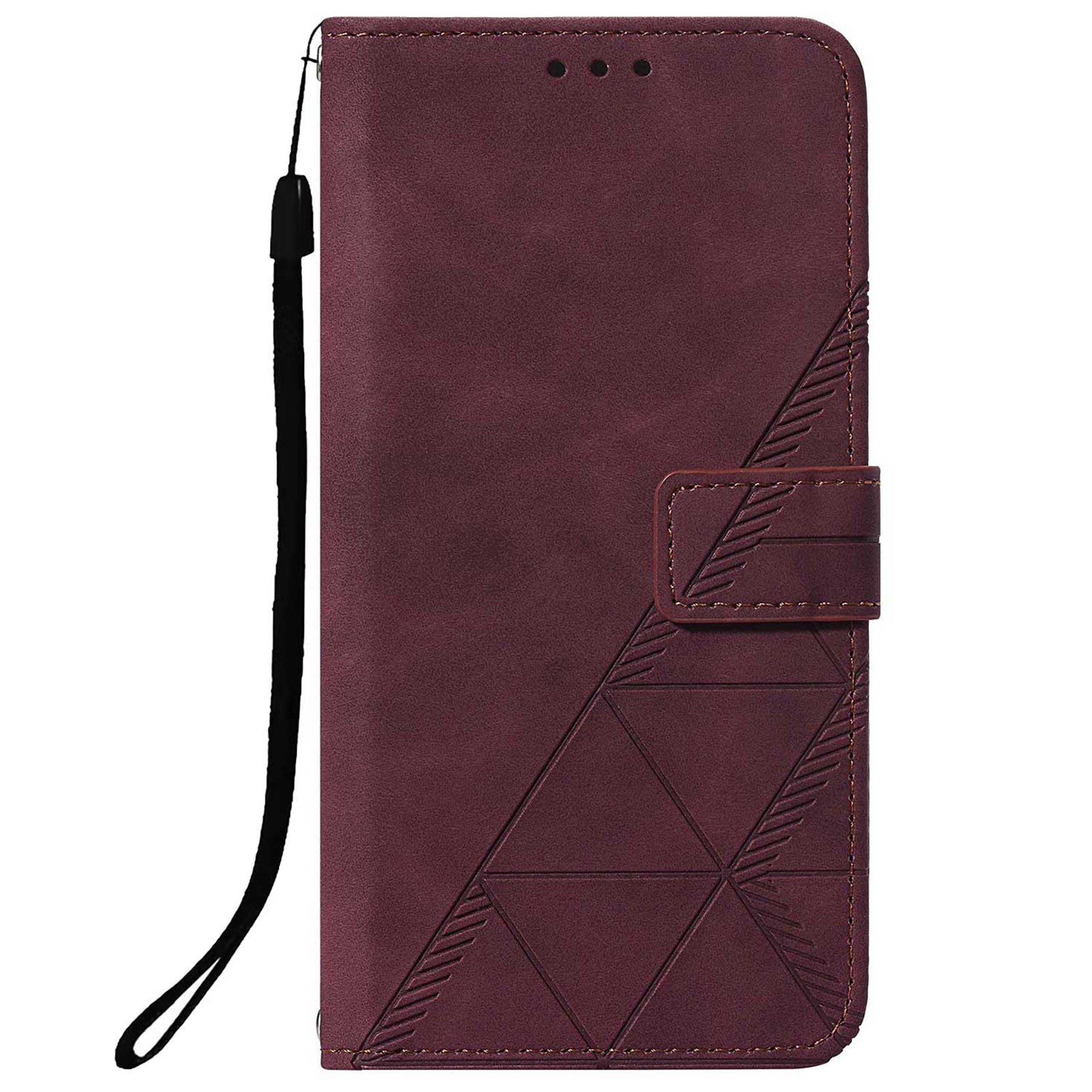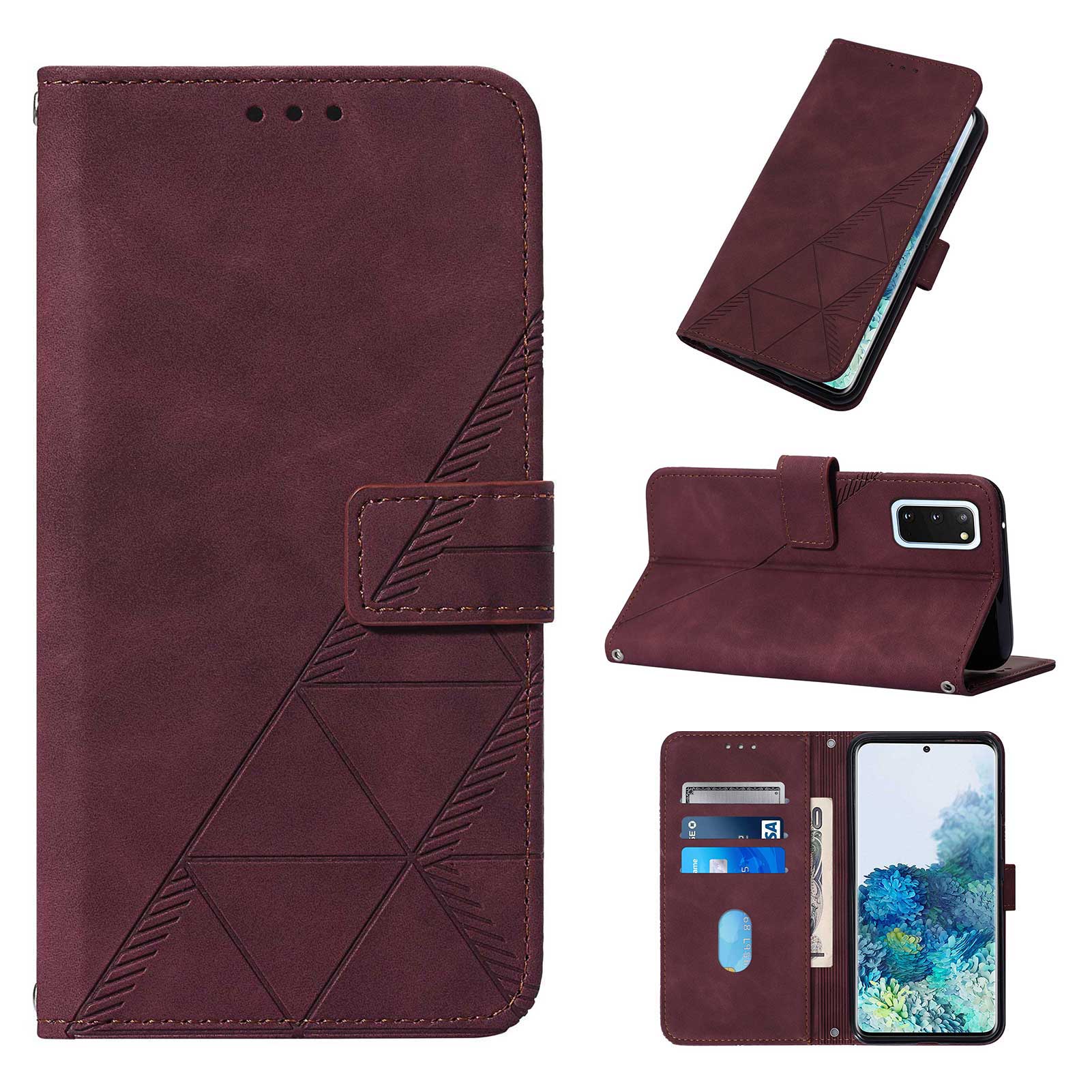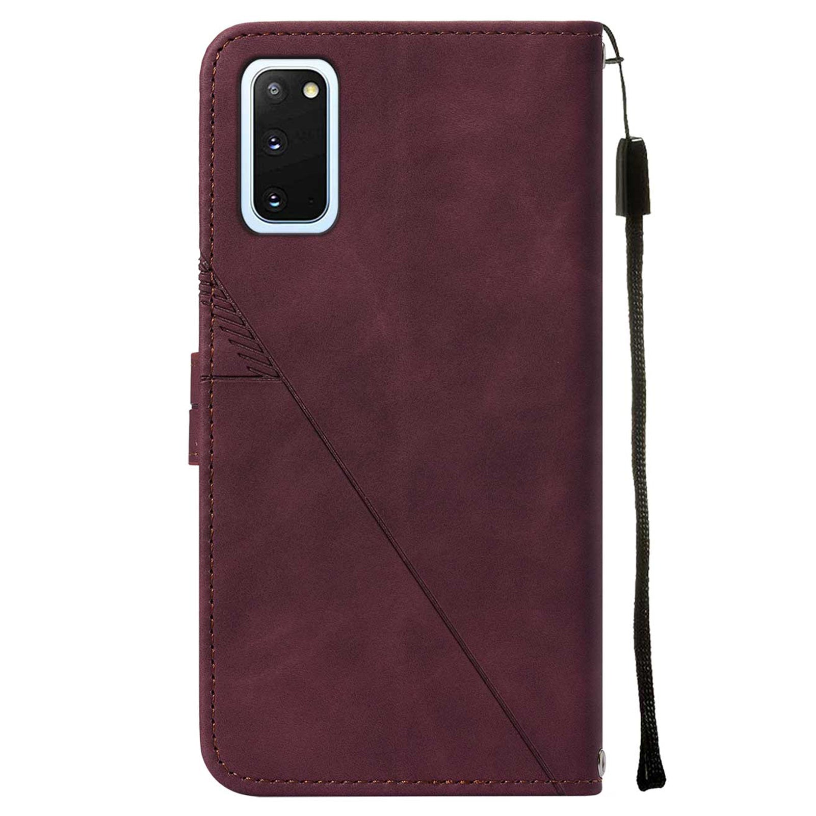 PU Leather Imprinting Lines Wallet Case Stand Feature Shockproof TPU Shell with Strap for Samsung Galaxy S20 4G/S20 5G - Wine Red