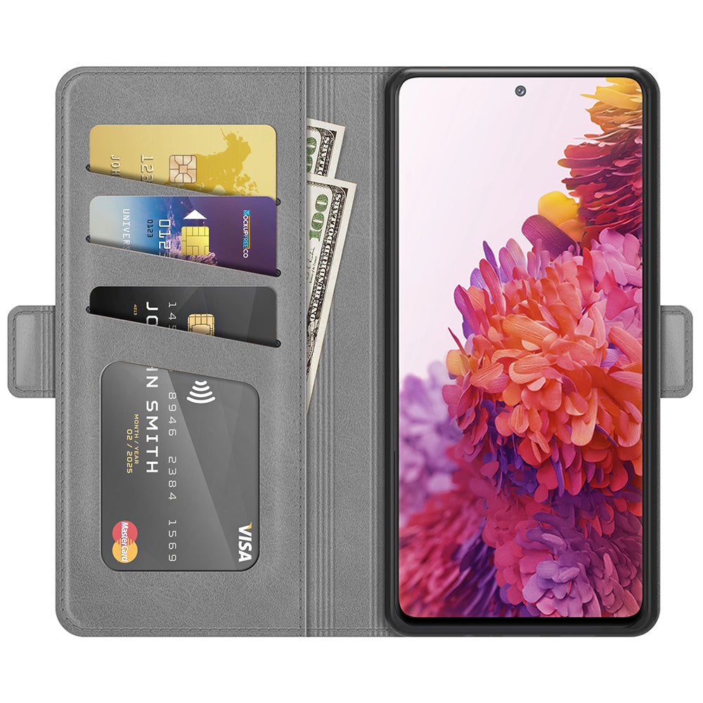 PU Leather Phone Wallet Stand Case Shell with Dual Magnetic Clasp Closure for Samsung Galaxy S20 FE 2022/S20 FE 4G/S20 FE 5G/S20 Lite - Grey