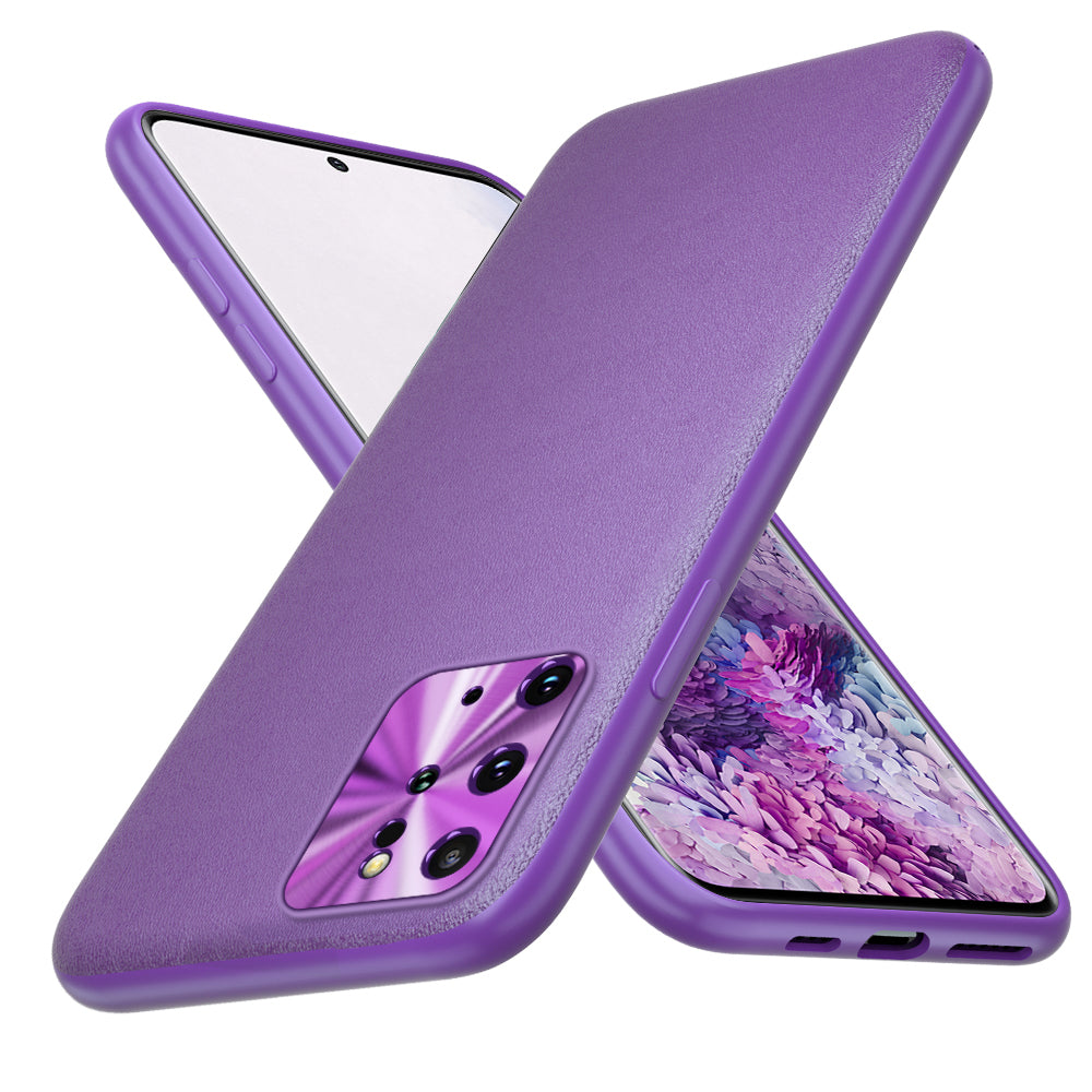 PU Leather TPU Phone Case with Alloy Lens Ring for Samsung Galaxy S20 Plus - Purple