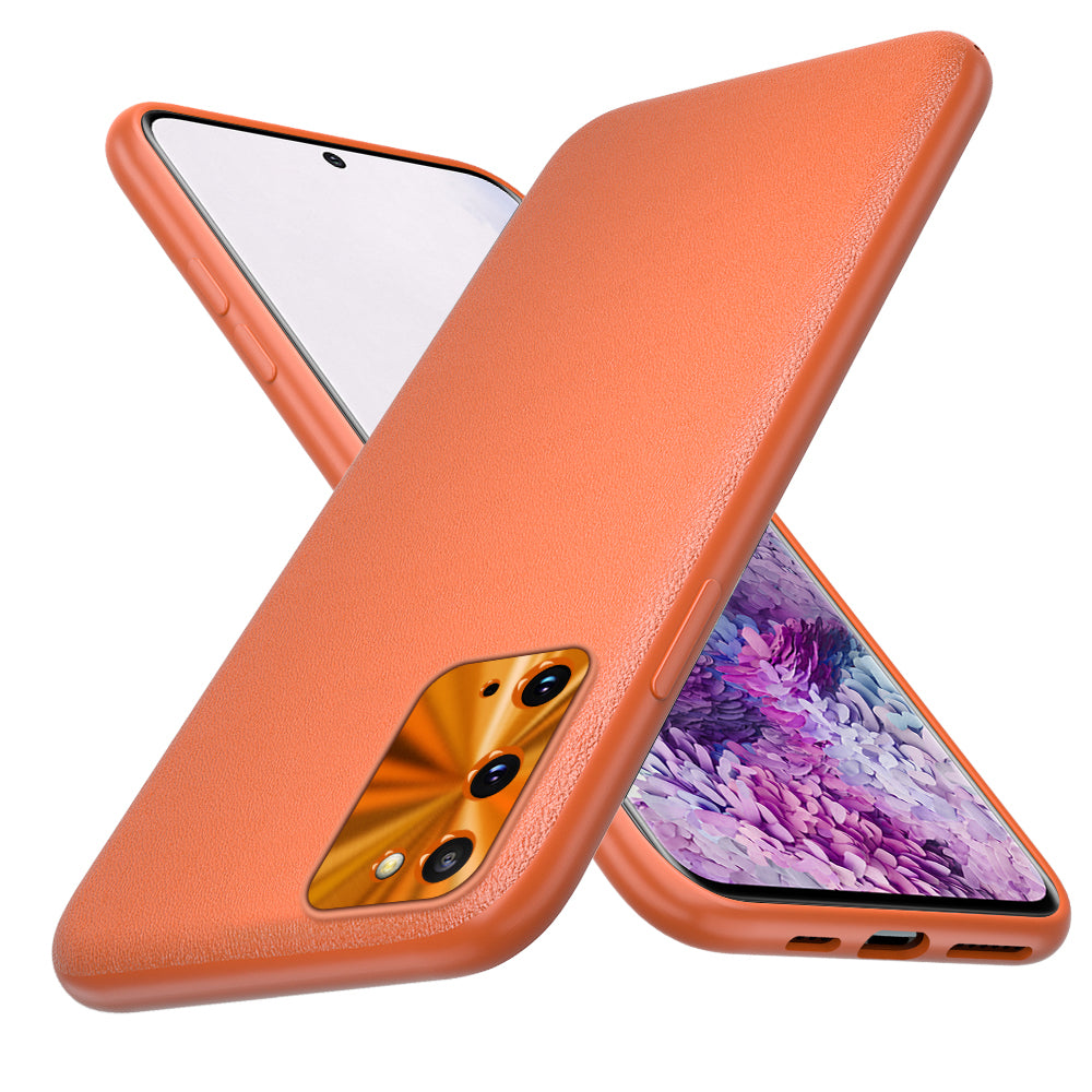 PU Leather TPU Phone Shell with Alloy Lens Ring for Samsung Galaxy S20 4G/S20 5G - Orange