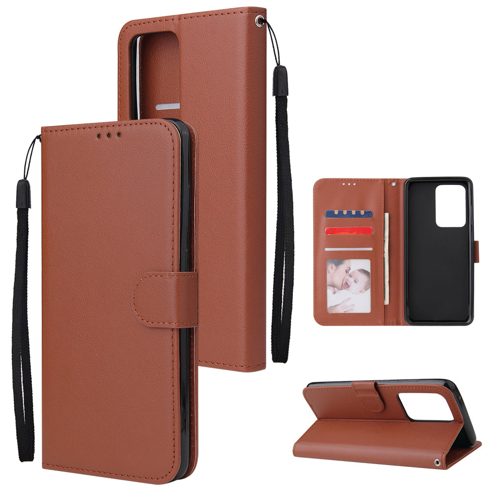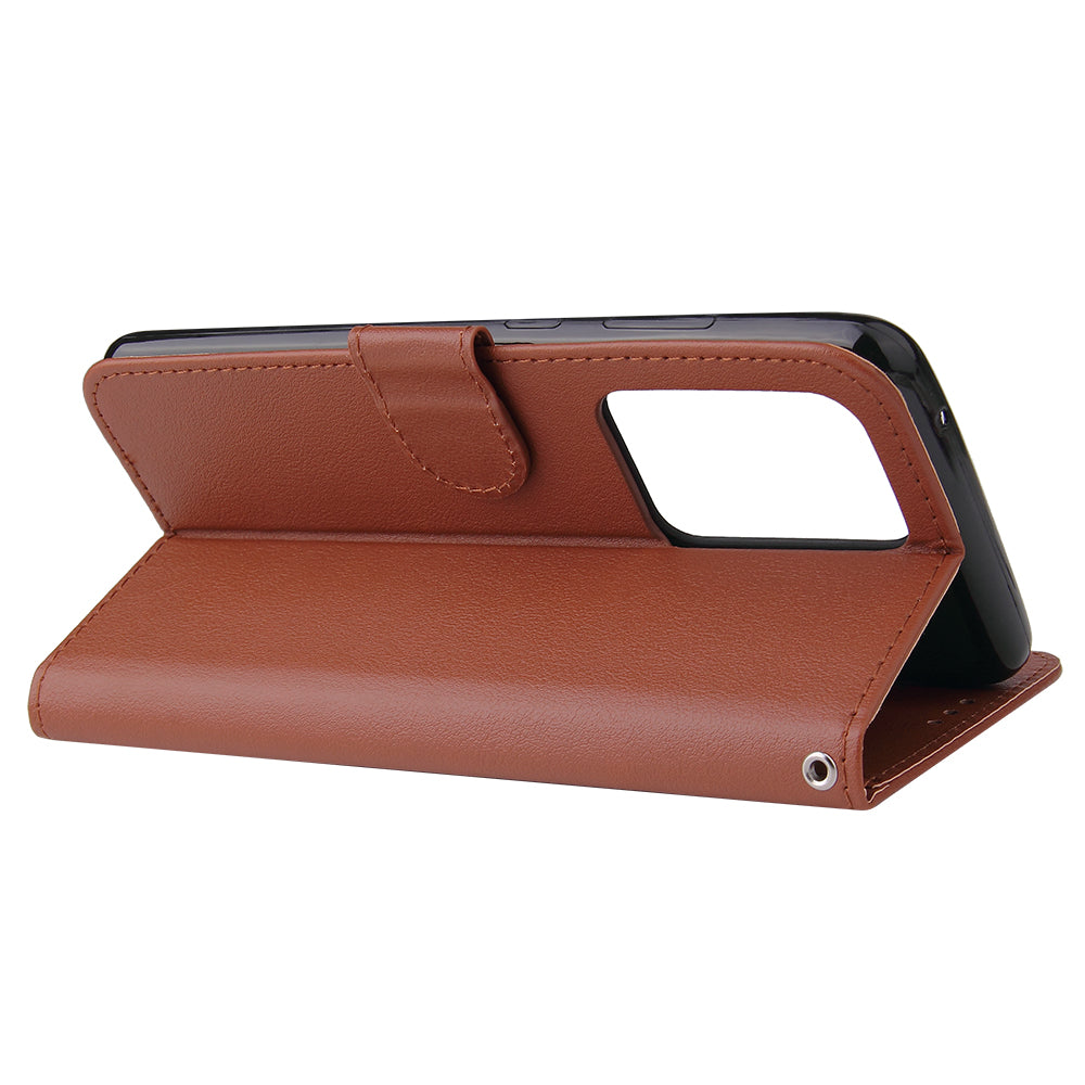 PU Leather Wallet Cell Phone Case with Lanyard for Samsung Galaxy S20 Ultra - Brown