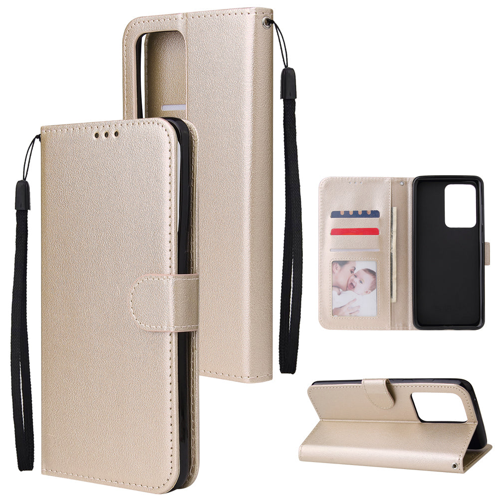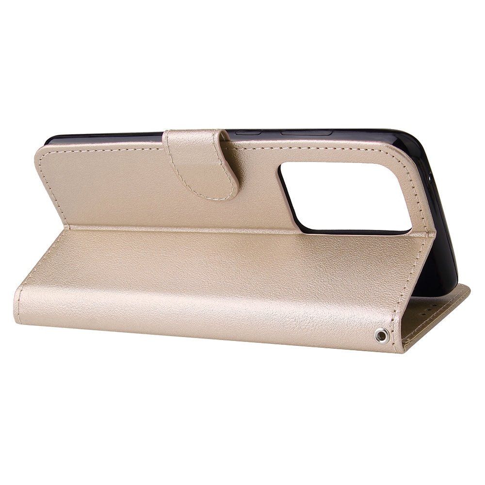 PU Leather Wallet Cell Phone Case with Lanyard for Samsung Galaxy S20 Ultra - Gold