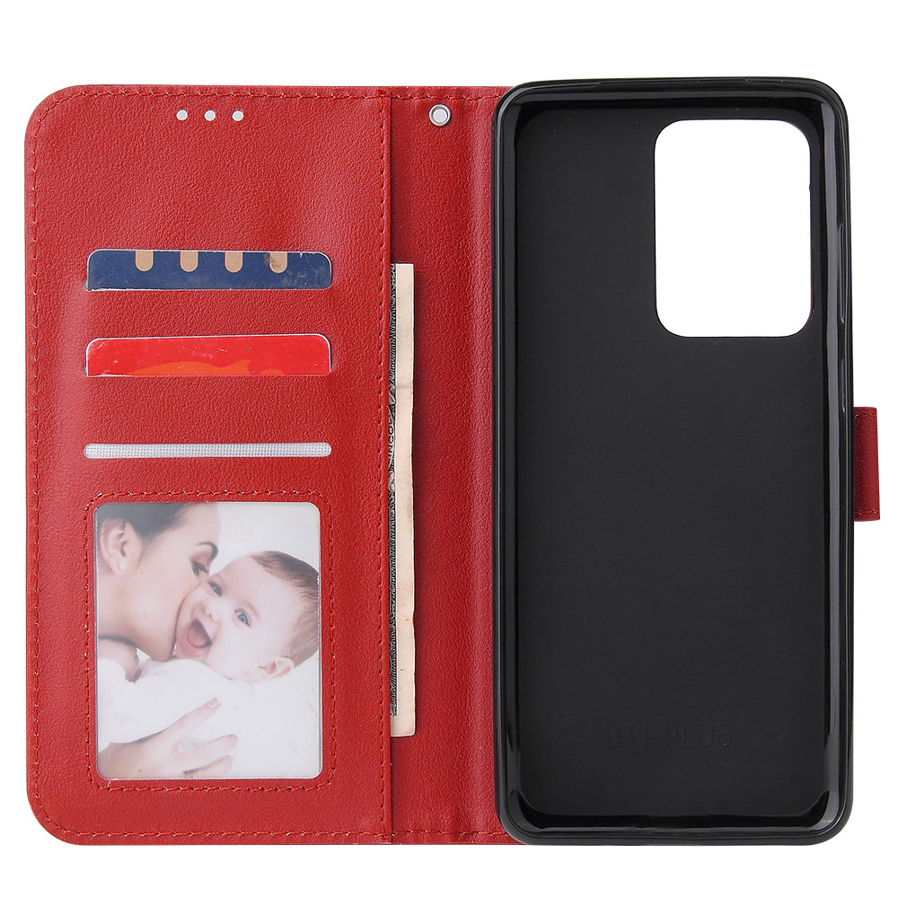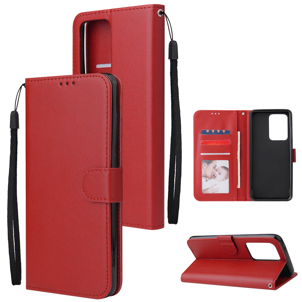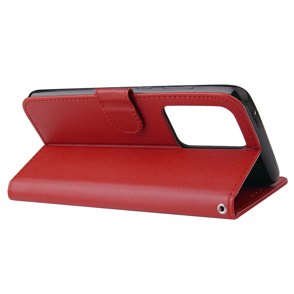 PU Leather Wallet Cell Phone Case with Lanyard for Samsung Galaxy S20 Ultra - Red