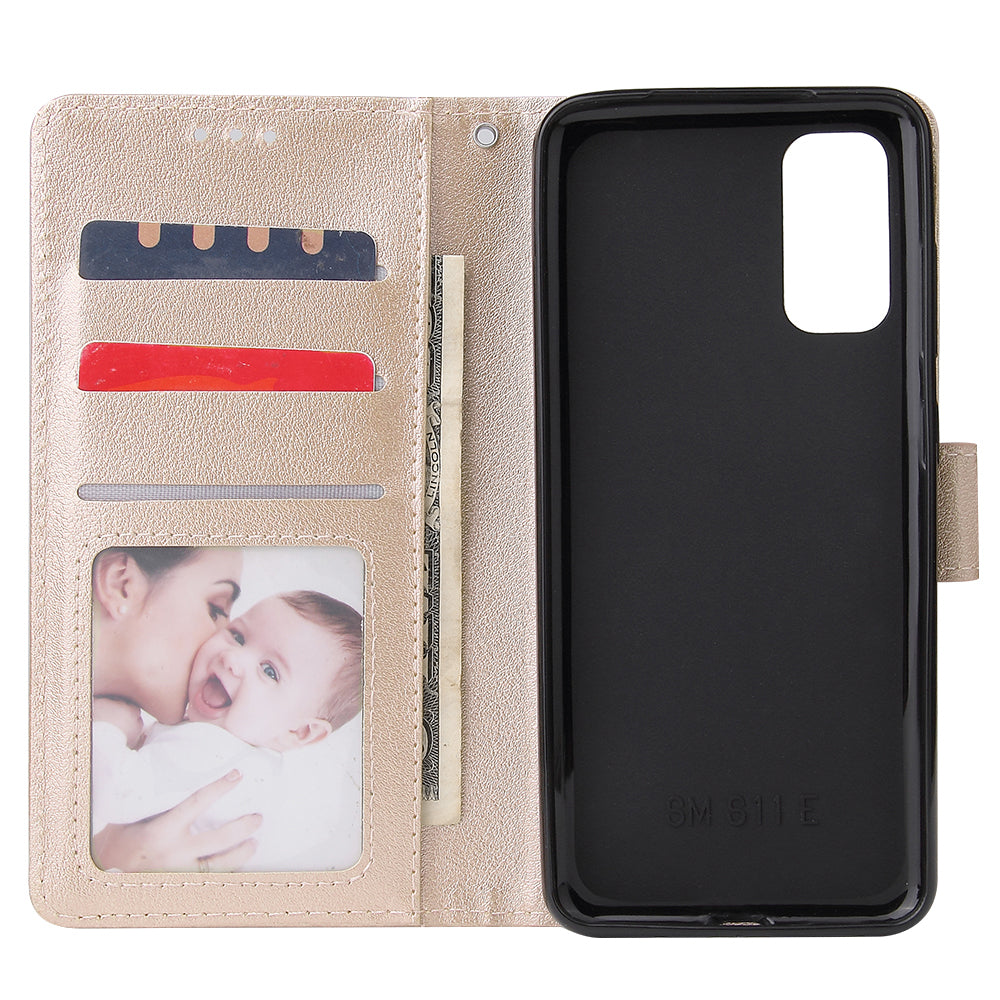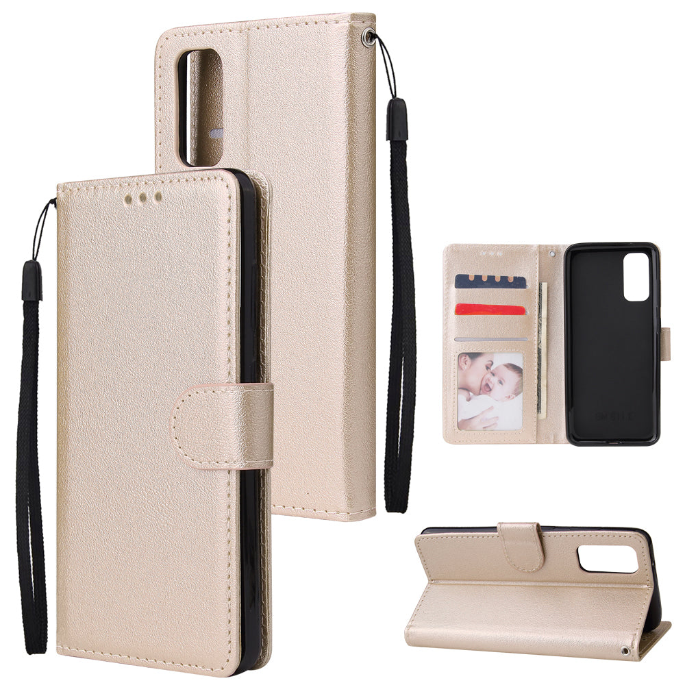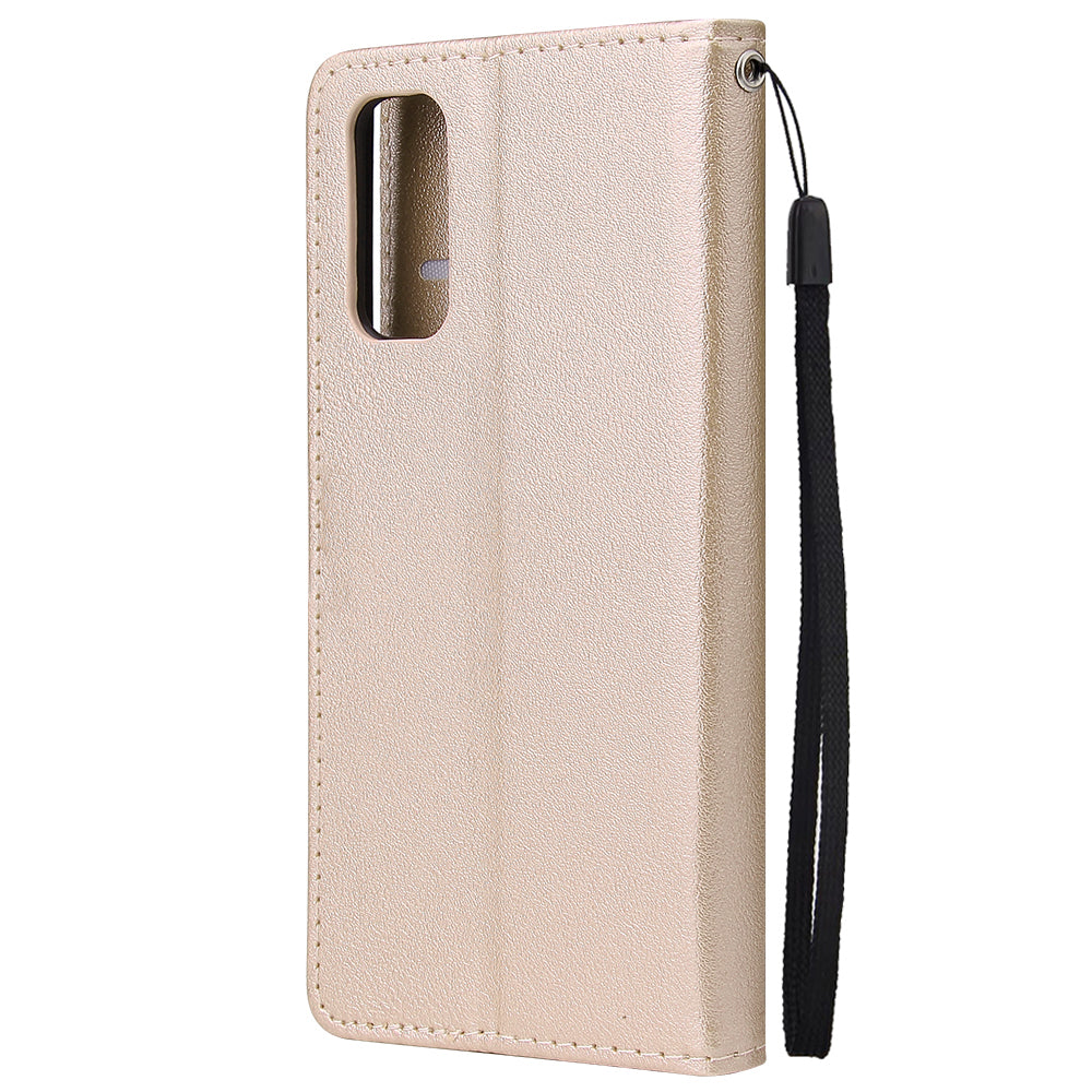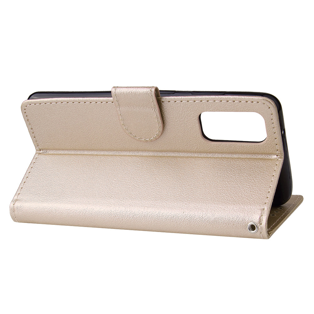 PU Leather Wallet Cell Phone Case with Lanyard Shell for Samsung Galaxy S20 4G/S20 5G - Gold