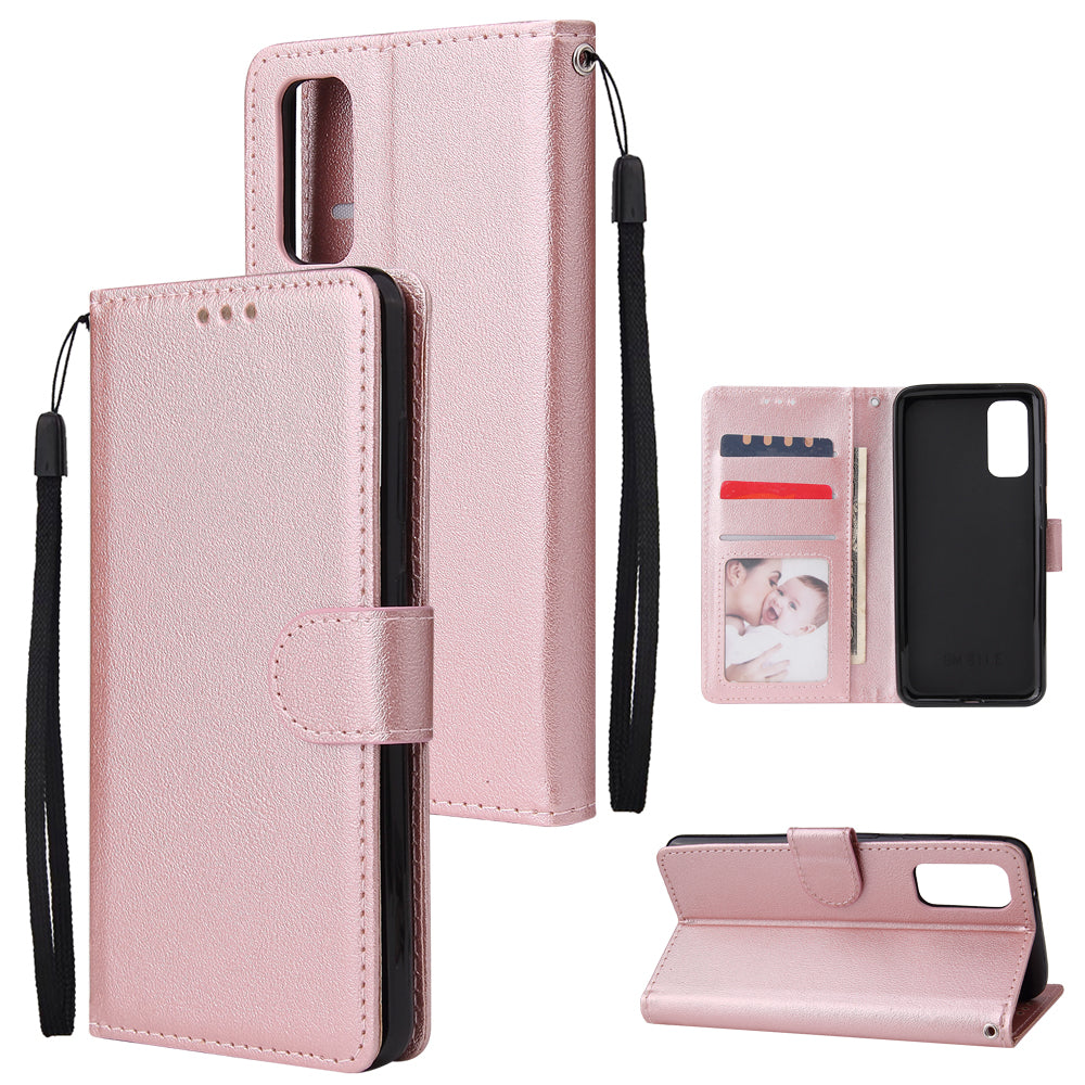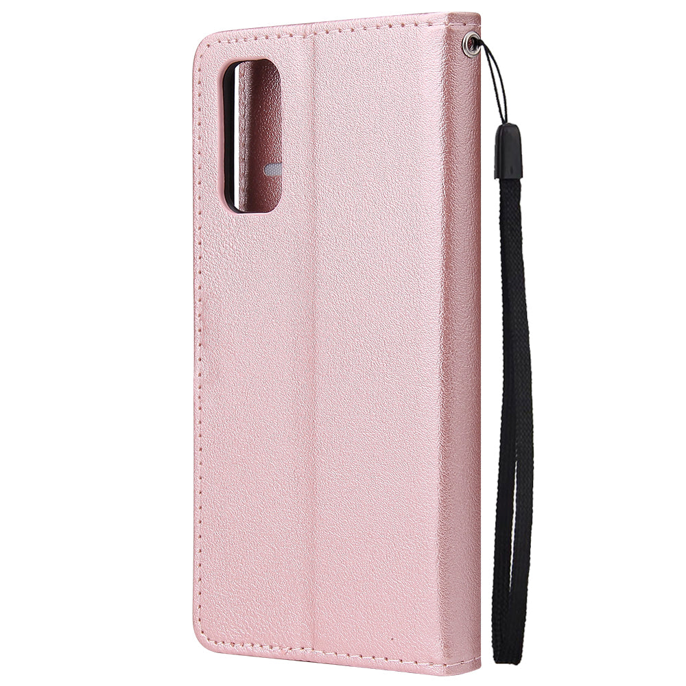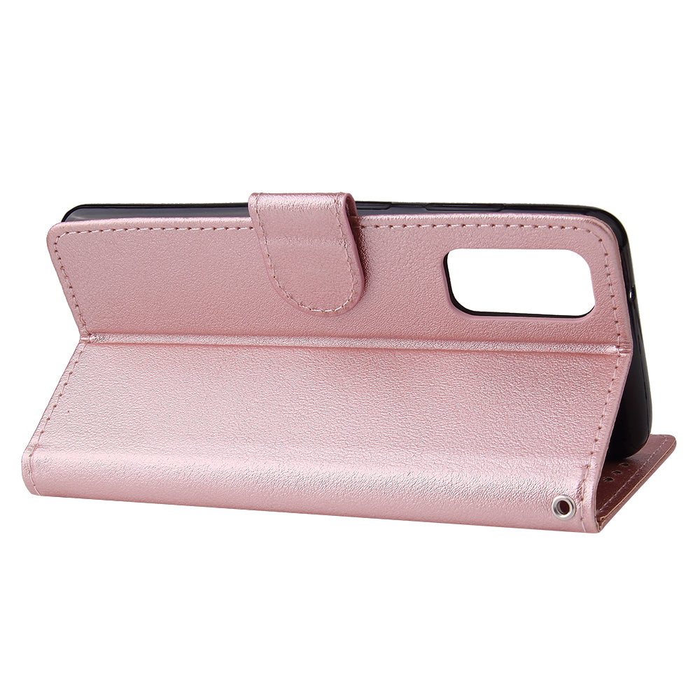 PU Leather Wallet Cell Phone Case with Lanyard Shell for Samsung Galaxy S20 4G/S20 5G - Rose Gold