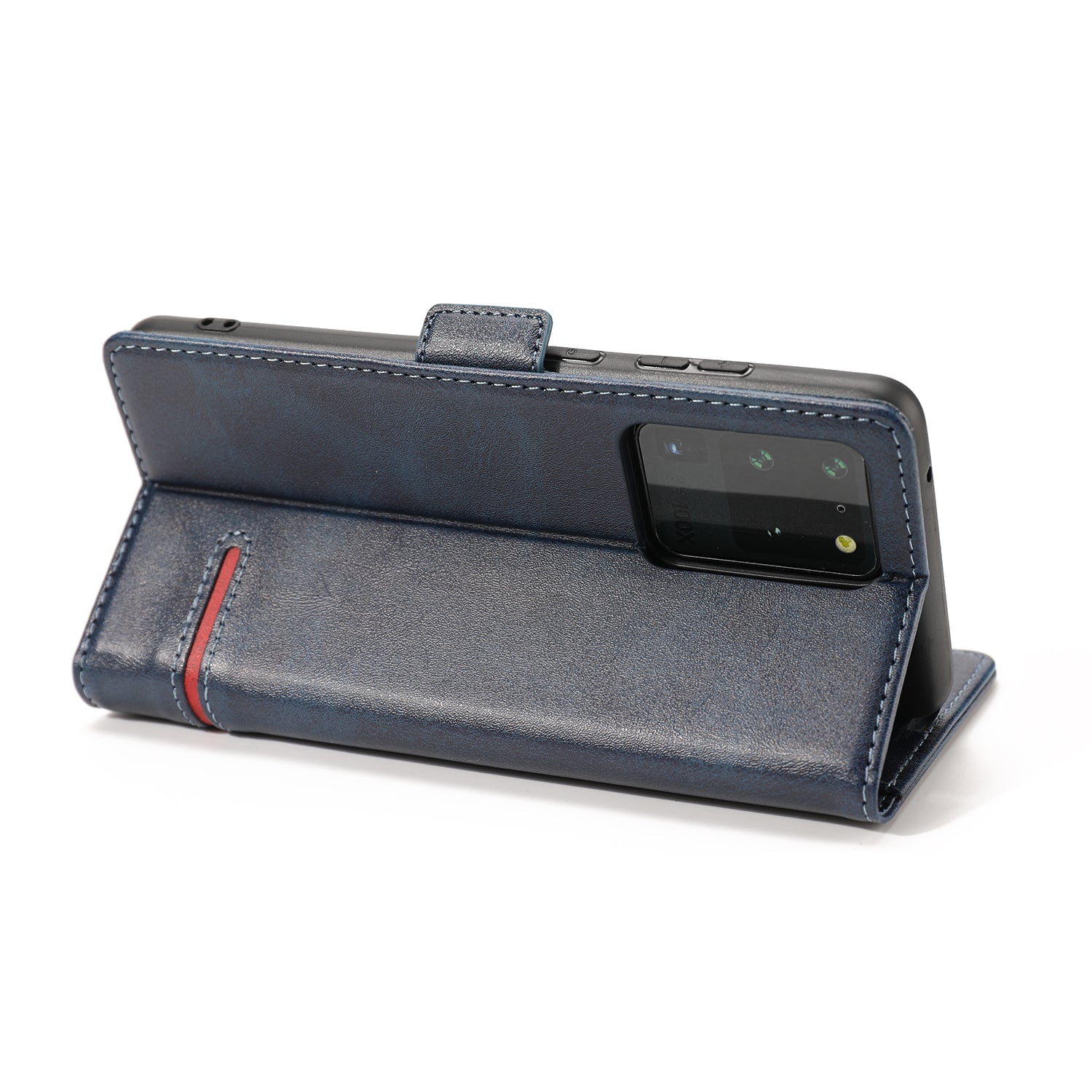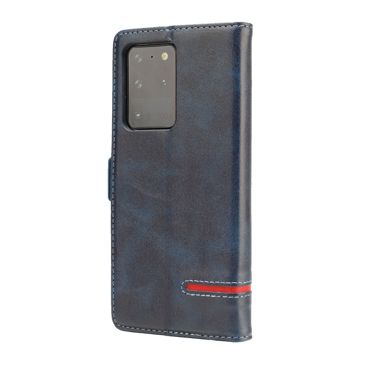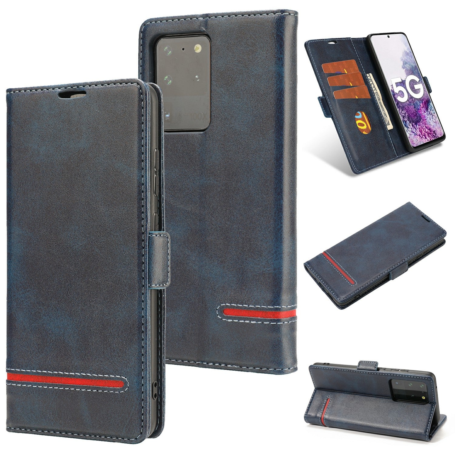 PU Leather Wallet Magnetic Mobile Phone Shell for Samsung Galaxy S20 Ultra - Blue