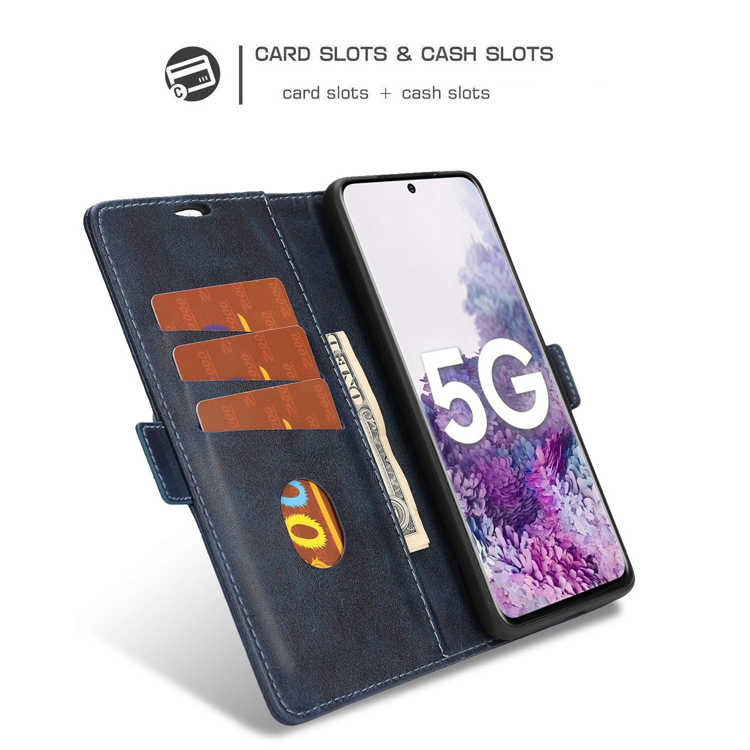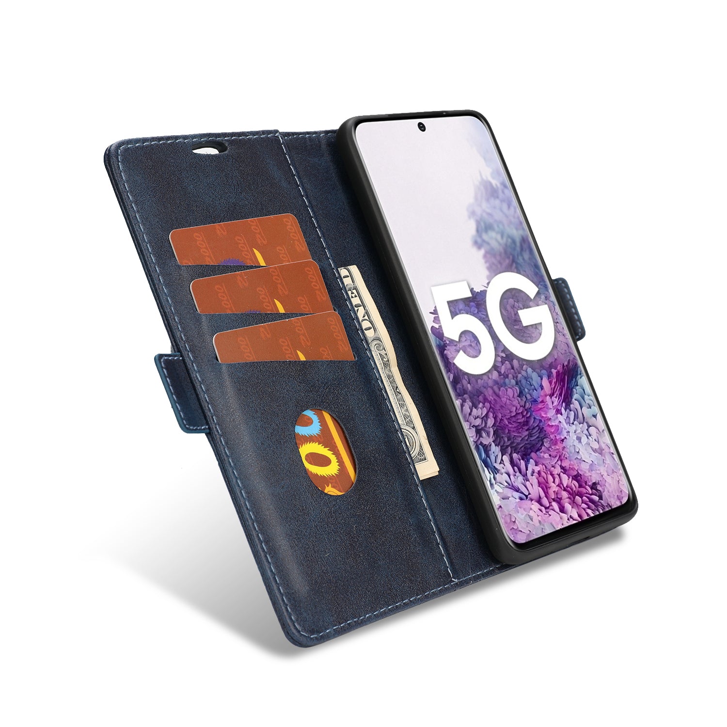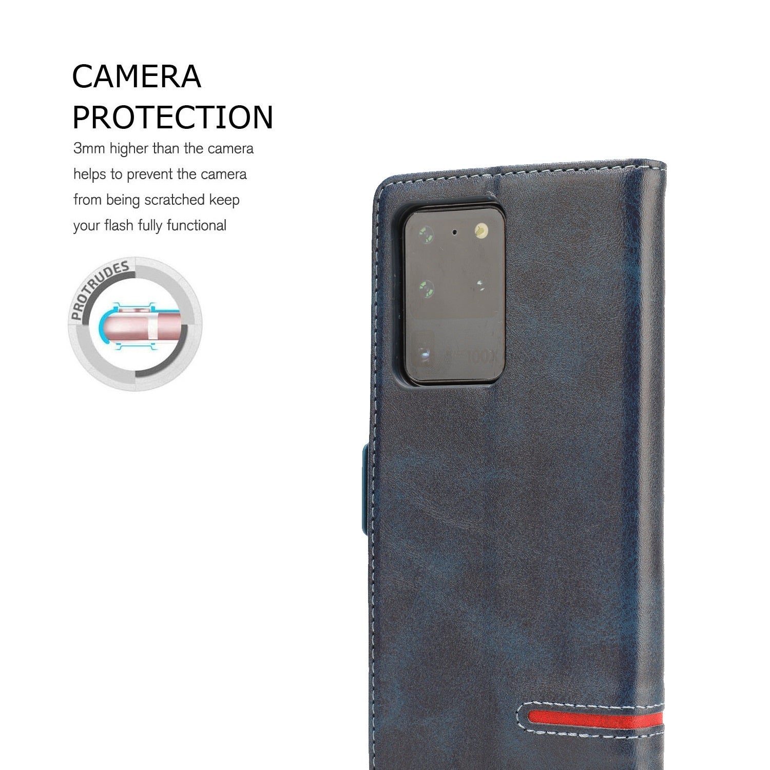 PU Leather Wallet Magnetic Mobile Phone Shell for Samsung Galaxy S20 Ultra - Blue