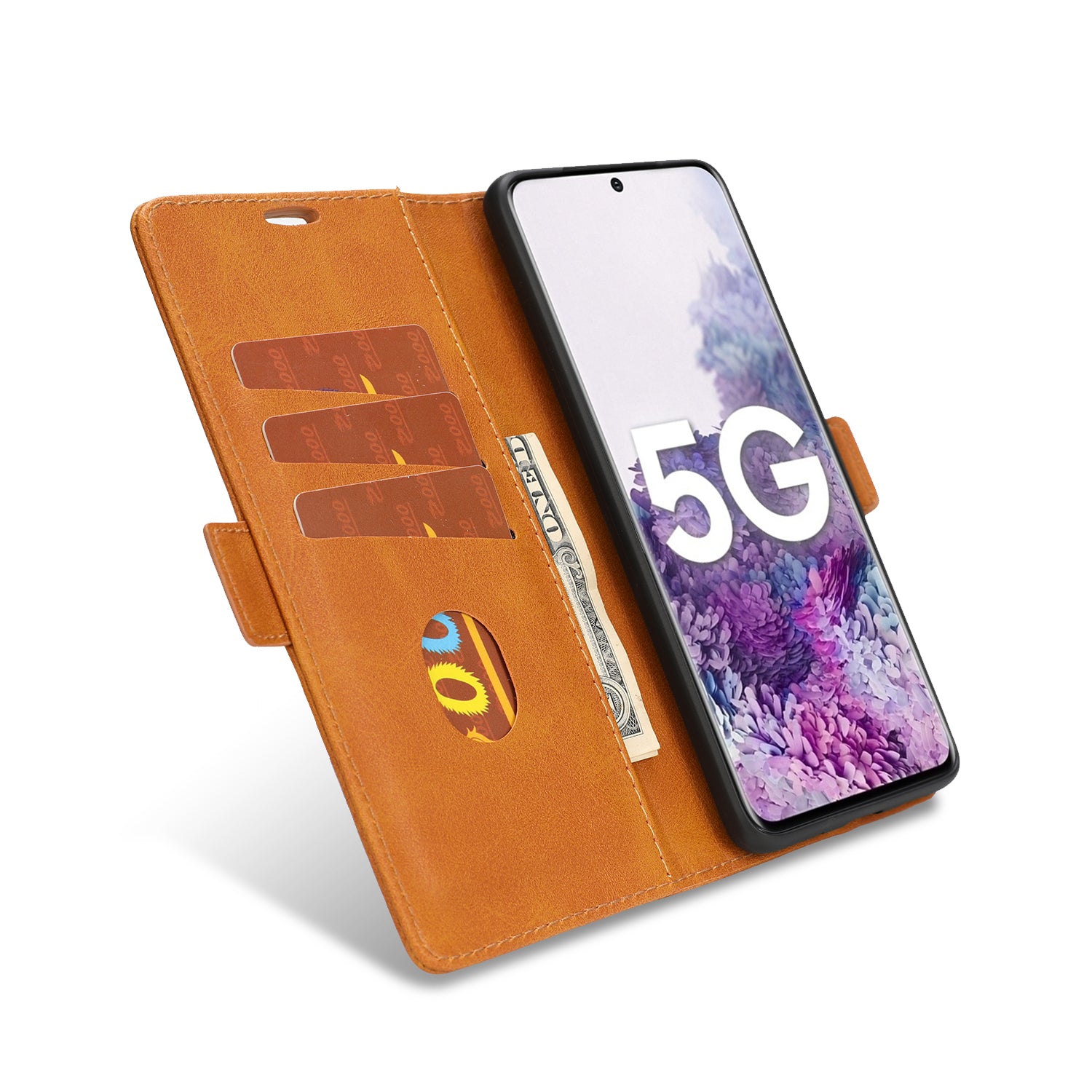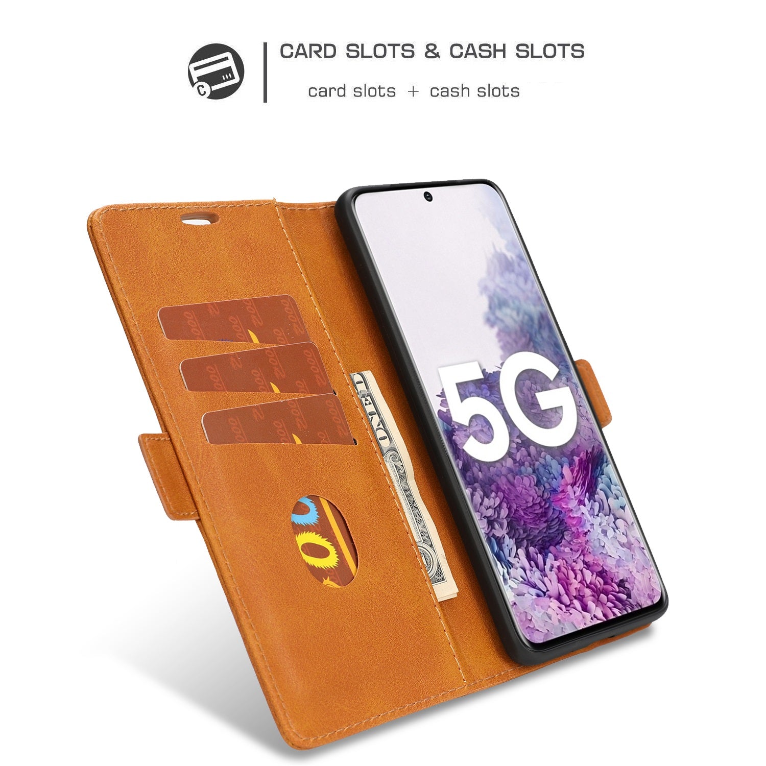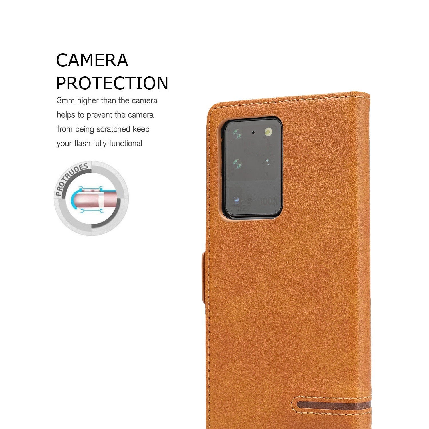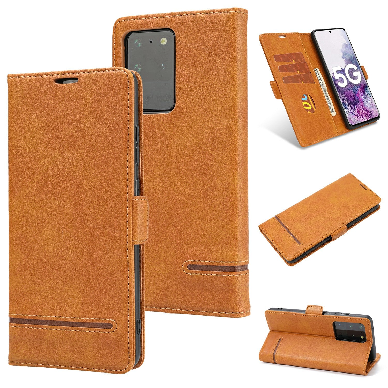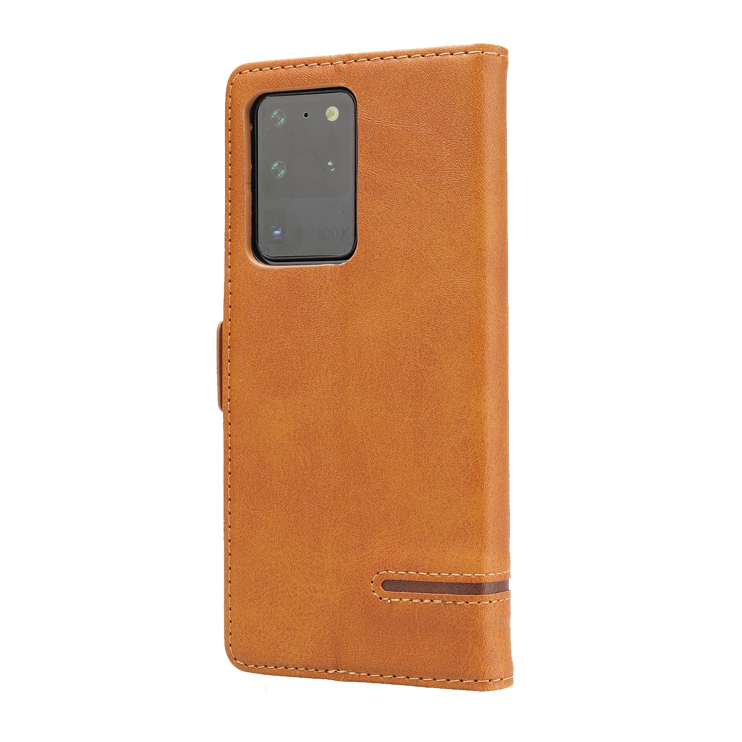 PU Leather Wallet Magnetic Mobile Phone Shell for Samsung Galaxy S20 Ultra - Brown