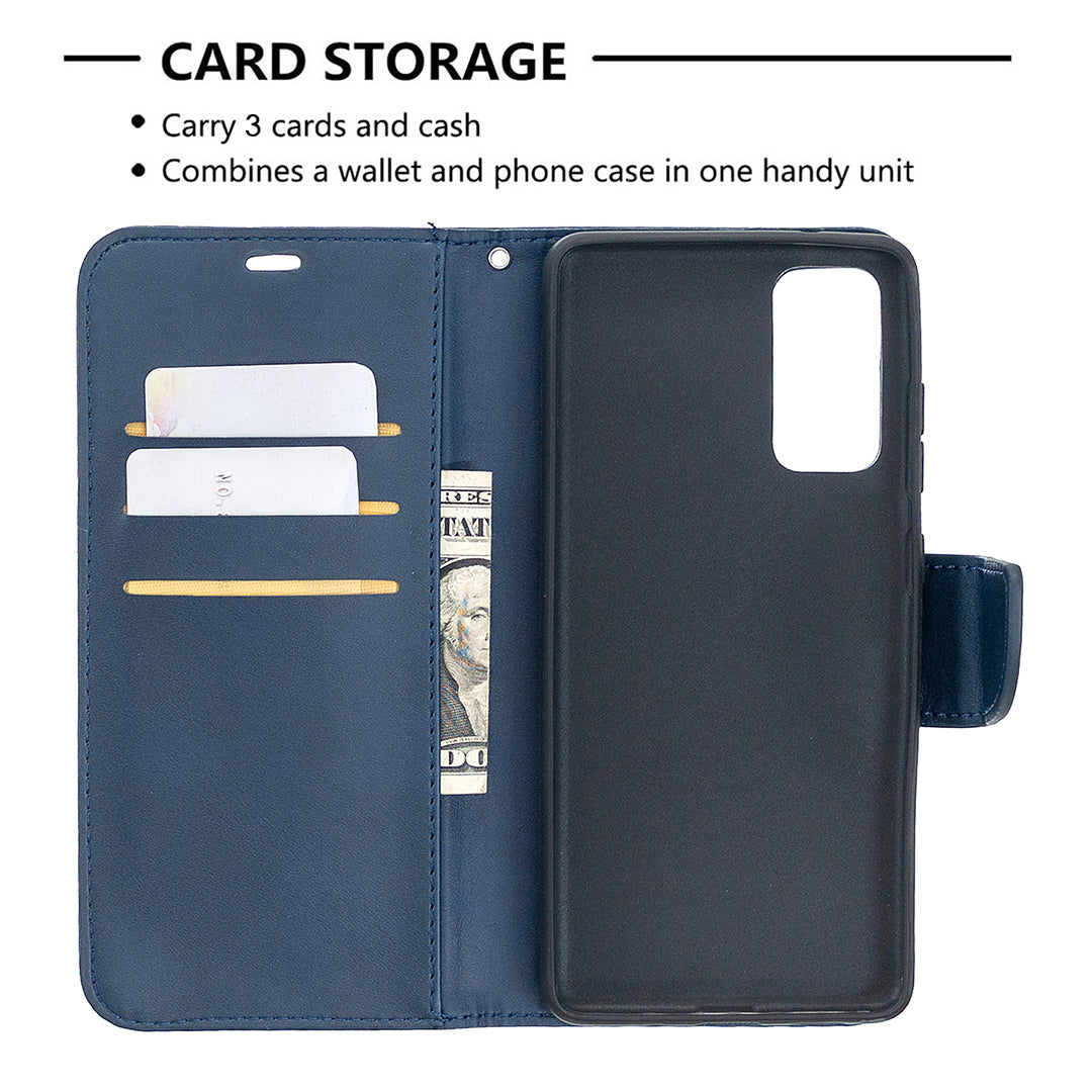 PU Leather Wallet Stand Phone Case for Samsung Galaxy S20 FE 4G/FE 5G/S20 Lite/S20 FE 2022 - Blue