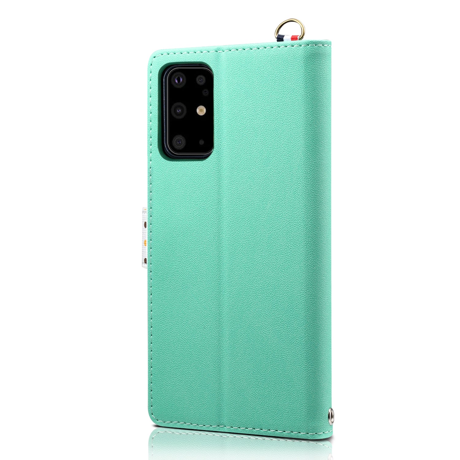 Retro Dots Decor Leather Phone Cover Shell with Lanyard for Samsung Galaxy S20 Plus / S20 Plus 5G - Green