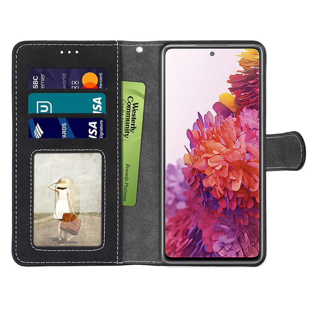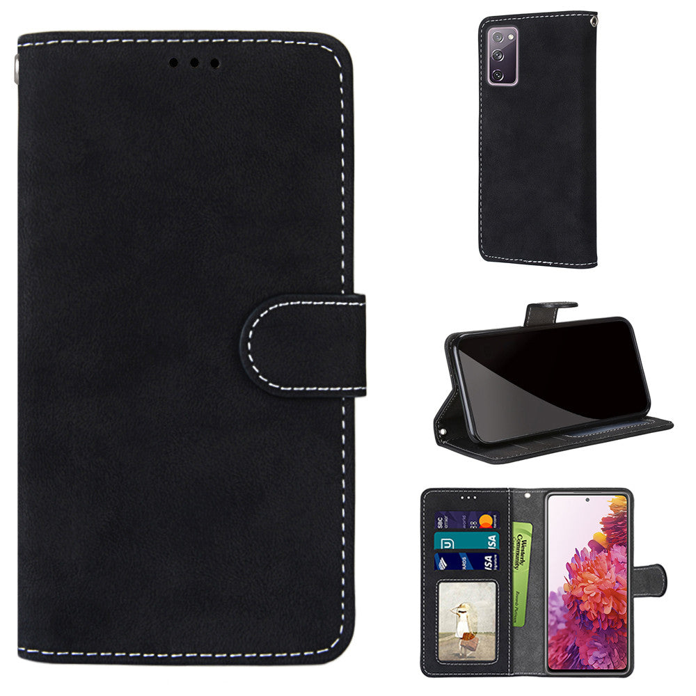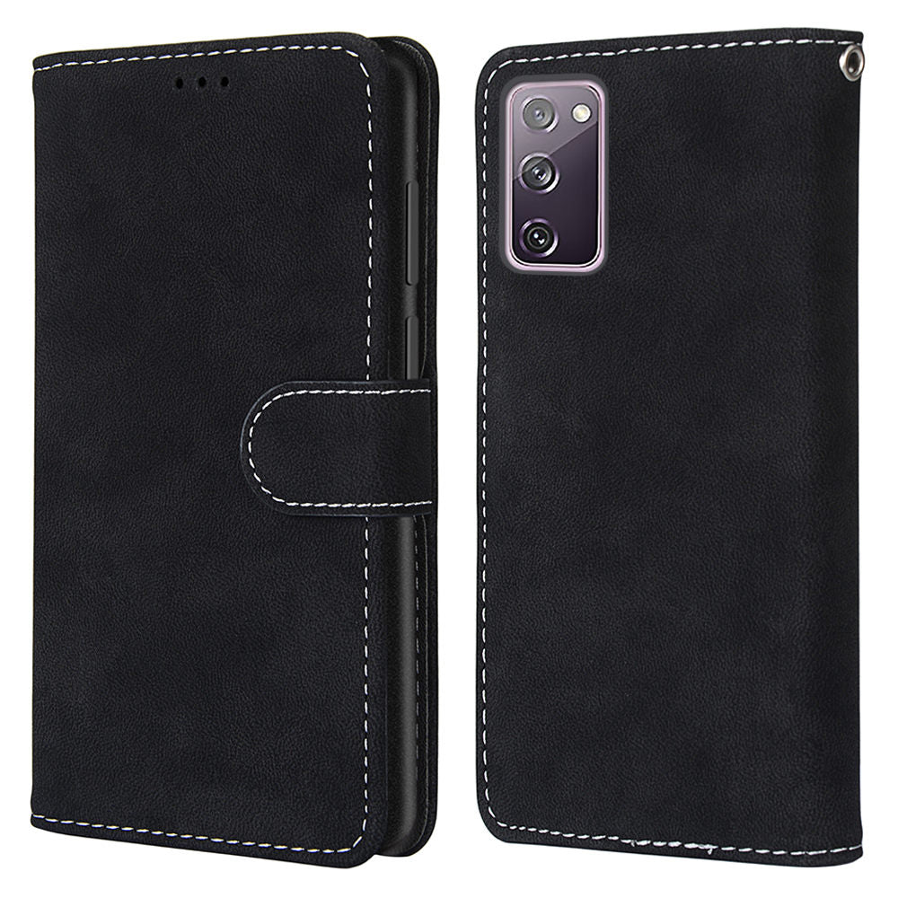 Retro Frosted Surface Wallet Leather Stand Phone Case for Samsung Galaxy S20 FE 4G/FE 5G/S20 Lite - Black