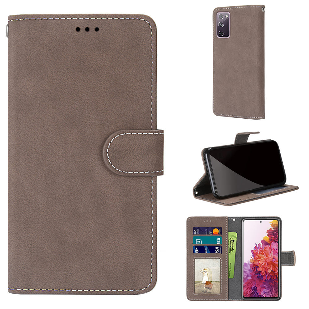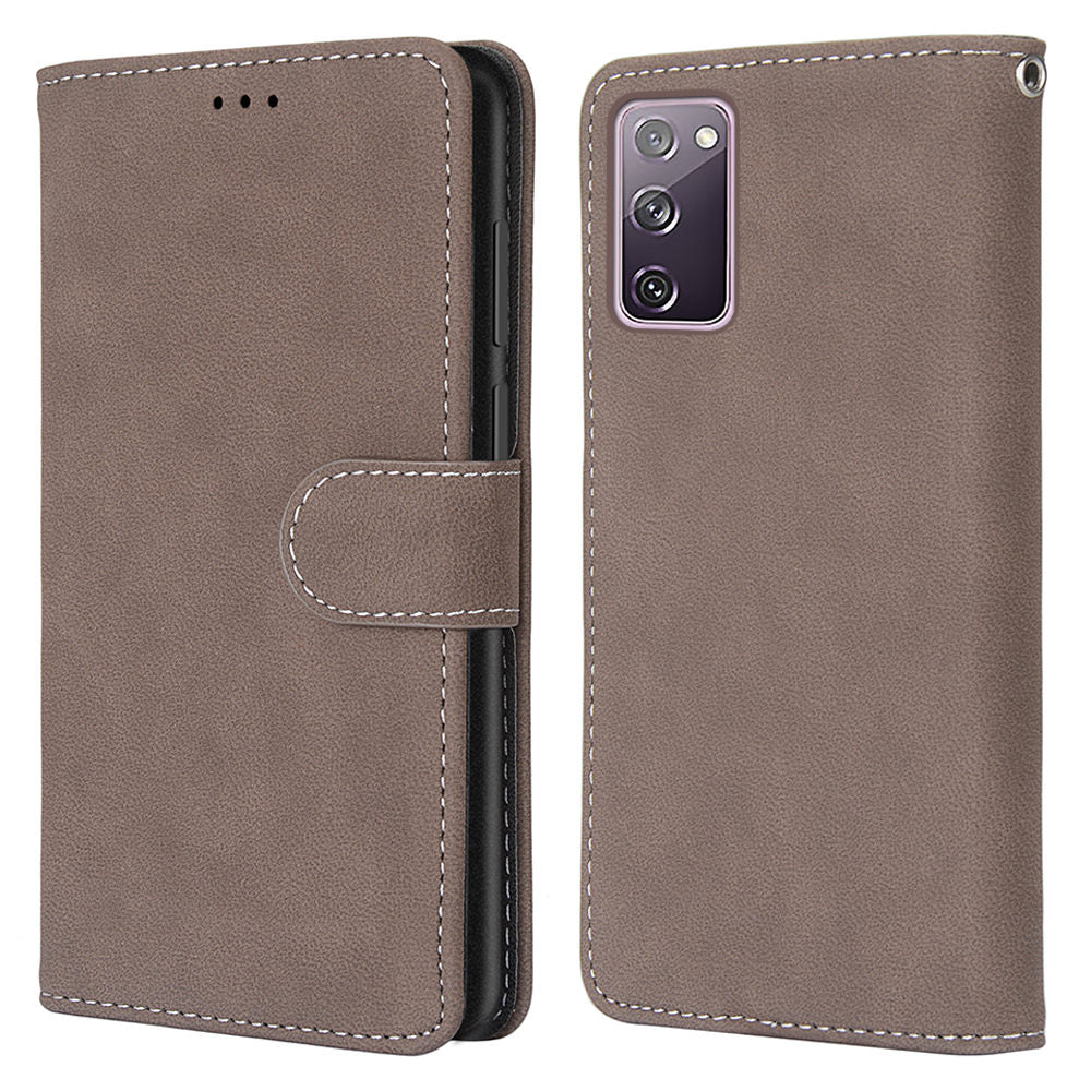 Retro Frosted Surface Wallet Leather Stand Phone Case for Samsung Galaxy S20 FE 4G/FE 5G/S20 Lite - Coffee