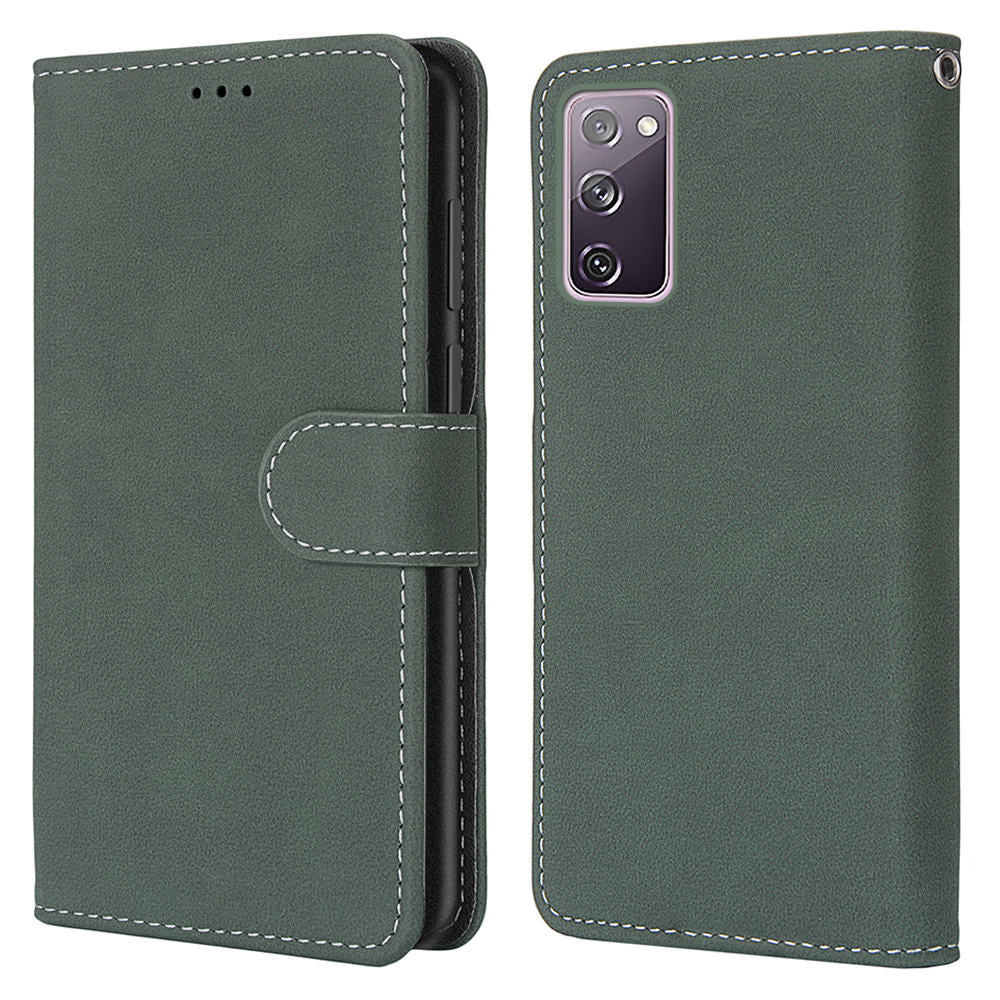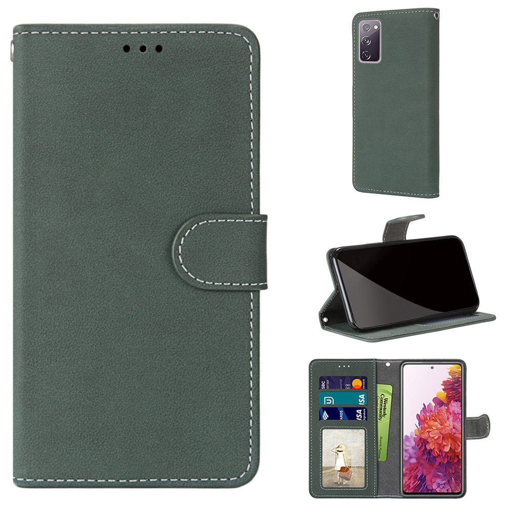 Retro Frosted Surface Wallet Leather Stand Phone Case for Samsung Galaxy S20 FE 4G/FE 5G/S20 Lite - Green