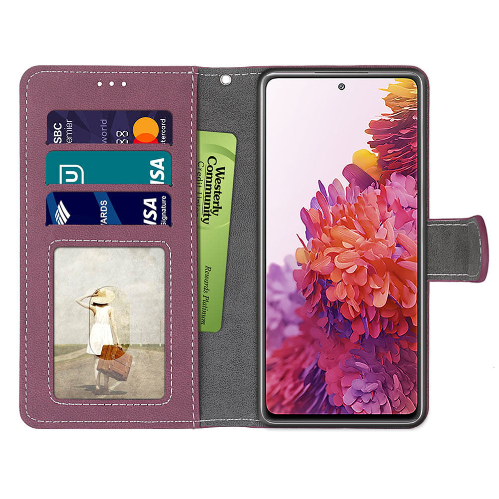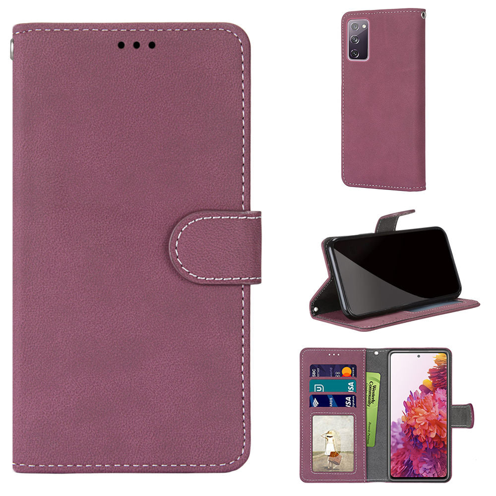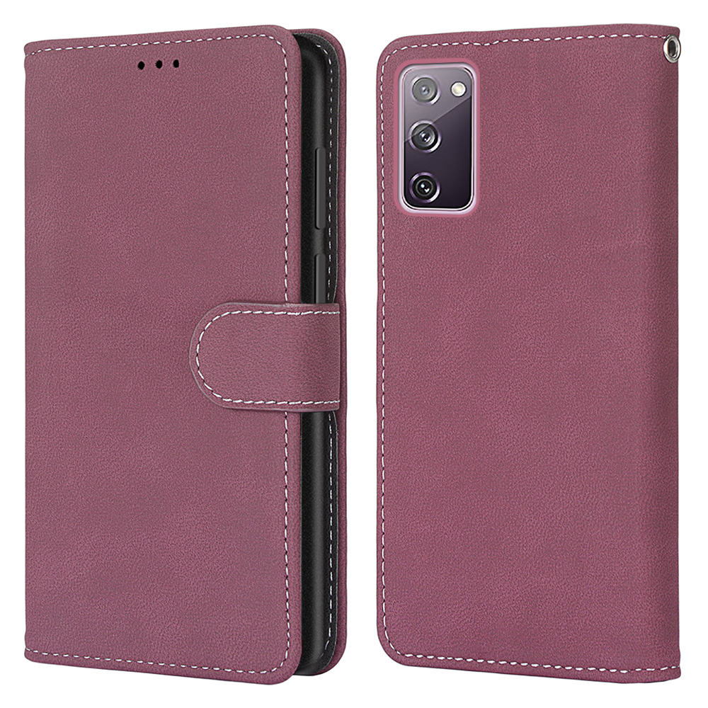 Retro Frosted Surface Wallet Leather Stand Phone Case for Samsung Galaxy S20 FE 4G/FE 5G/S20 Lite - Wine Red