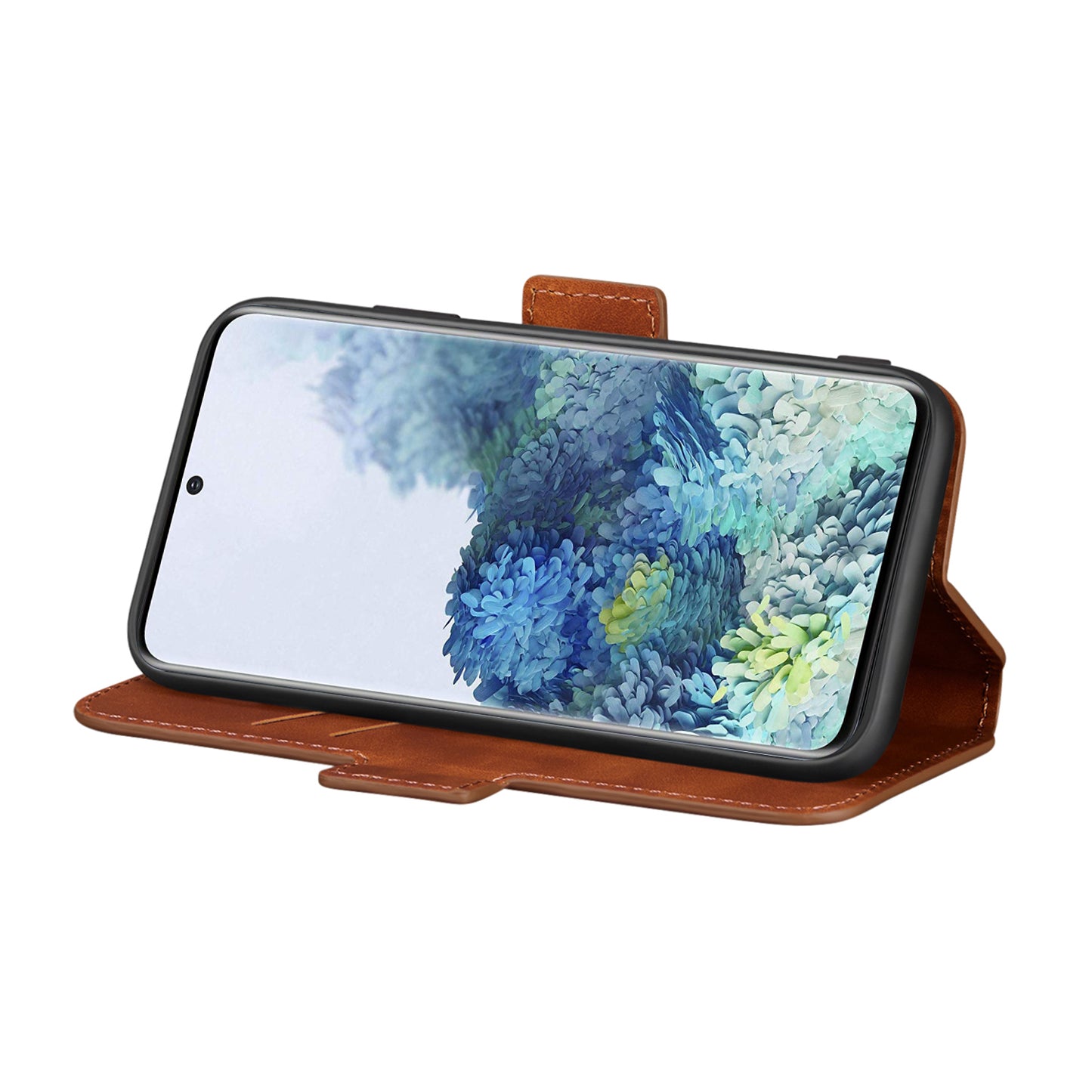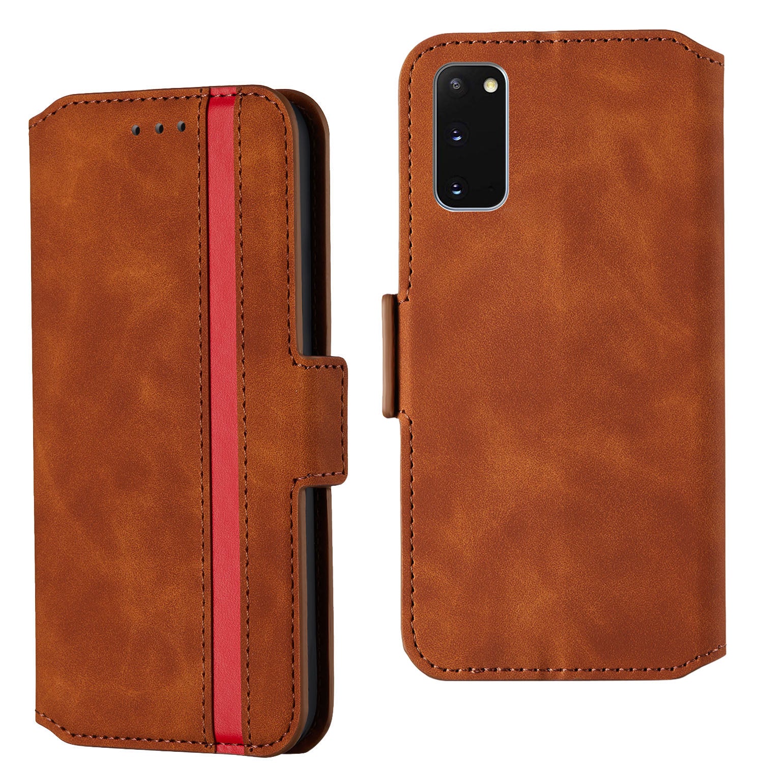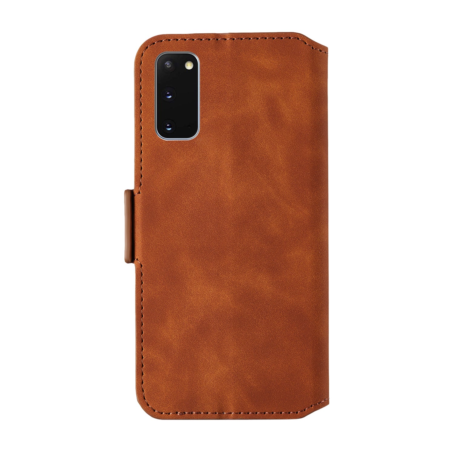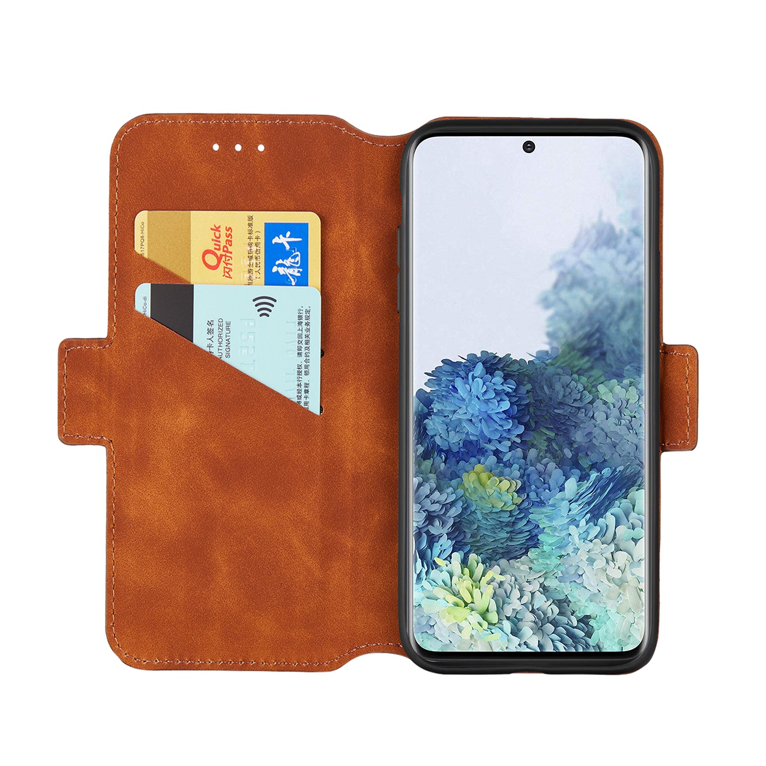 Retro Style Splicing Matte Shell Leather Phone Case with Card Slots for Samsung Galaxy S20 4G/S20 5G - Brown