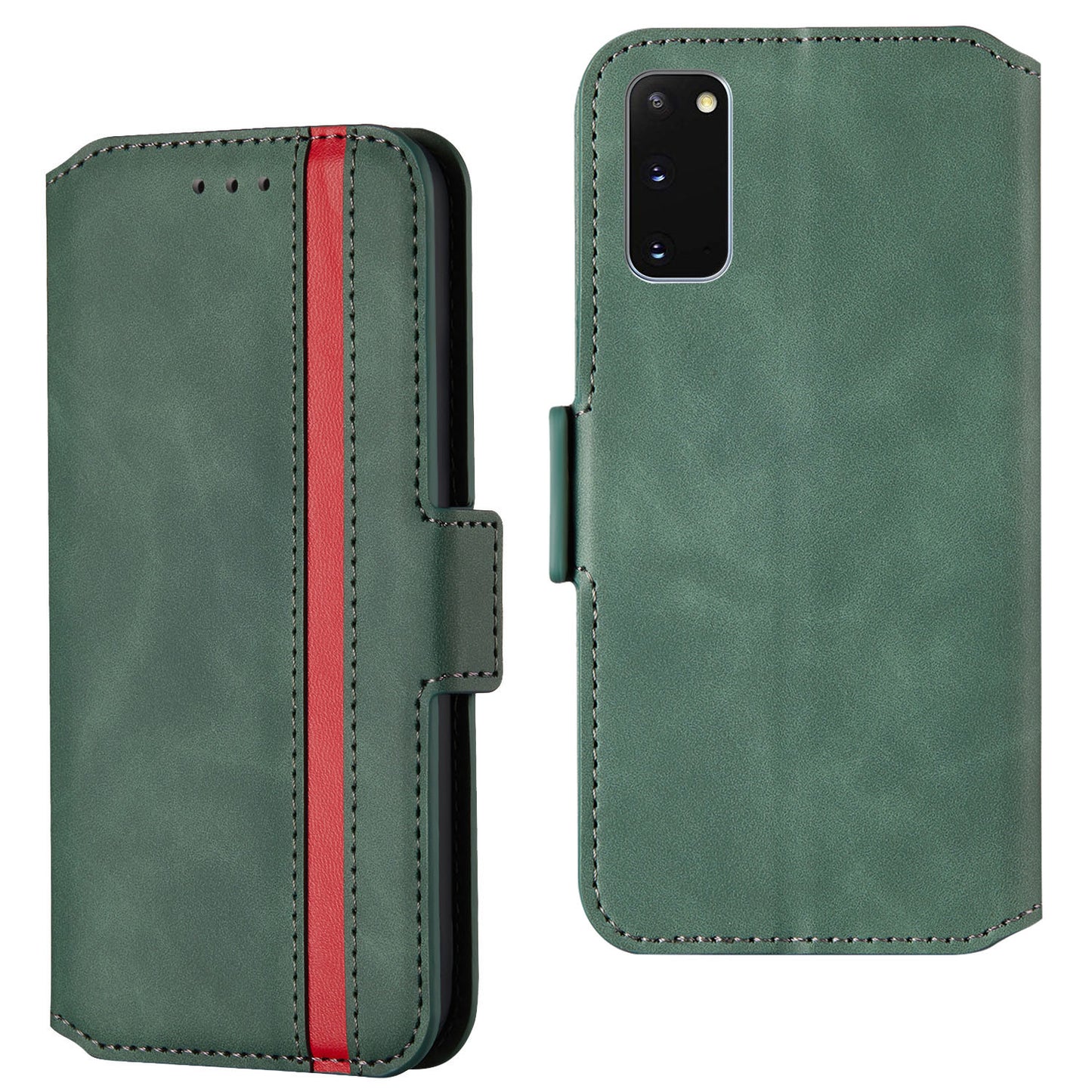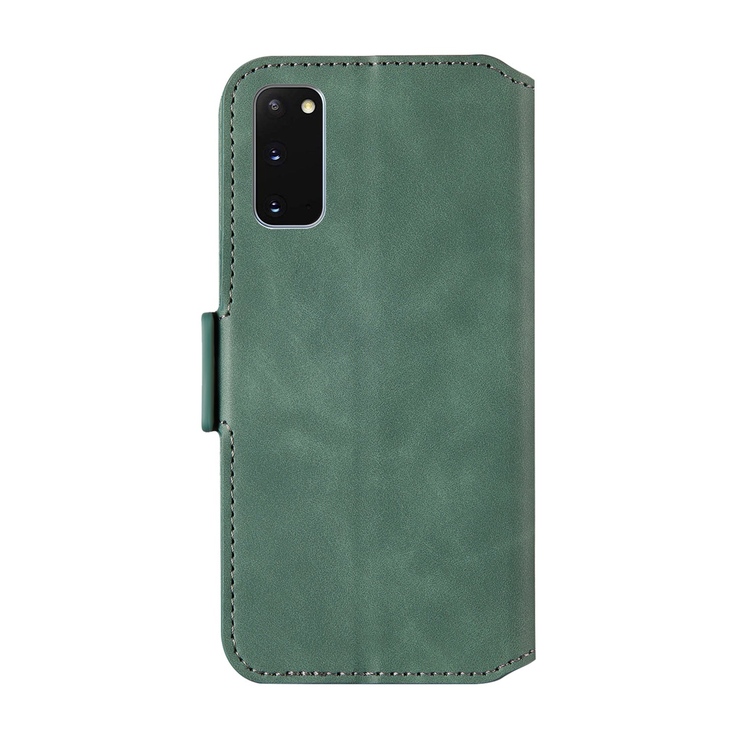 Retro Style Splicing Matte Shell Leather Phone Case with Card Slots for Samsung Galaxy S20 4G/S20 5G - Green