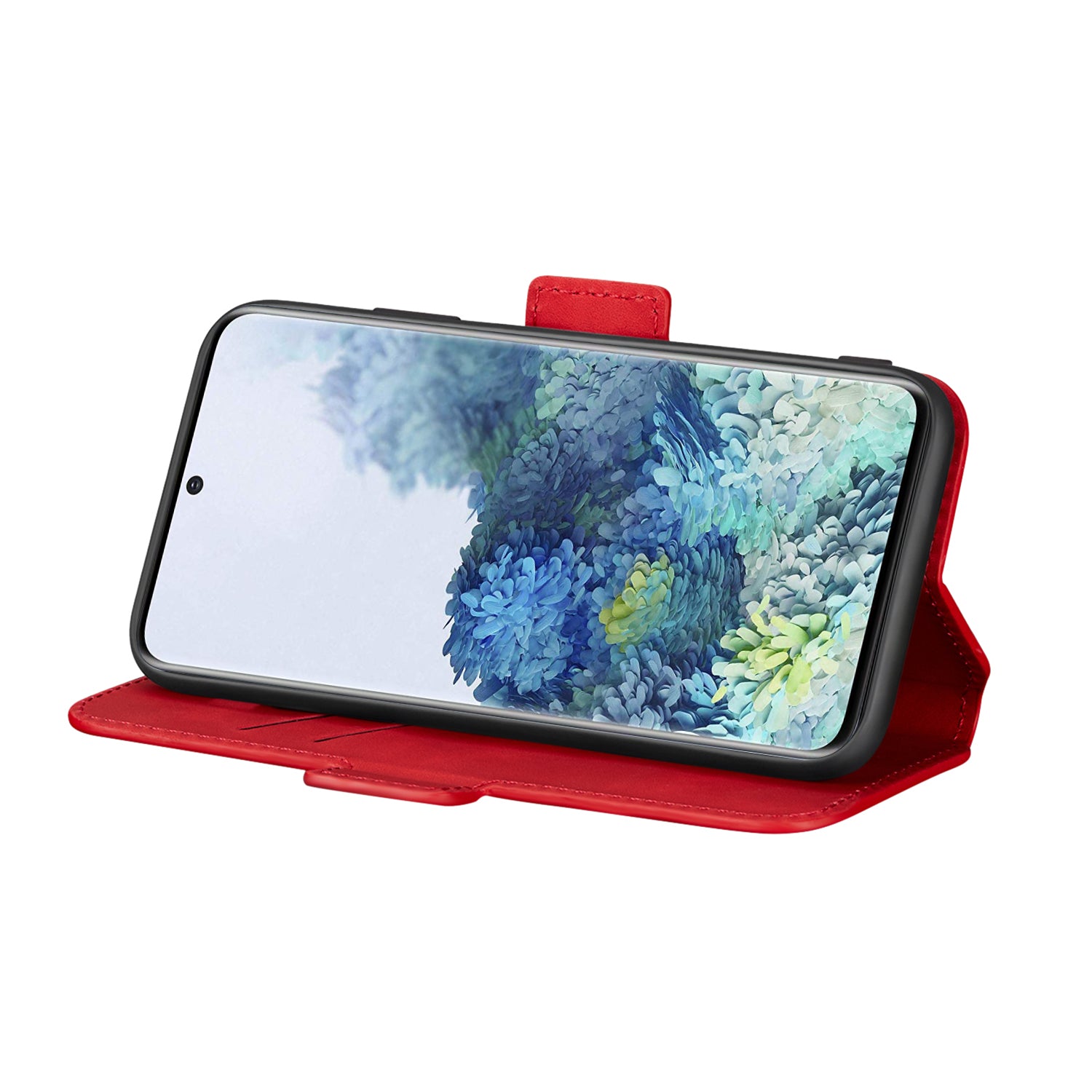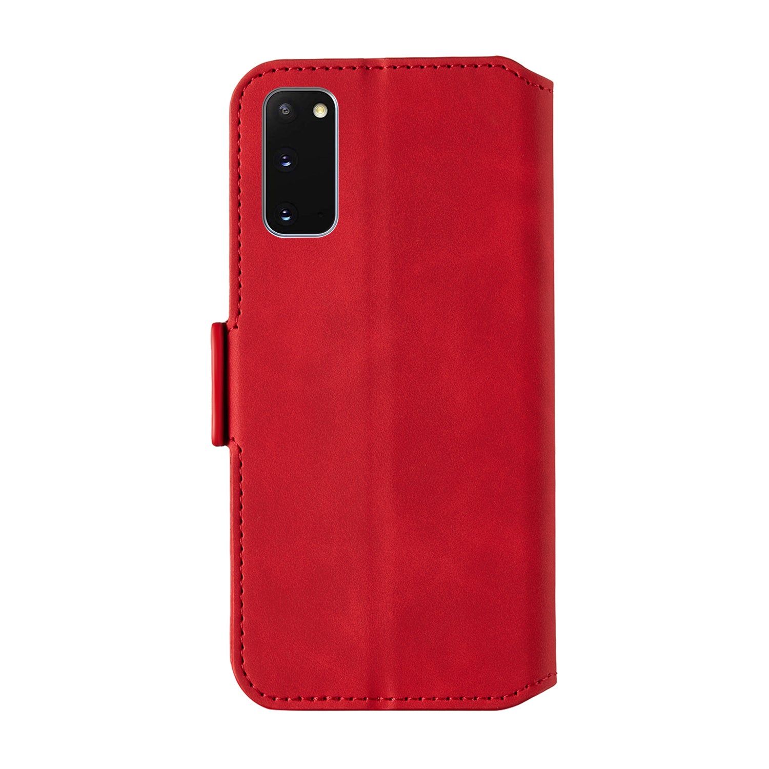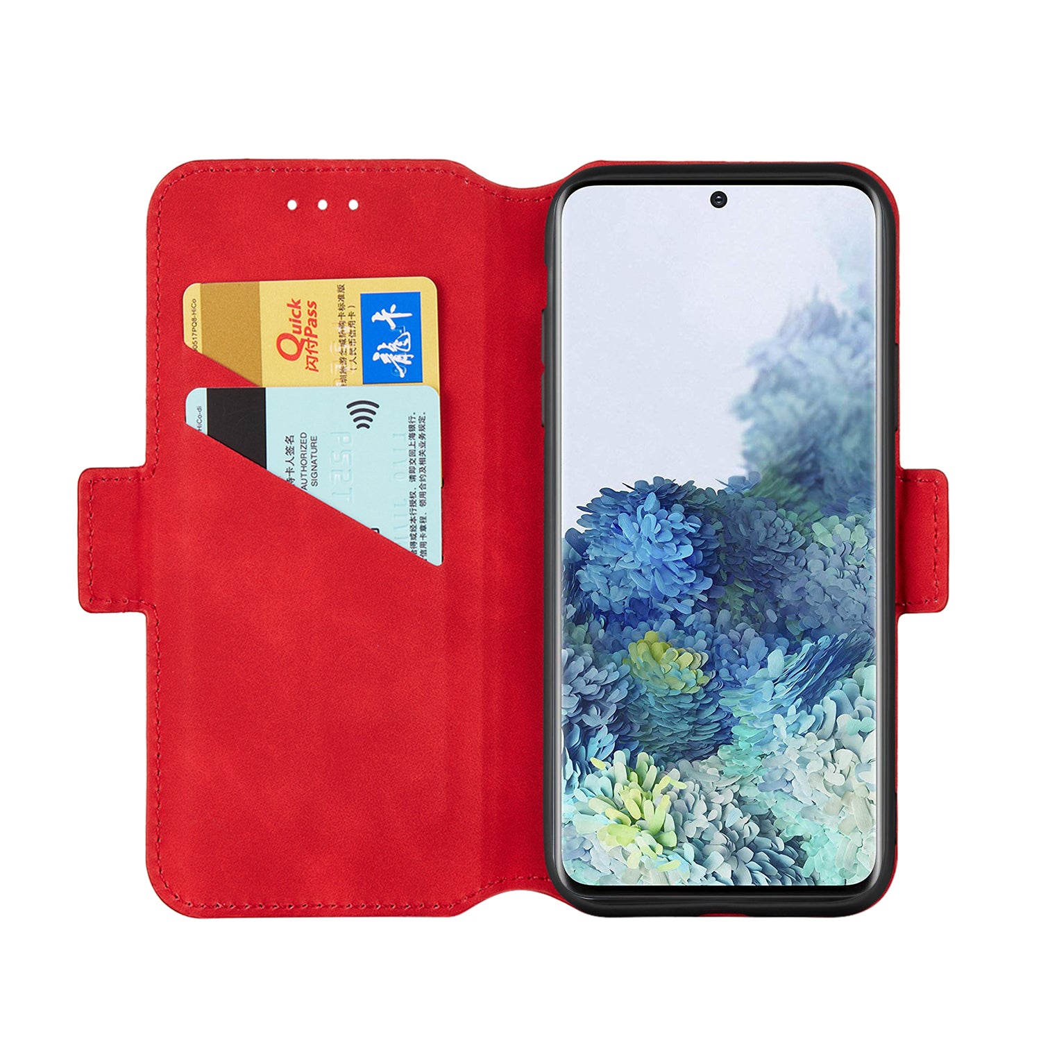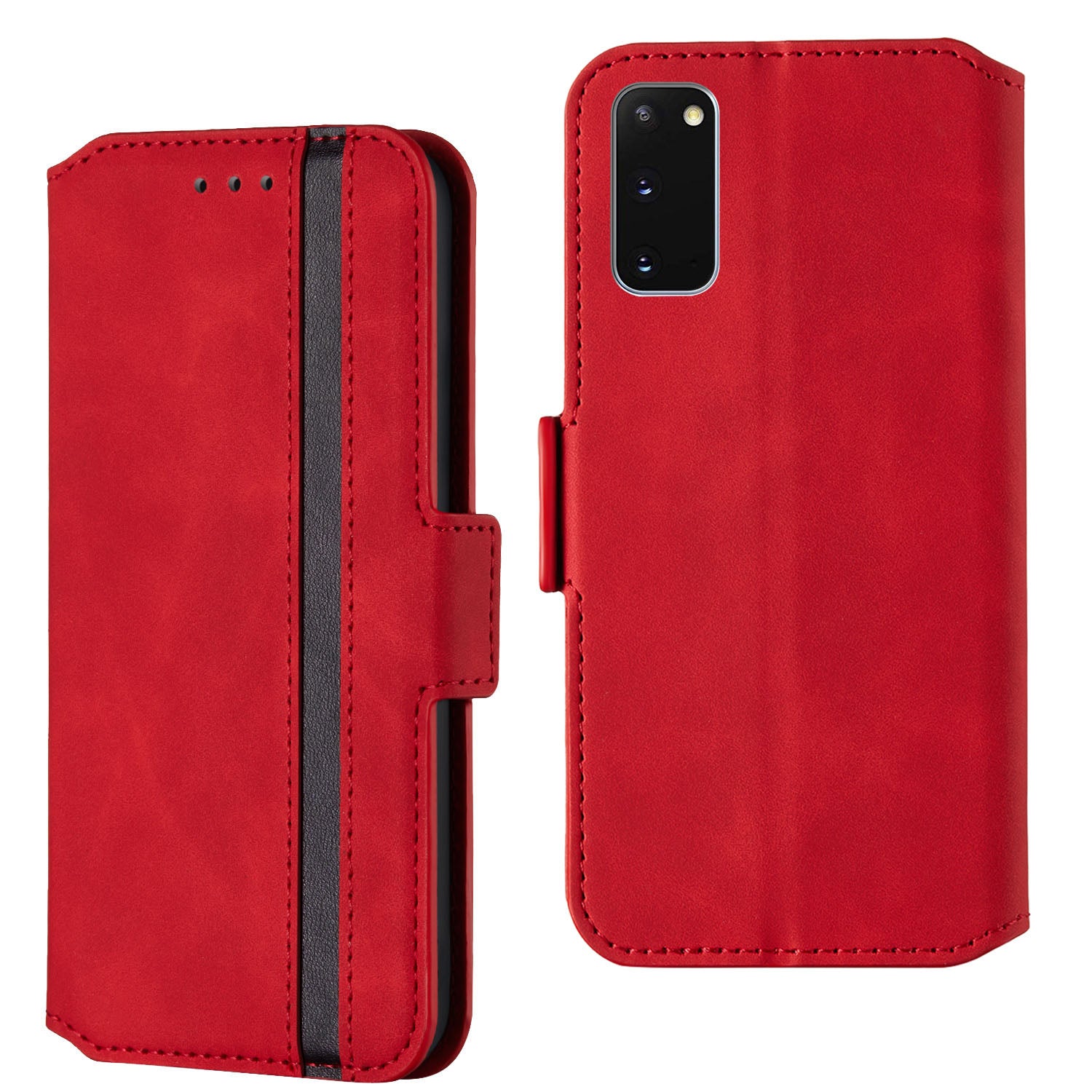 Retro Style Splicing Matte Shell Leather Phone Case with Card Slots for Samsung Galaxy S20 4G/S20 5G - Red