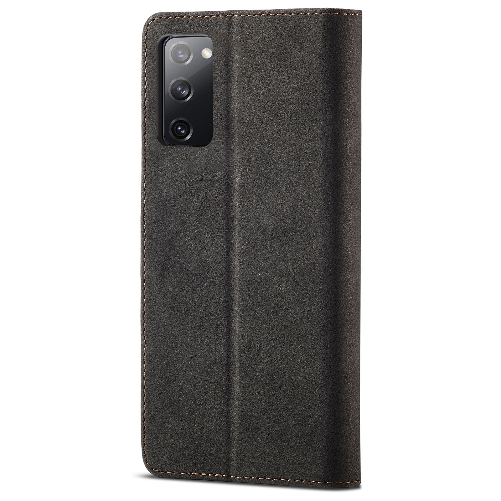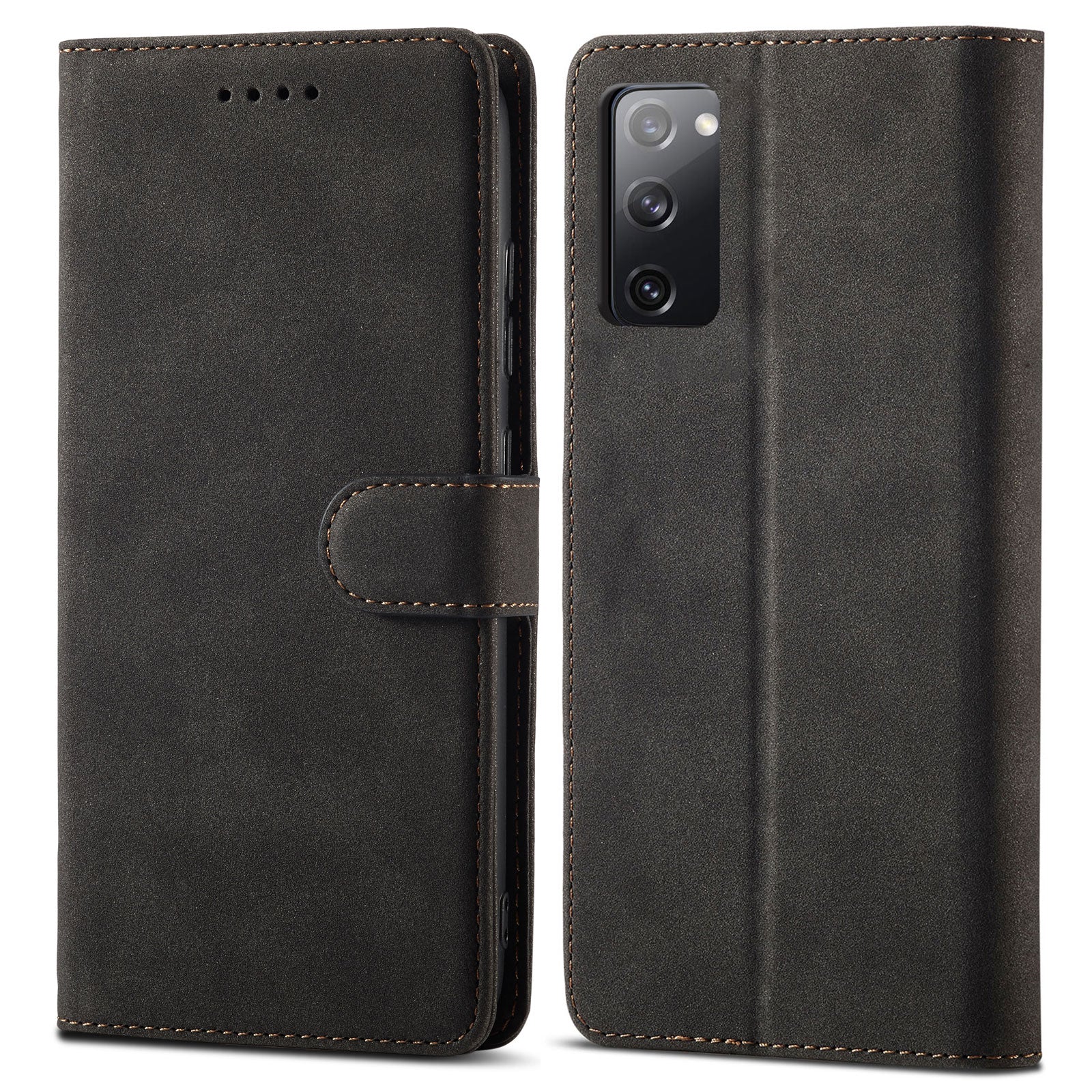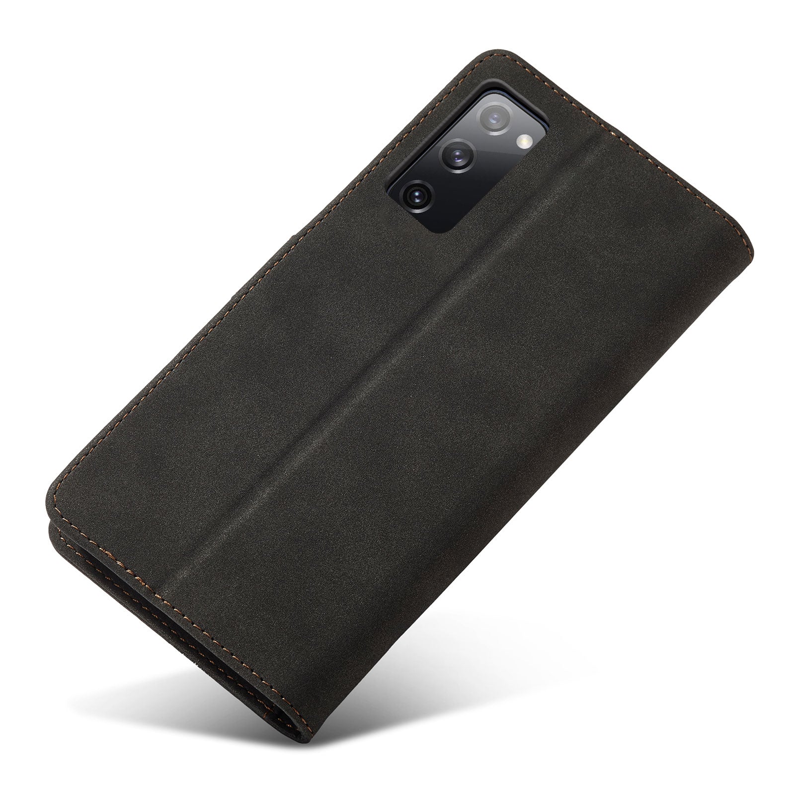 RFID Blocking Anti-scratch Matte Anti-fall PU Leather Stand Wallet Design Phone Case Cover for Samsung Galaxy S20 FE 2022/S20 FE/S20 FE 5G/S20 Lite - Black