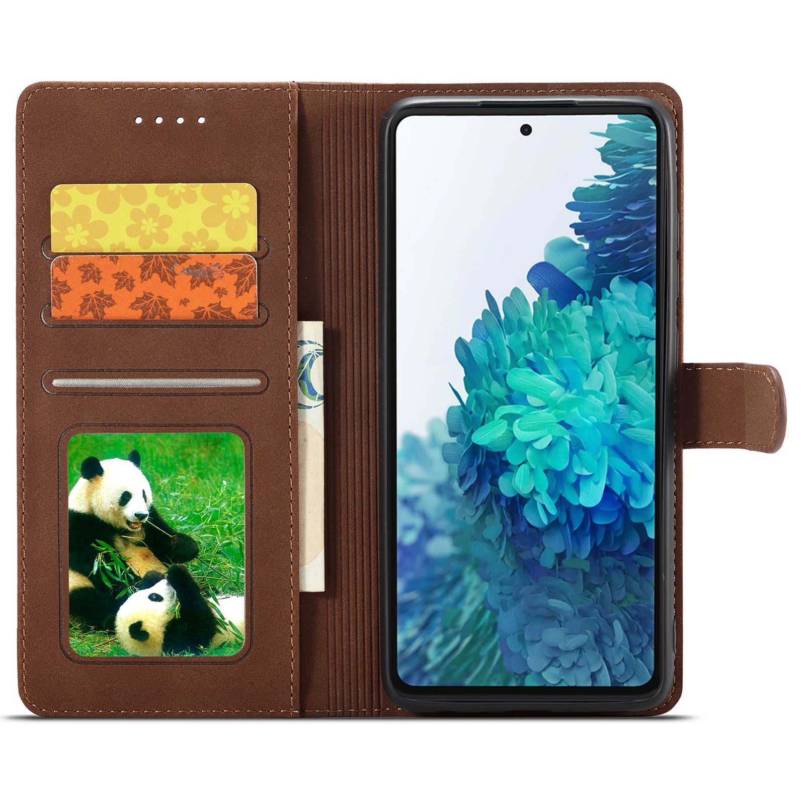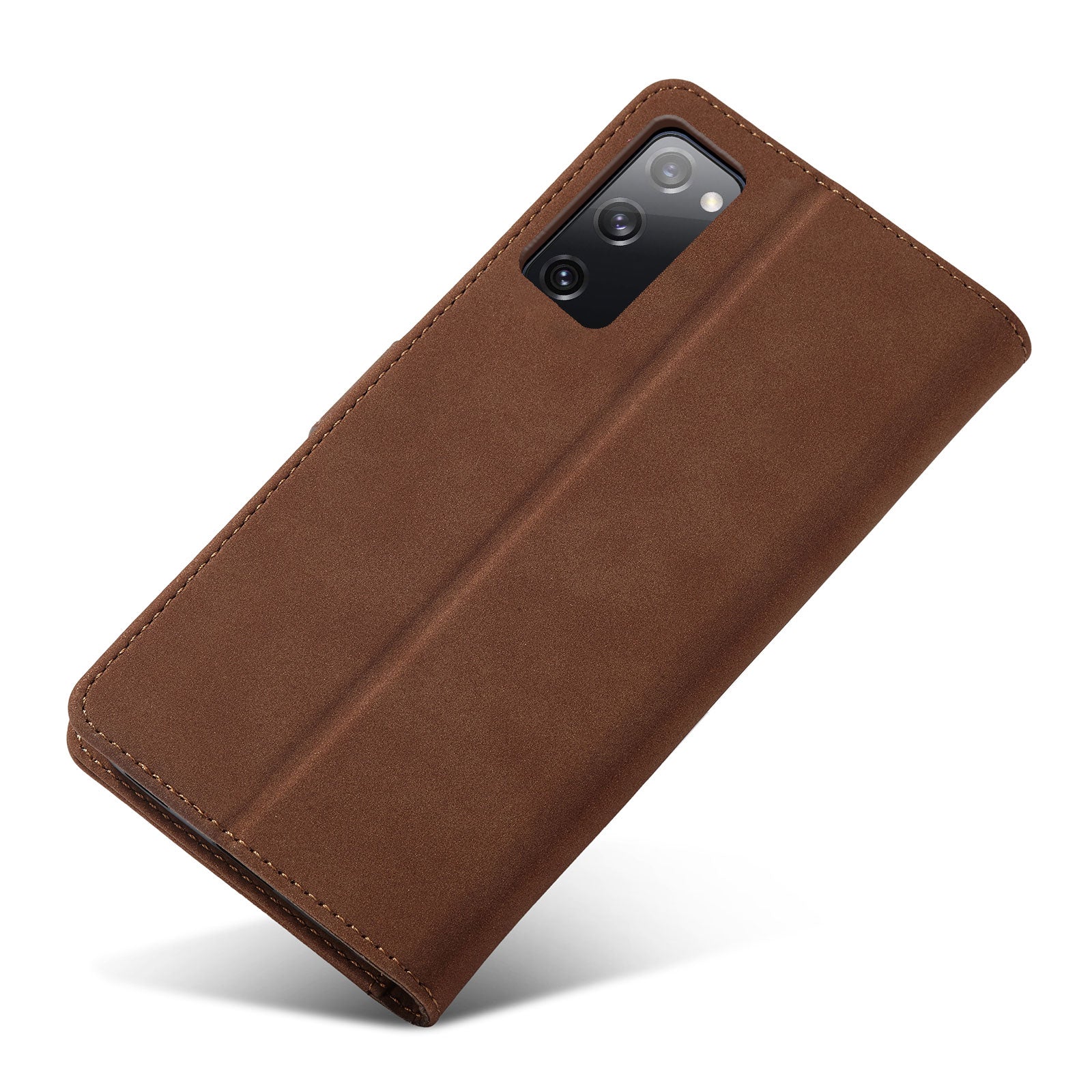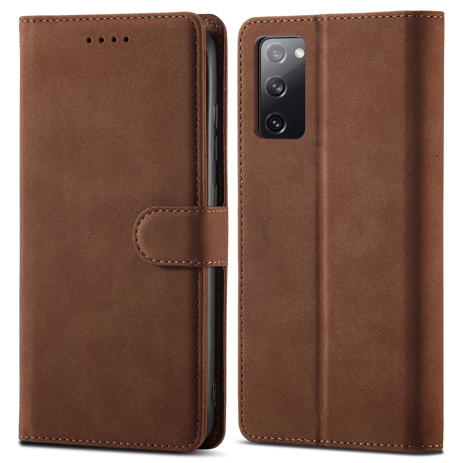 RFID Blocking Anti-scratch Matte Anti-fall PU Leather Stand Wallet Design Phone Case Cover for Samsung Galaxy S20 FE 2022/S20 FE/S20 FE 5G/S20 Lite - Dark Brown