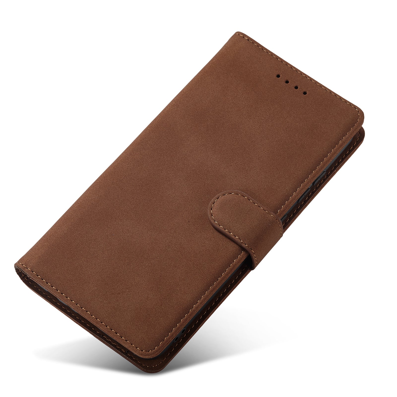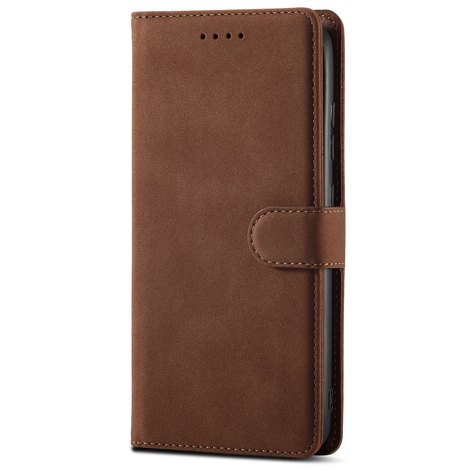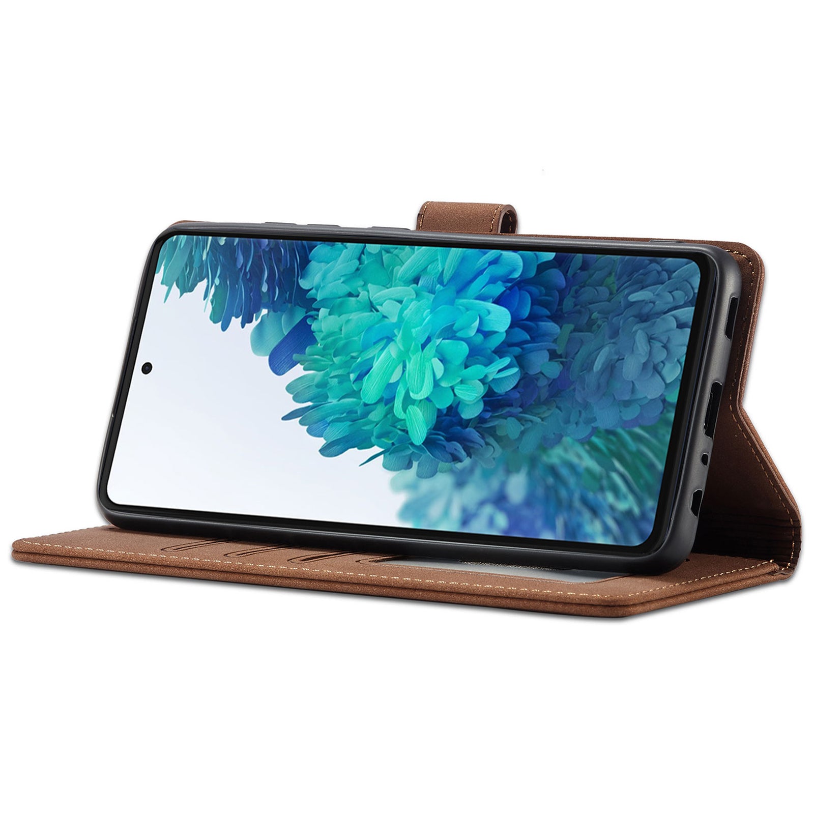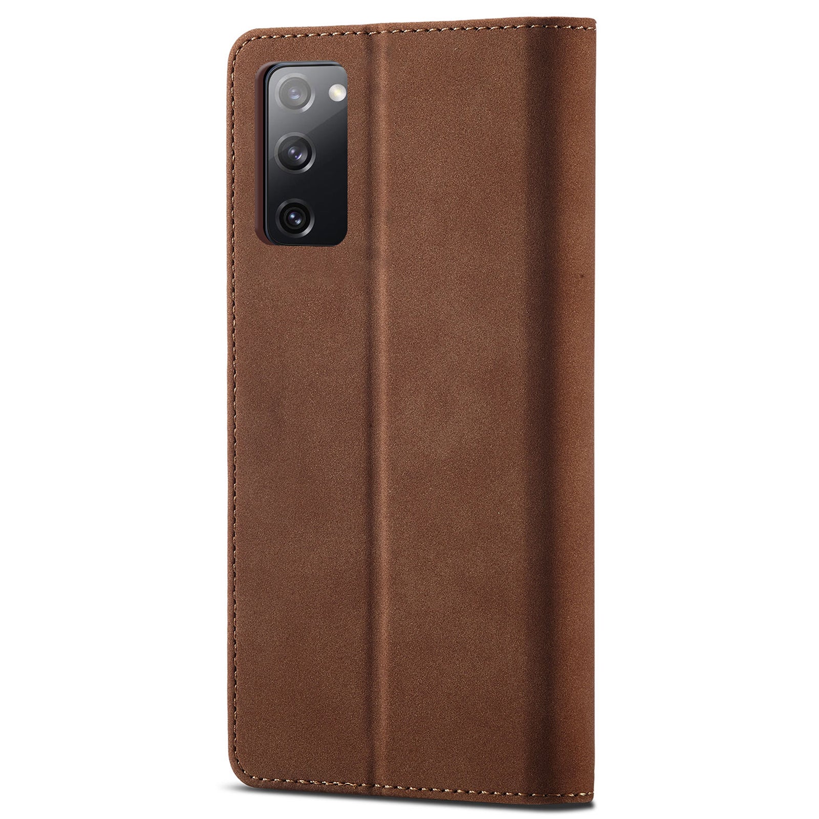 RFID Blocking Anti-scratch Matte Anti-fall PU Leather Stand Wallet Design Phone Case Cover for Samsung Galaxy S20 FE 2022/S20 FE/S20 FE 5G/S20 Lite - Dark Brown