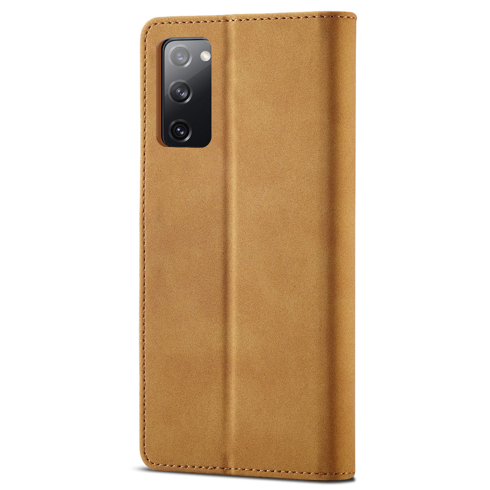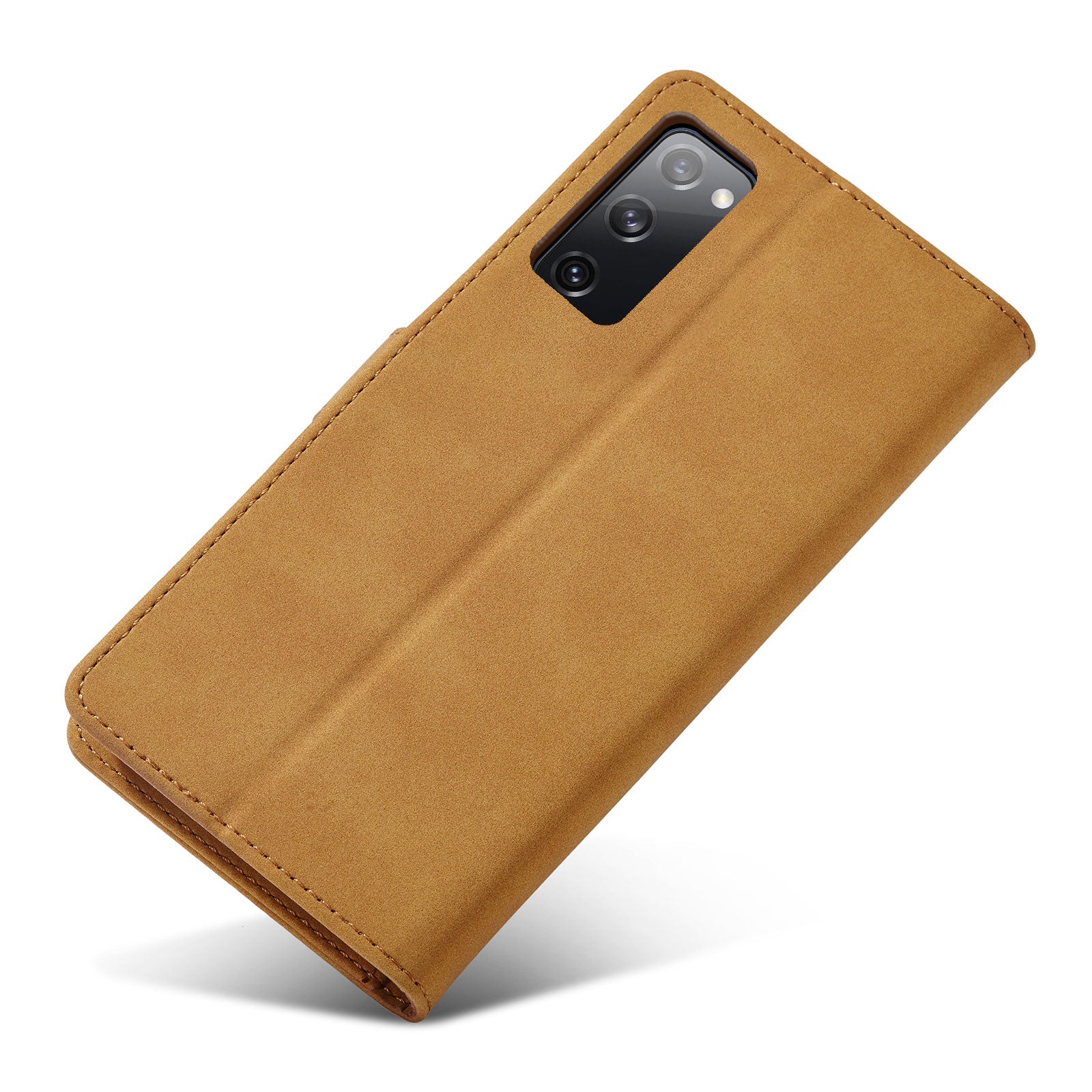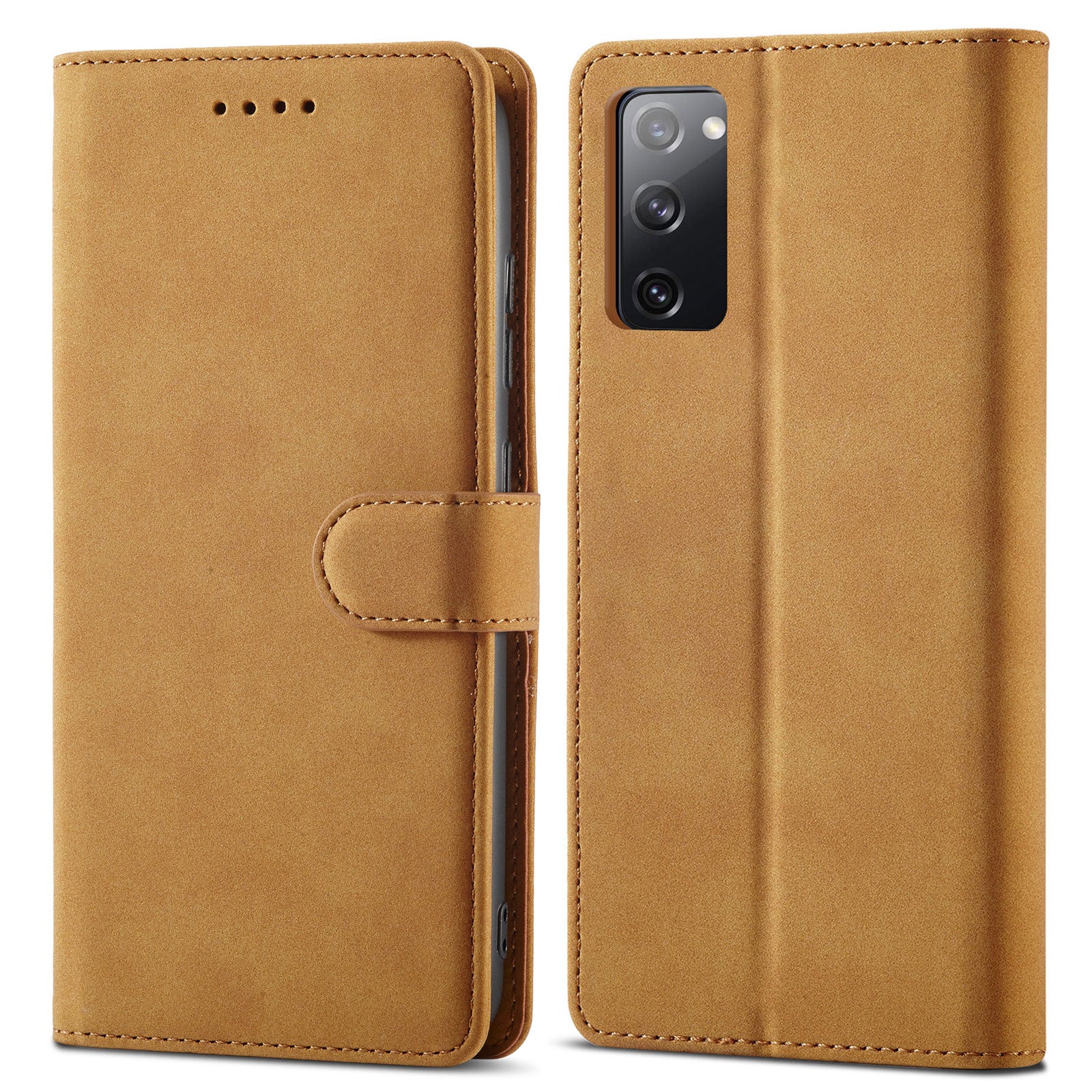 RFID Blocking Anti-scratch Matte Anti-fall PU Leather Stand Wallet Design Phone Case Cover for Samsung Galaxy S20 FE 2022/S20 FE/S20 FE 5G/S20 Lite - Light Brown