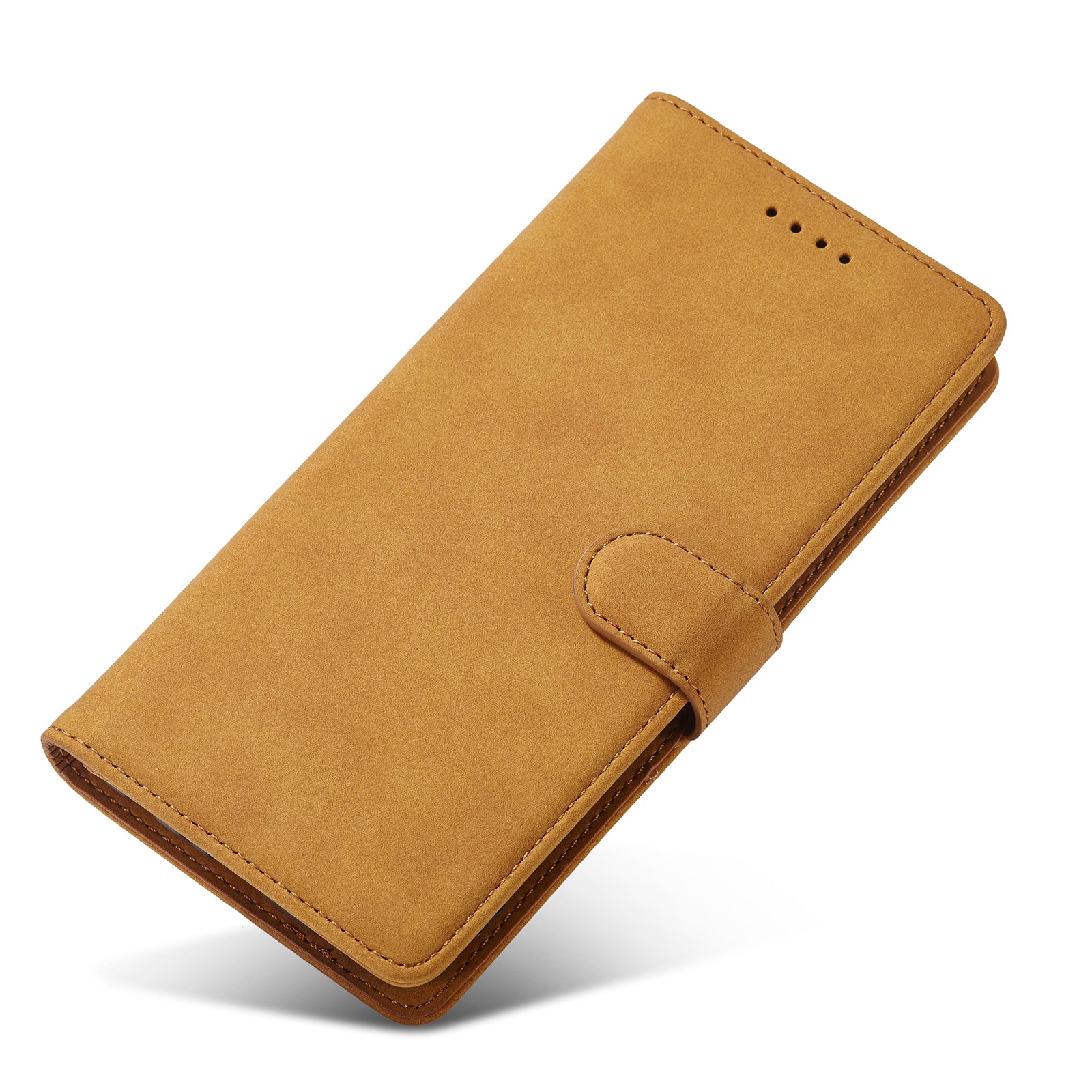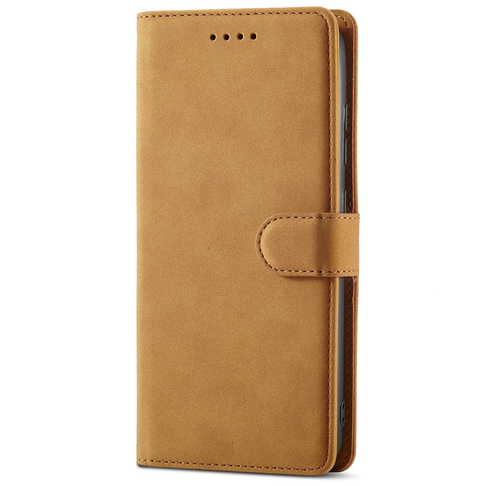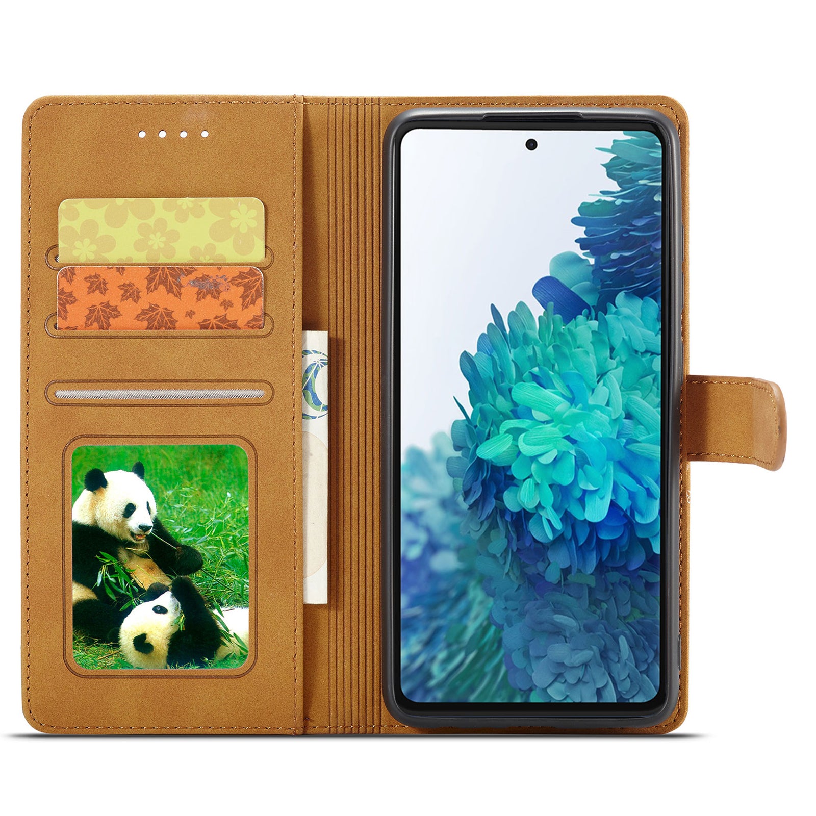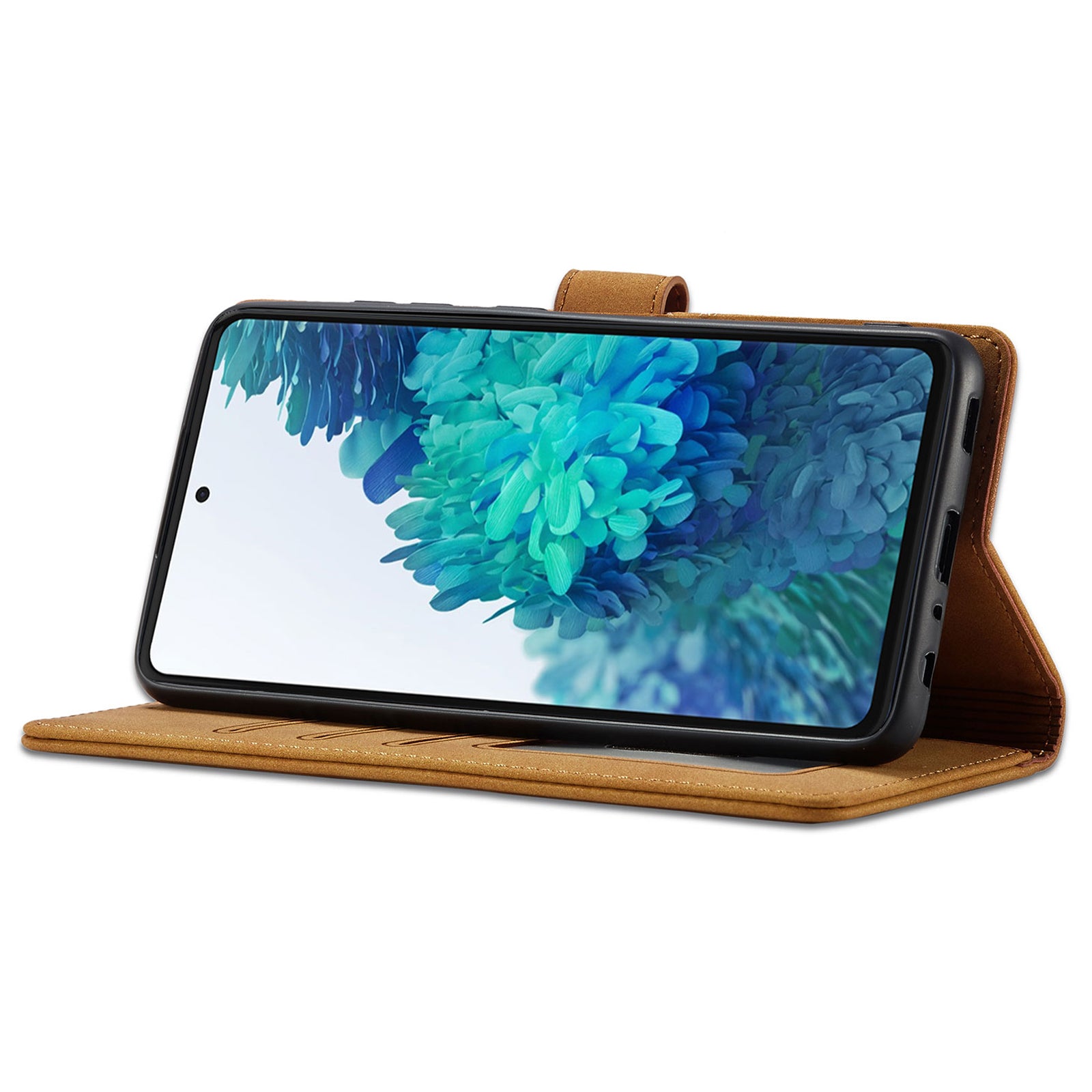 RFID Blocking Anti-scratch Matte Anti-fall PU Leather Stand Wallet Design Phone Case Cover for Samsung Galaxy S20 FE 2022/S20 FE/S20 FE 5G/S20 Lite - Light Brown