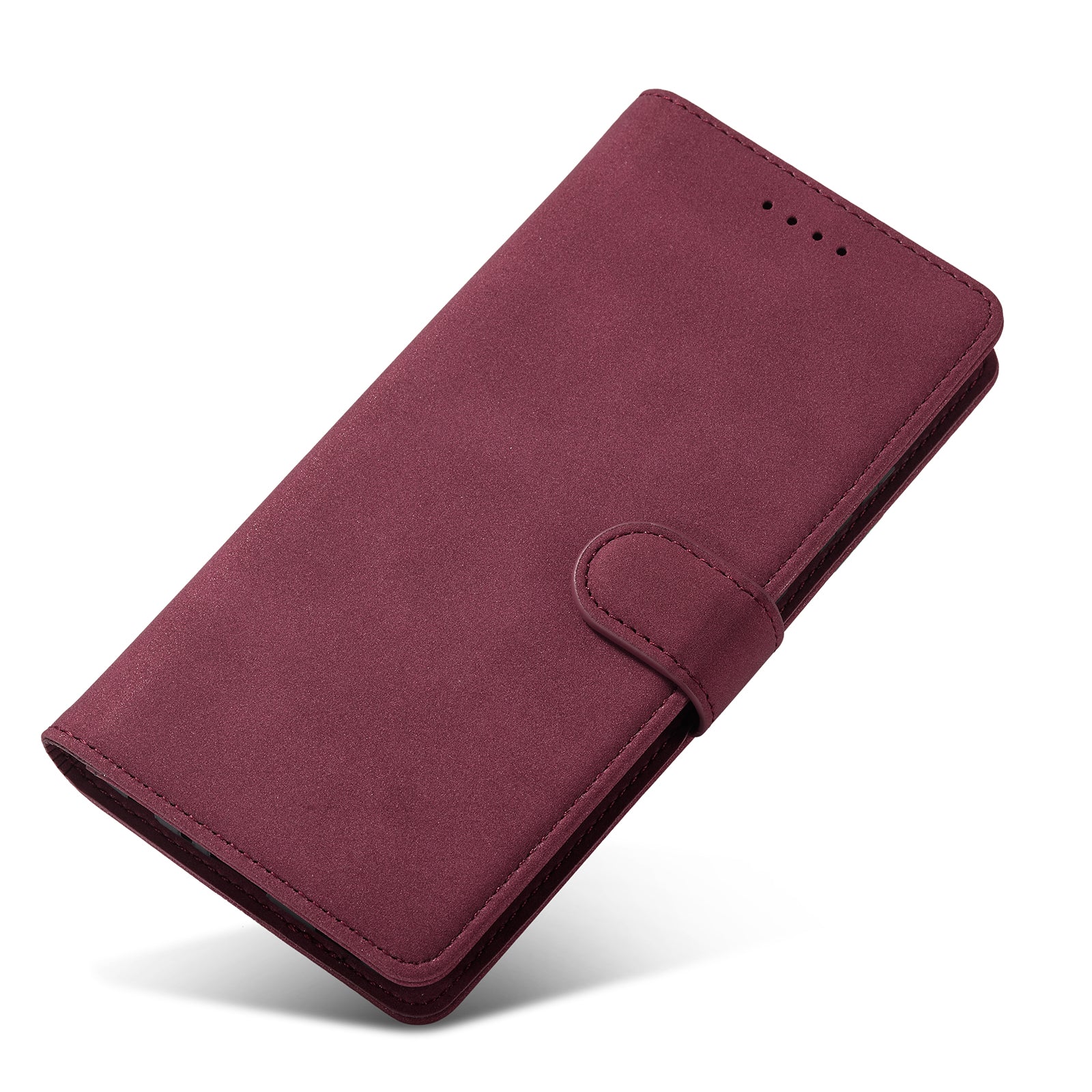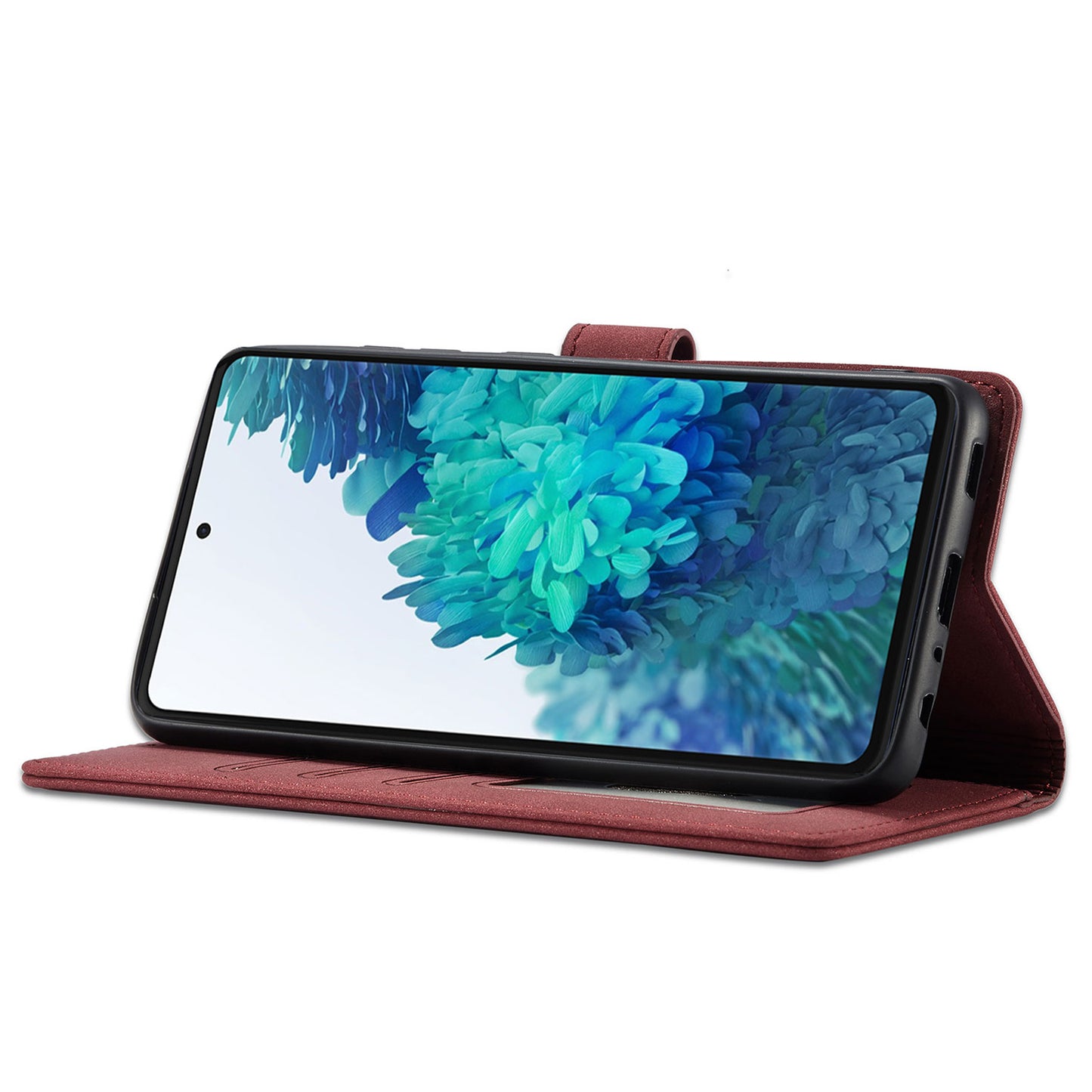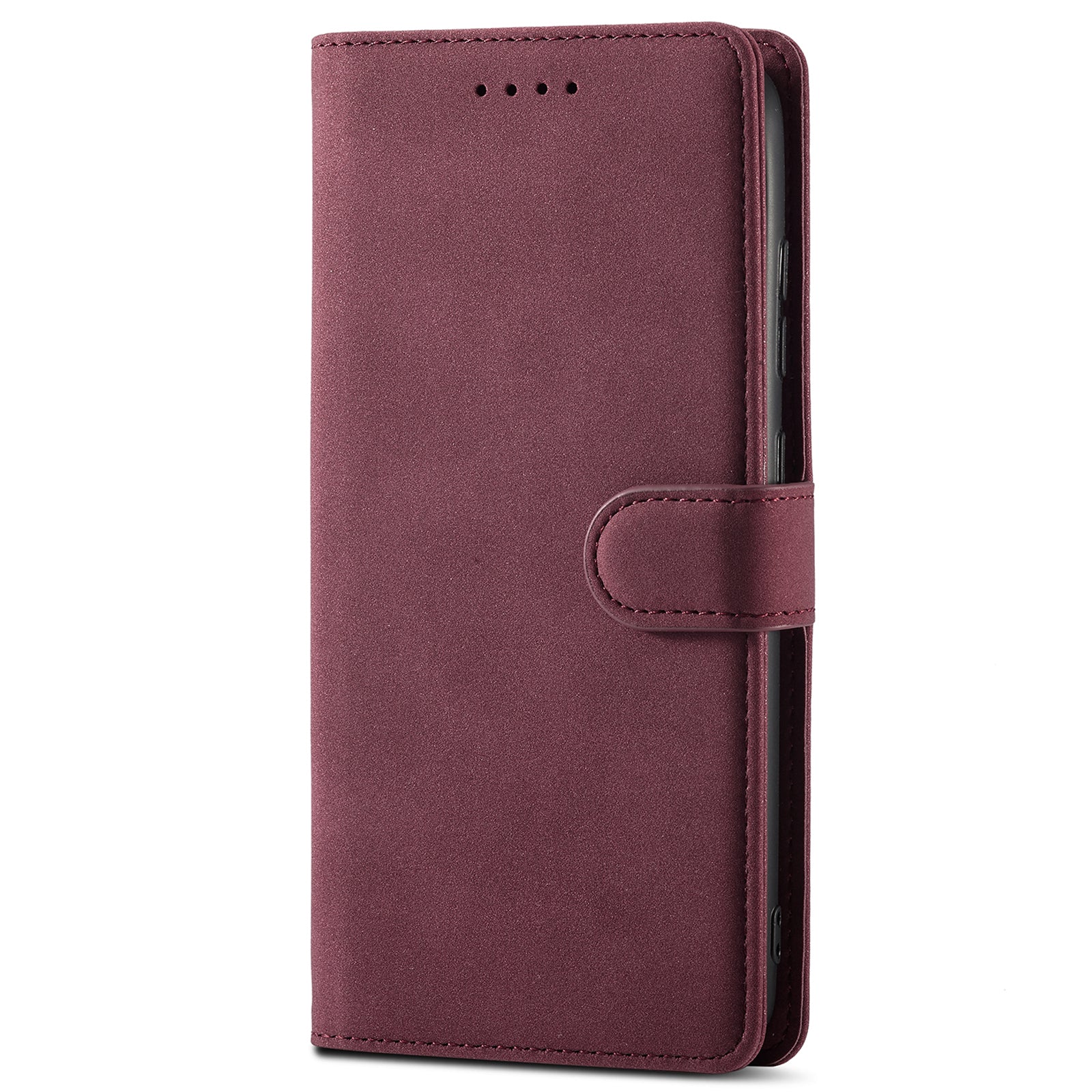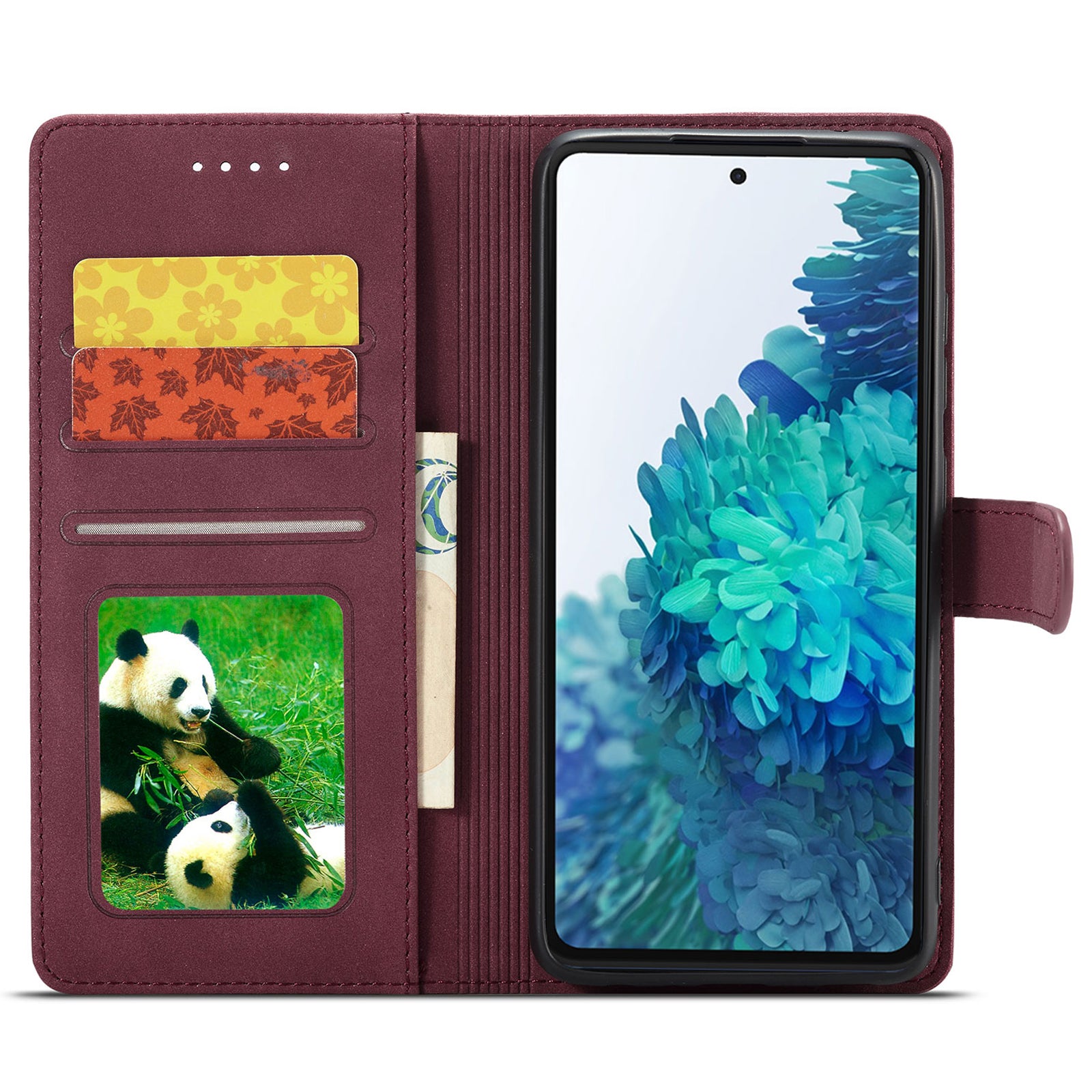 RFID Blocking Anti-scratch Matte Anti-fall PU Leather Stand Wallet Design Phone Case Cover for Samsung Galaxy S20 FE 2022/S20 FE/S20 FE 5G/S20 Lite - Wine Red