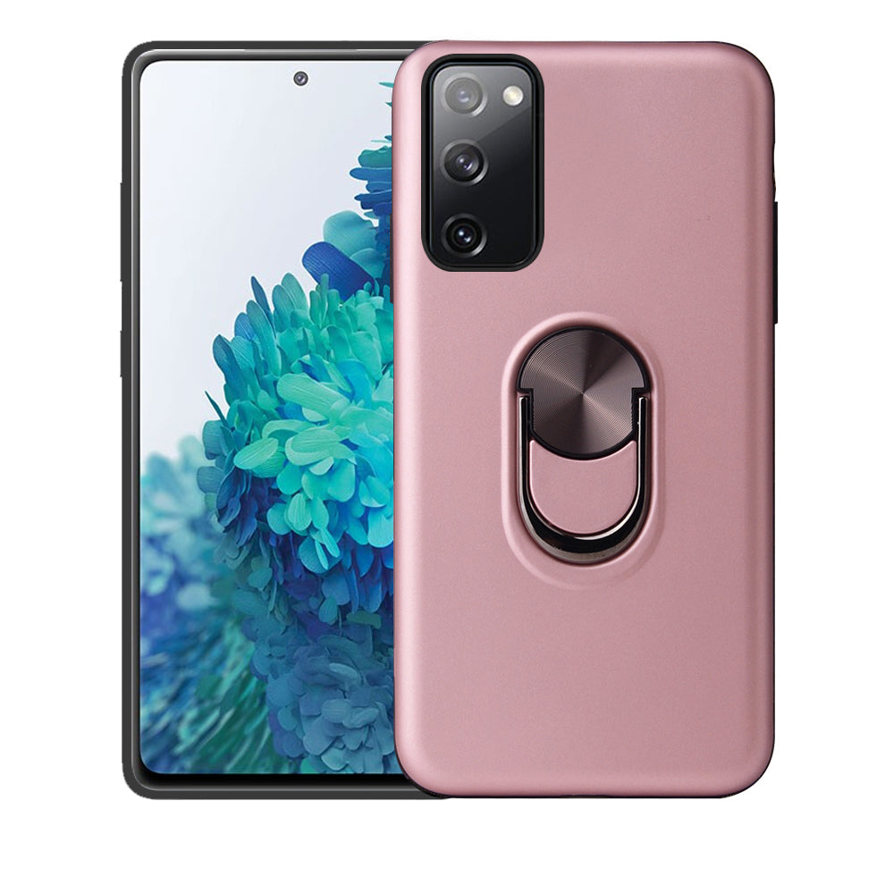 Ring Kickstand Detachable PC + TPU Hybrid Protective Case with Metal Sheet for Samsung Galaxy S20 FE 4G/FE 5G/S20 Lite/S20 FE 2022 - Rose Gold